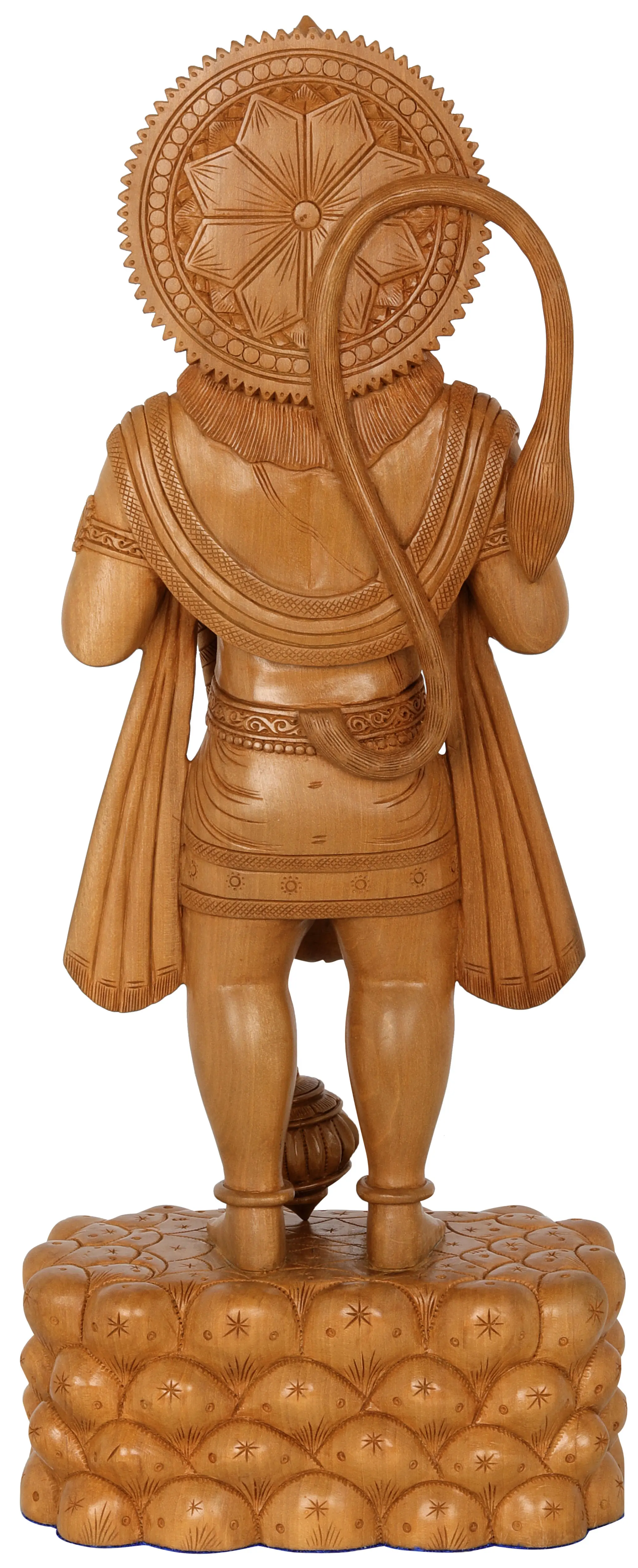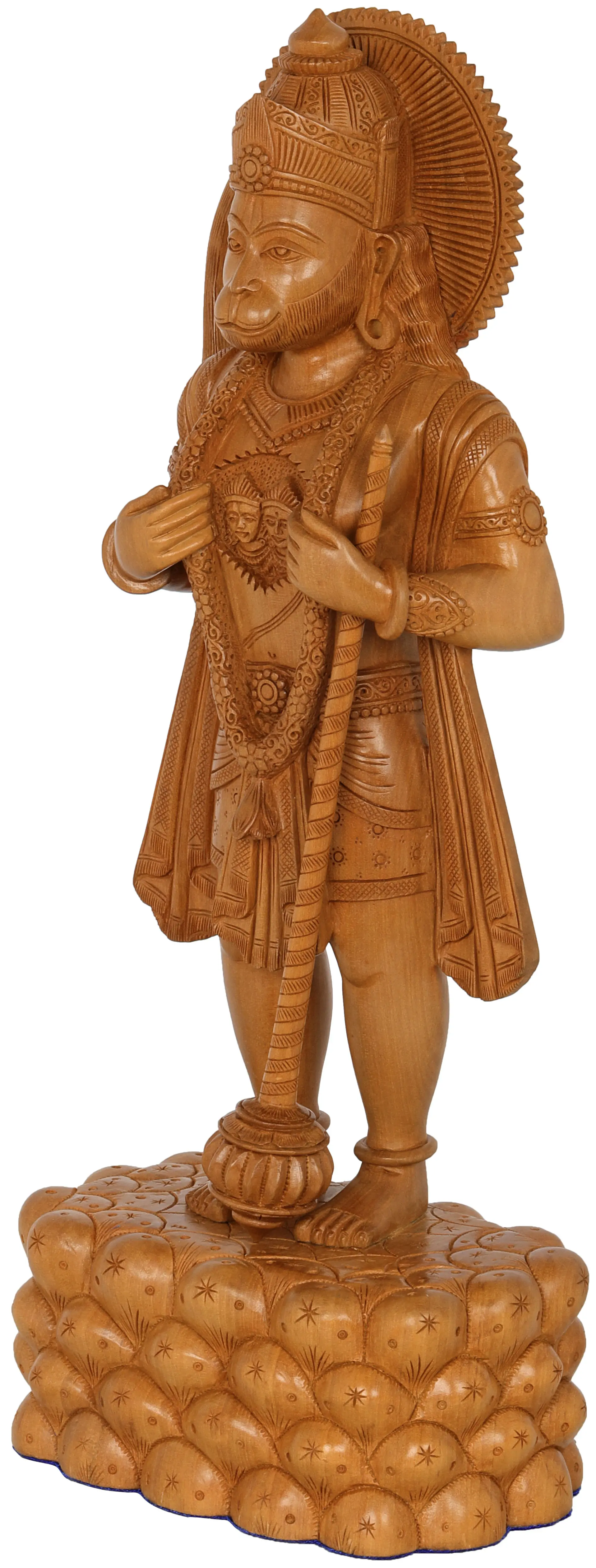 The ultimate bhakt and an embodiment of complete surrender, lord Hanuman tells us about unconditional faith and love, absence of ego and total surrender. He is the only god who was blessed by Sita to remain active in the earth plane till the end of the time cycle. This wooden statue of bhakt Hanuman depicts his infinite devotion and love for lord Rama and Sita, to whom he prayed as a Mother. He stands with his chest open where lord Rama and Sita and residing. Sculptor has very beautifully depicted this bond of Lord and his devotee by carving each and every expression and emotion in an accurate manner.