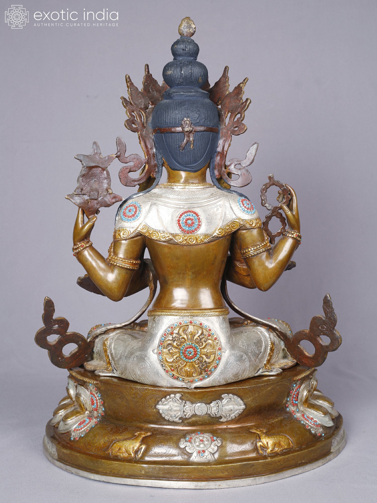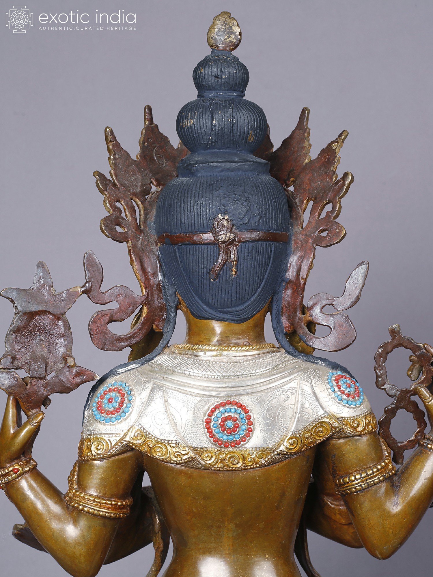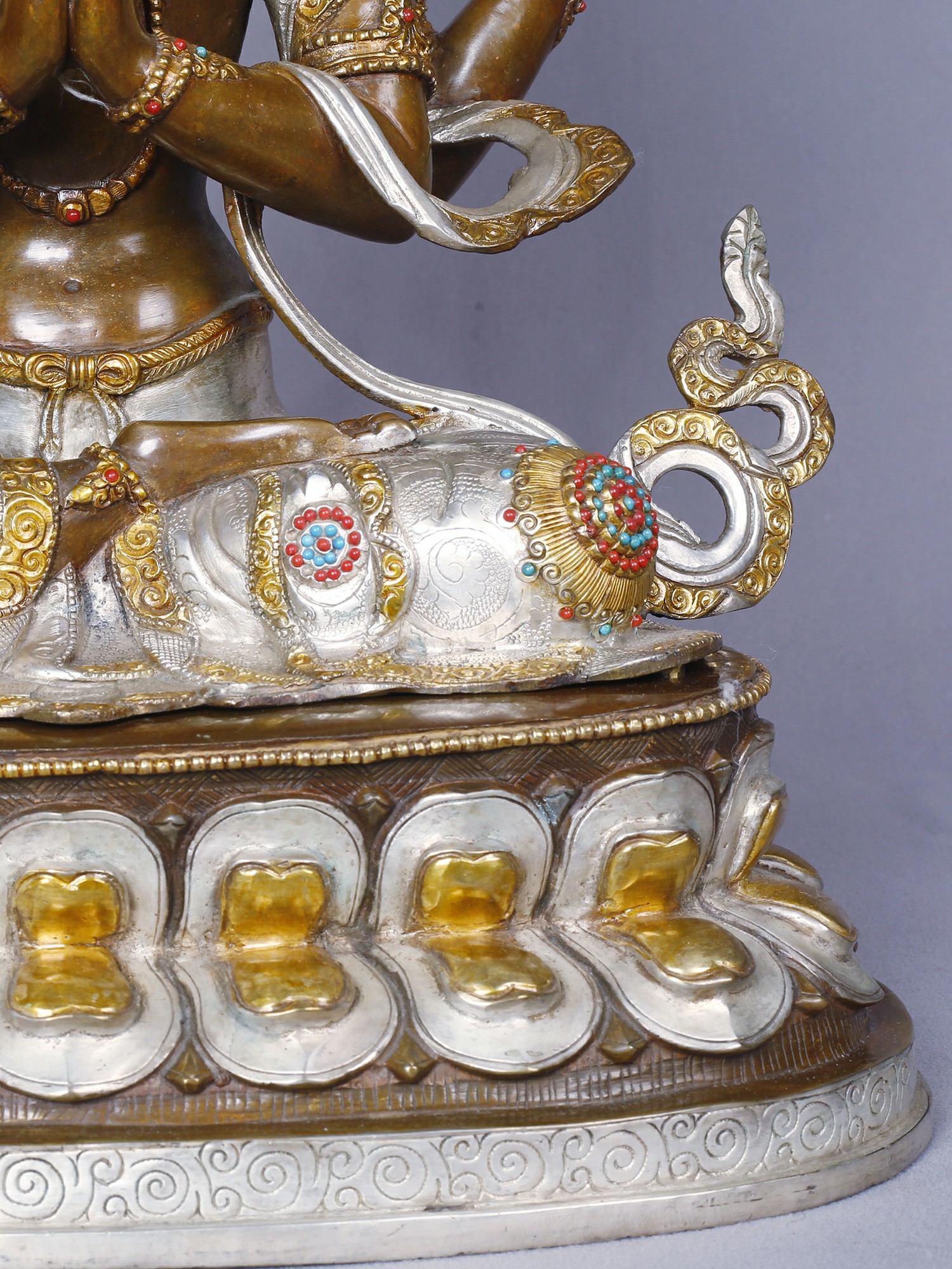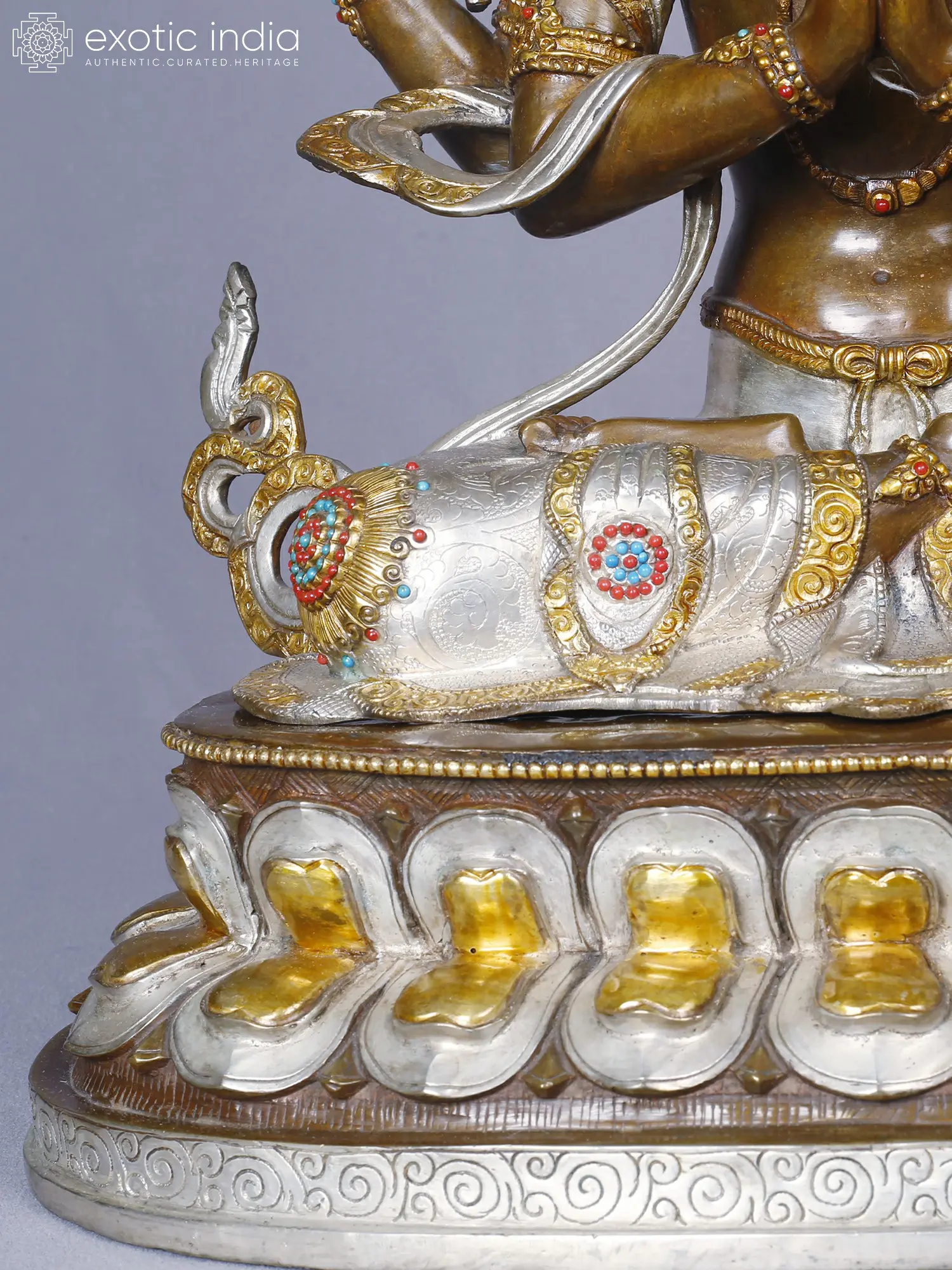 Born from the skilled hands of Nepalese artisans, this deity has been sculpted from pure copper, a metal revered for its conductivity and auspicious properties in spiritual traditions. The meticulous application of gold and silver plating imbues the figure with a luminous aura, a testament to centuries-old techniques passed down through generations. Each curve and detail has been thoughtfully rendered, reflecting a deep understanding of form and spiritual iconography, ensuring a piece of unparalleled quality and enduring beauty.