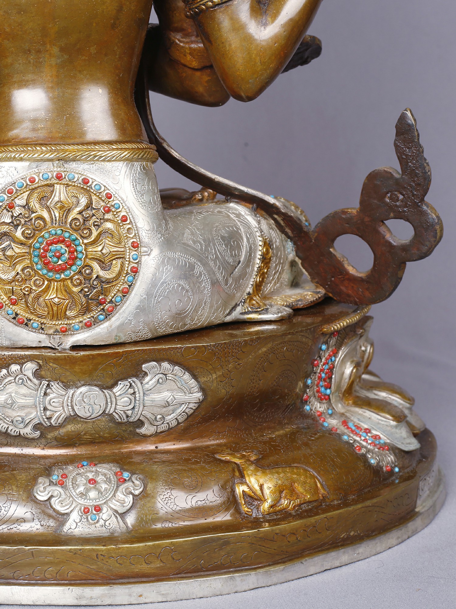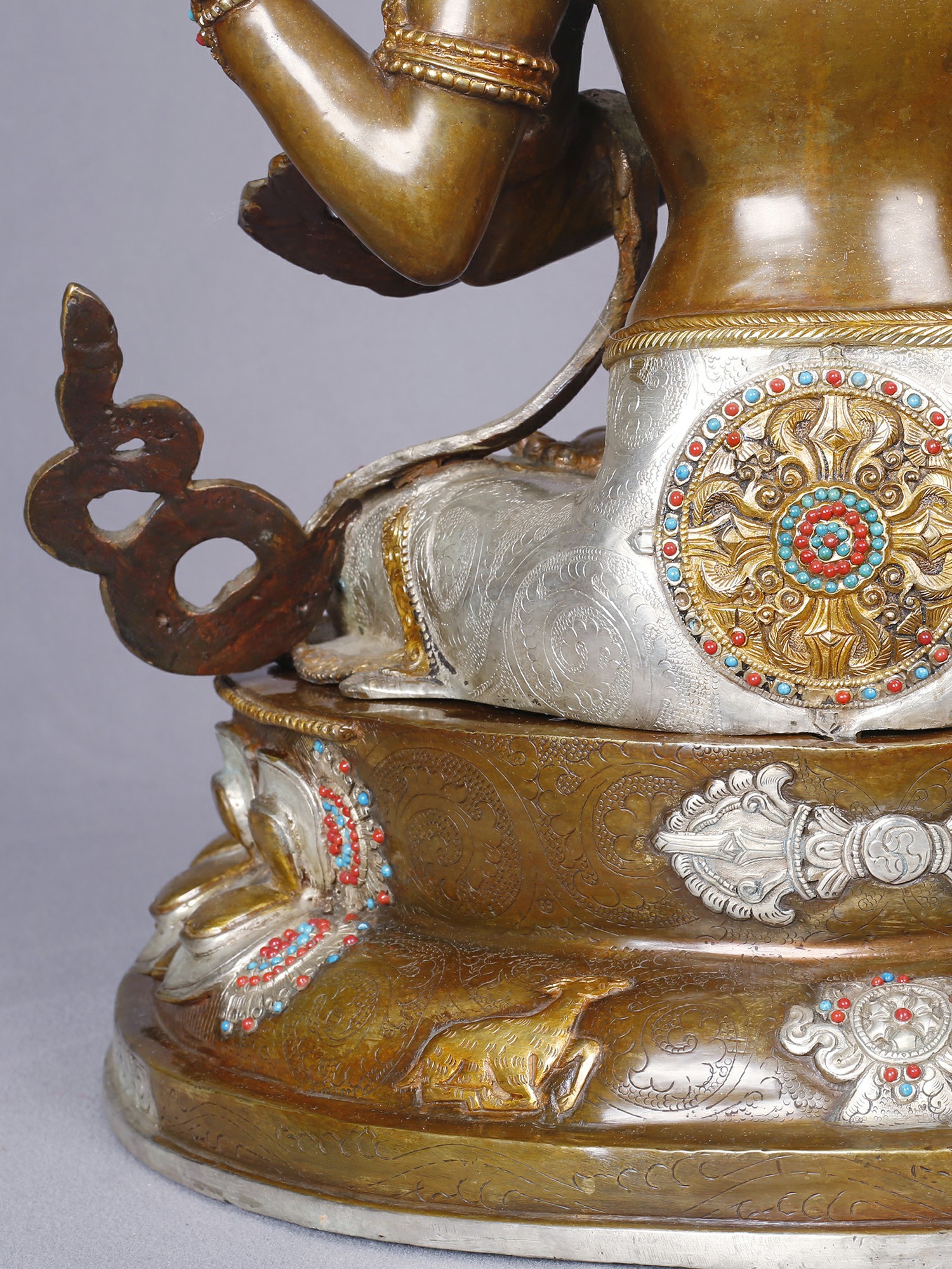Lord Manjushree Buddhist Deity Idol | Copper with Gold and Silver Plated | Handmade Exquisite Art