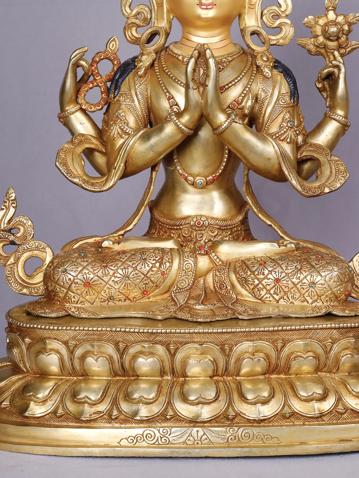 Four Armed Lord Kharcheri | Tibetan Buddhist Deity | Copper With Gold Plated