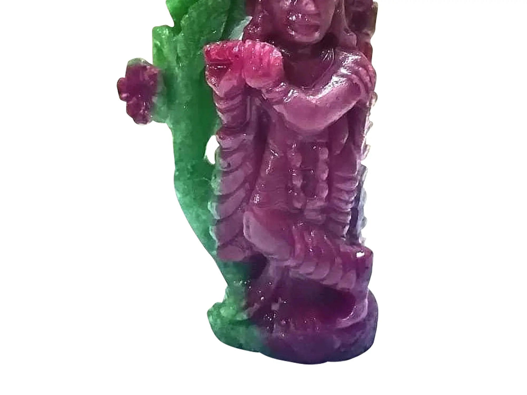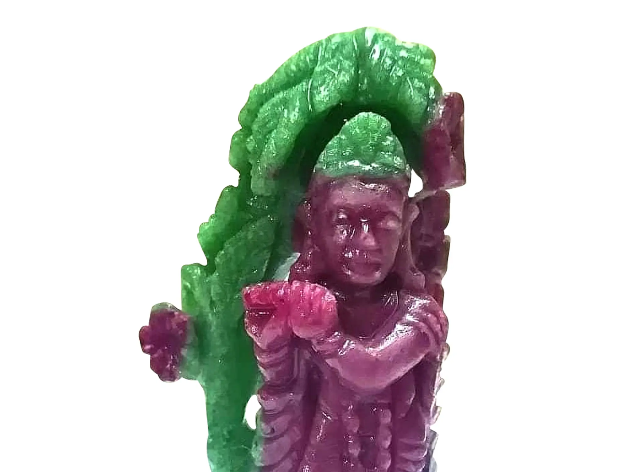 The vibrant color of the African ruby gemstone chosen for this statue is no accident. Rubies, associated with passion, energy, and power, are considered auspicious stones across many cultures. In Hindu traditions, red symbolizes energy, strength, and dynamism, all qualities deeply associated with Lord Krishna himself. The gemstone's rich hue enhances the statue's spiritual aura and amplifies its symbolic power. Possessing a ruby piece is believed to bring good fortune, protection, and enhanced spiritual energy to its owner. In this statue, the ruby's vibrant color adds a depth of meaning to Krishna's representation.