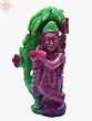 This captivating statue portrays Lord Krishna, the mischievous and beloved Hindu deity, in a moment of serene musicality. He is depicted playing his enchanting flute, a symbol of his divine charm and power to captivate the hearts of both gods and mortals. The vibrant hues of the African ruby gemstone beautifully capture the essence of Krishna's radiant personality. The intricate detailing reveals the skillful craftsmanship that went into creating this miniature masterpiece, a true testament to artistic dedication and devotion. This isn't just a statue; it's a portable piece of devotion, ready to grace your altar, office, or home.
