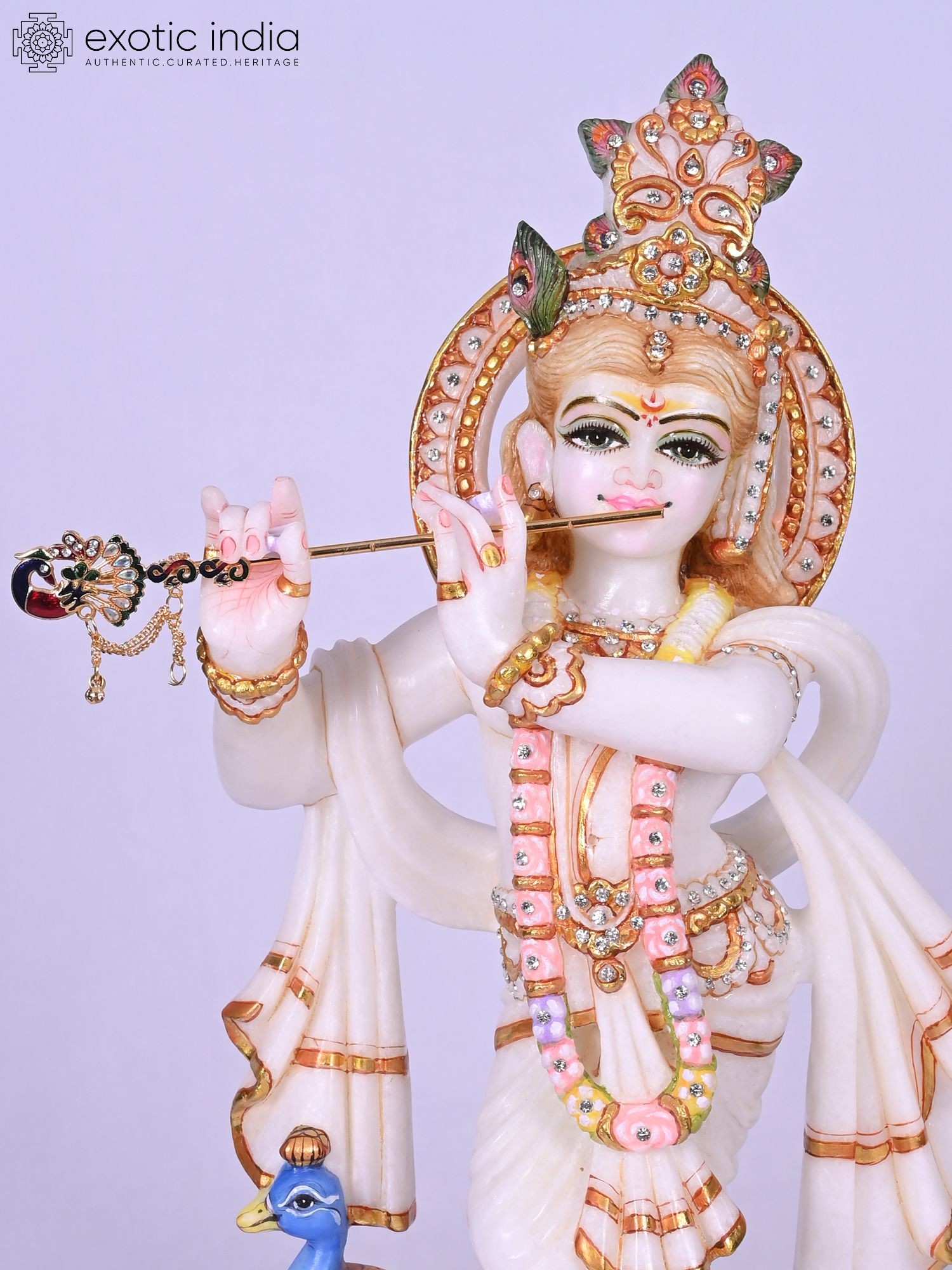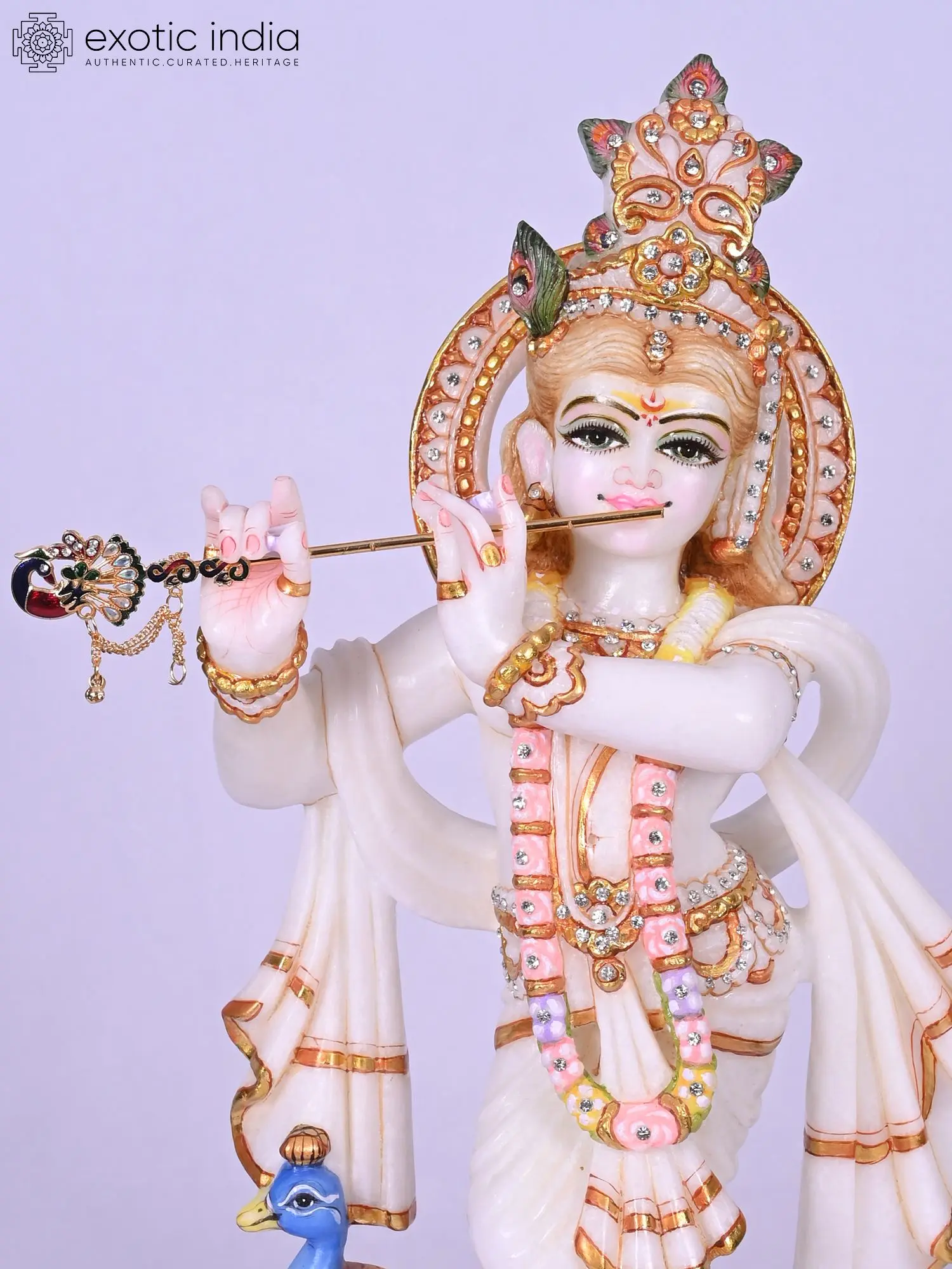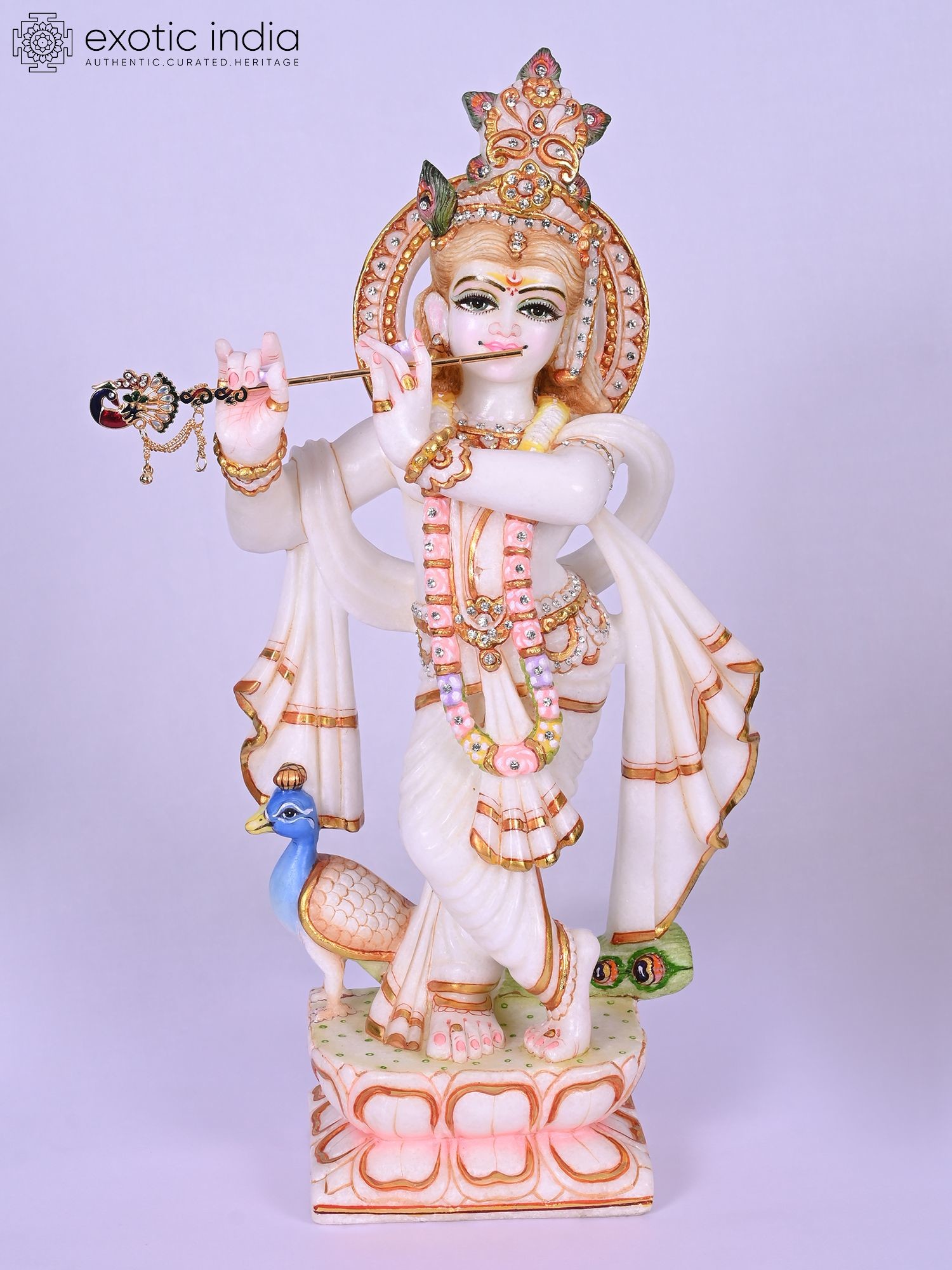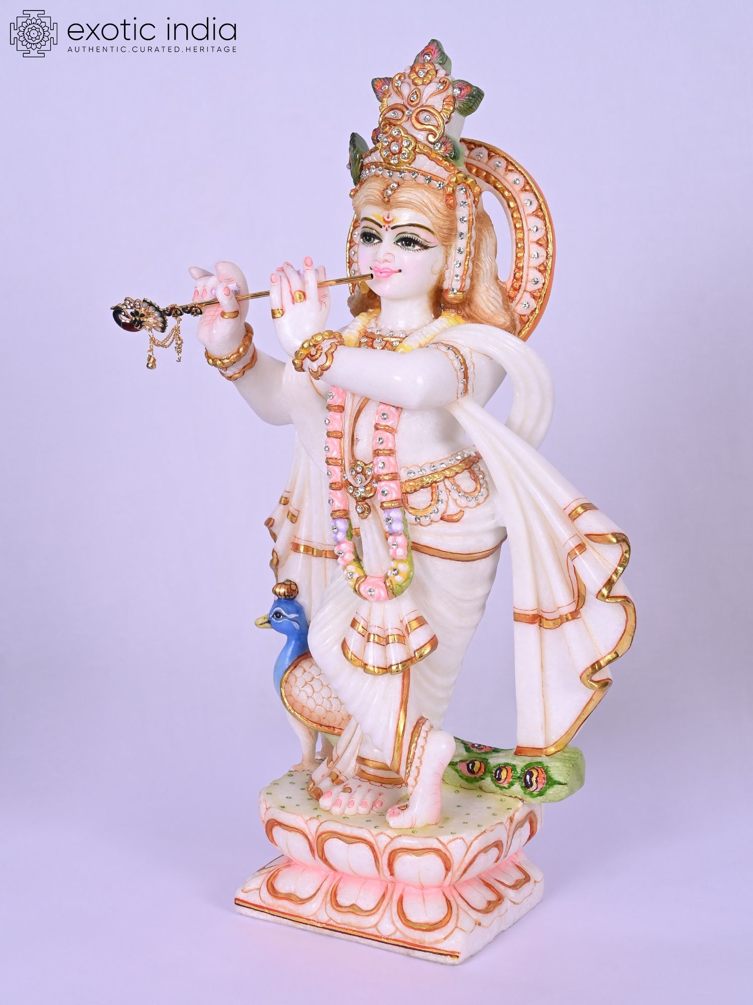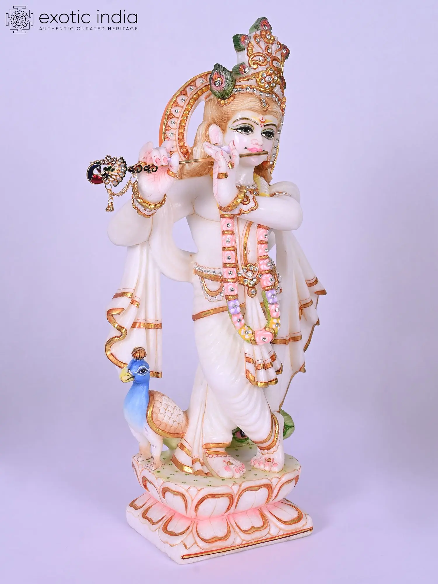24" Brass Lord Krishna Statue Playing Flute | Handmade | Made In India