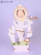 Adorned with intricate embellishments and painted accents, including golden trim.