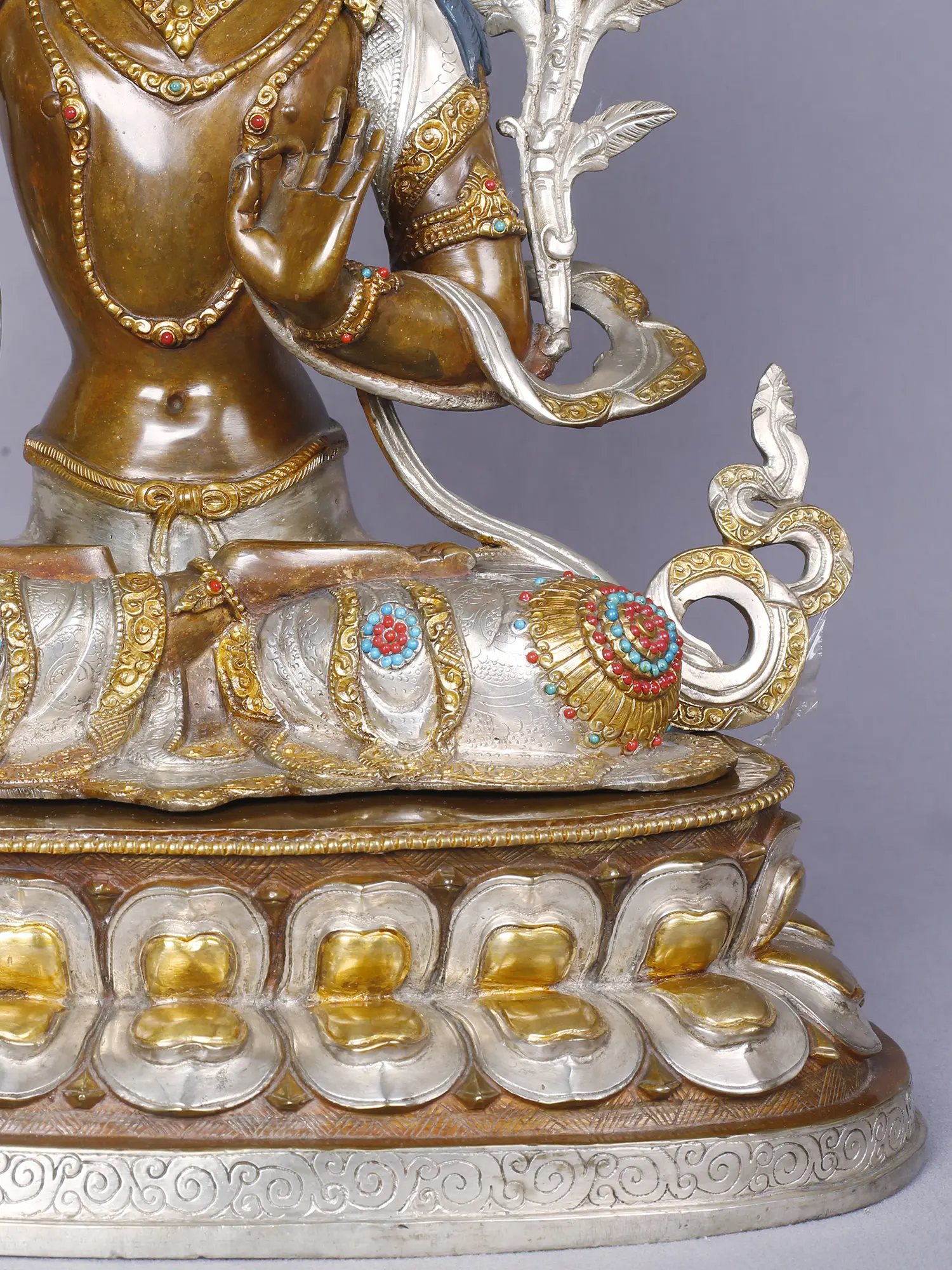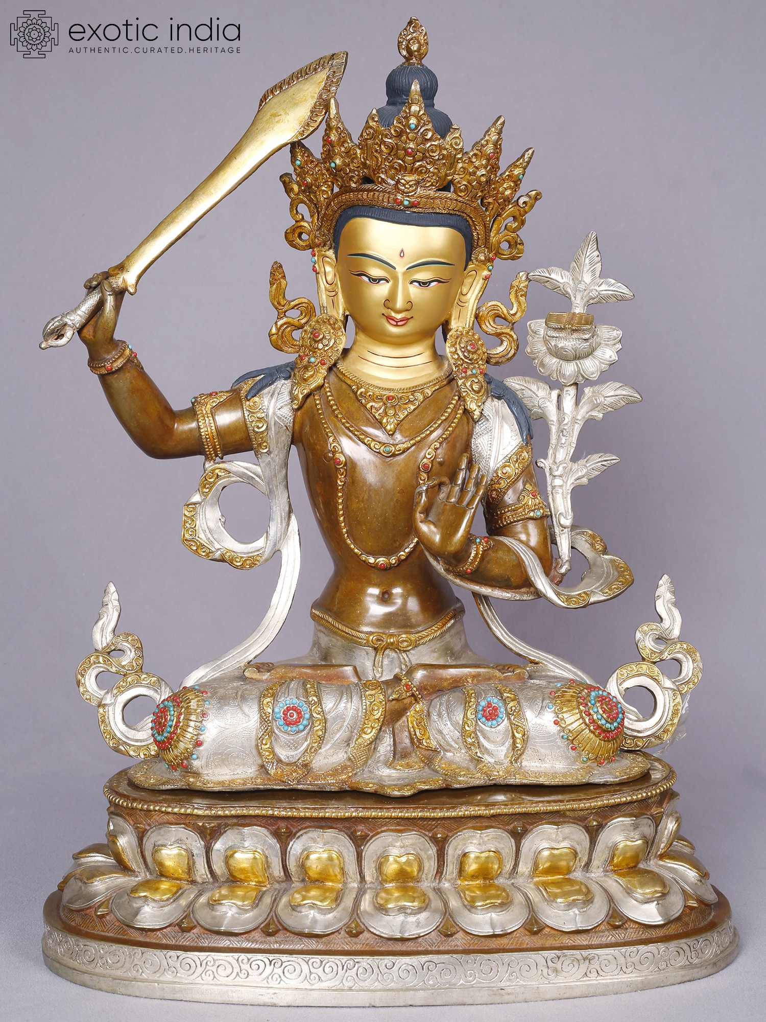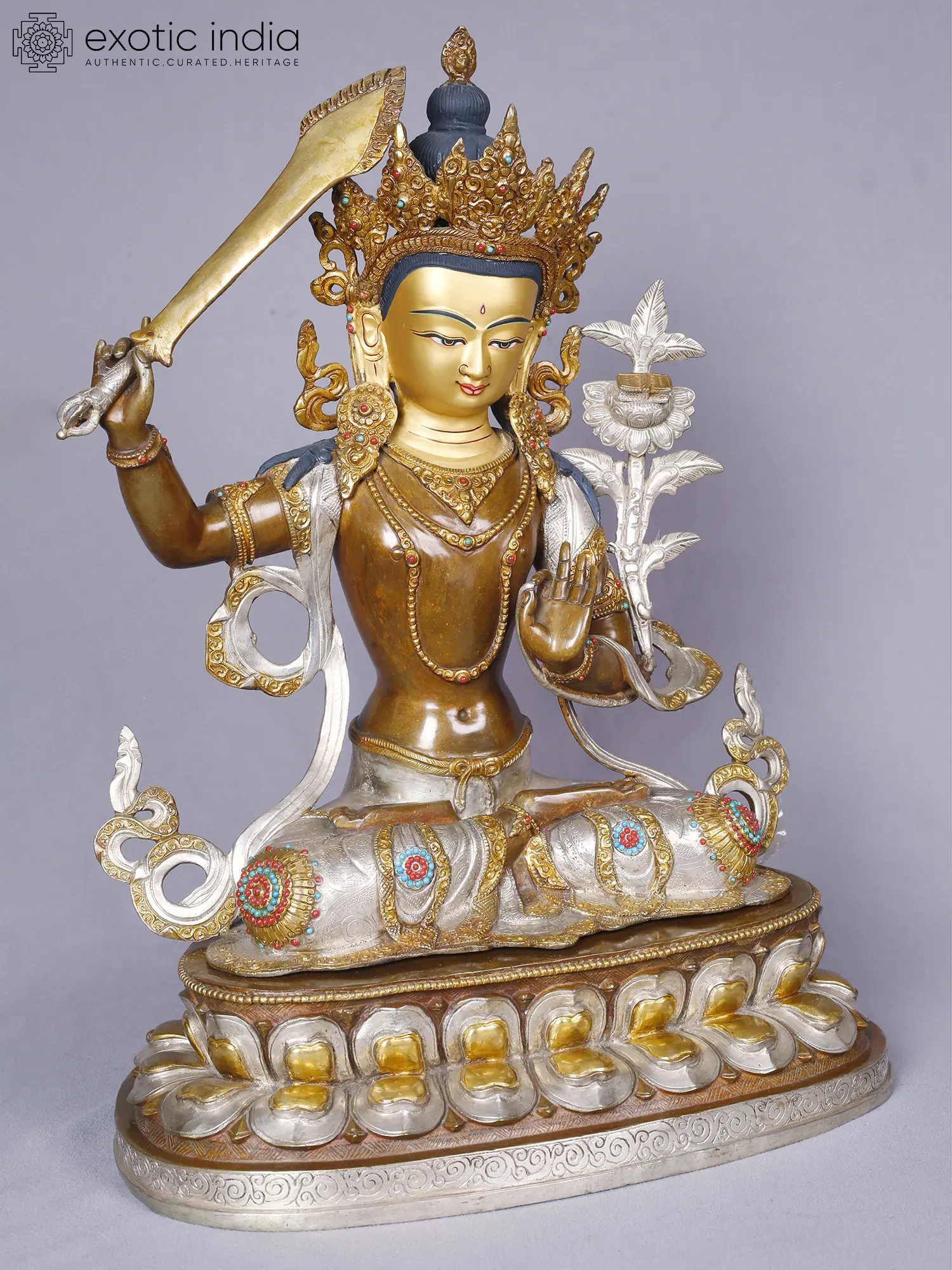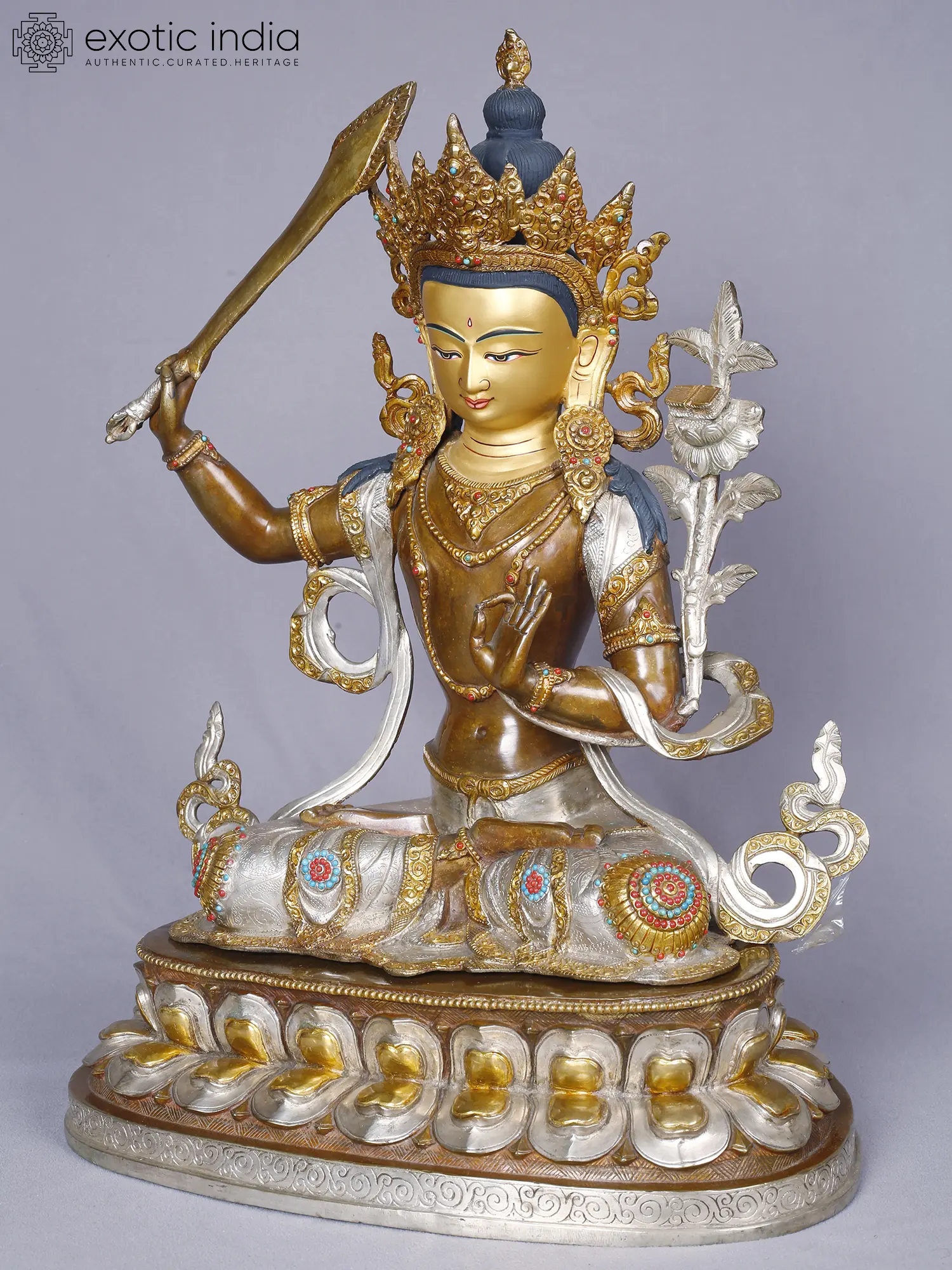 Lord Manjushri | Tibetan Buddhist Deity | Copper With Gold And Silver Plated