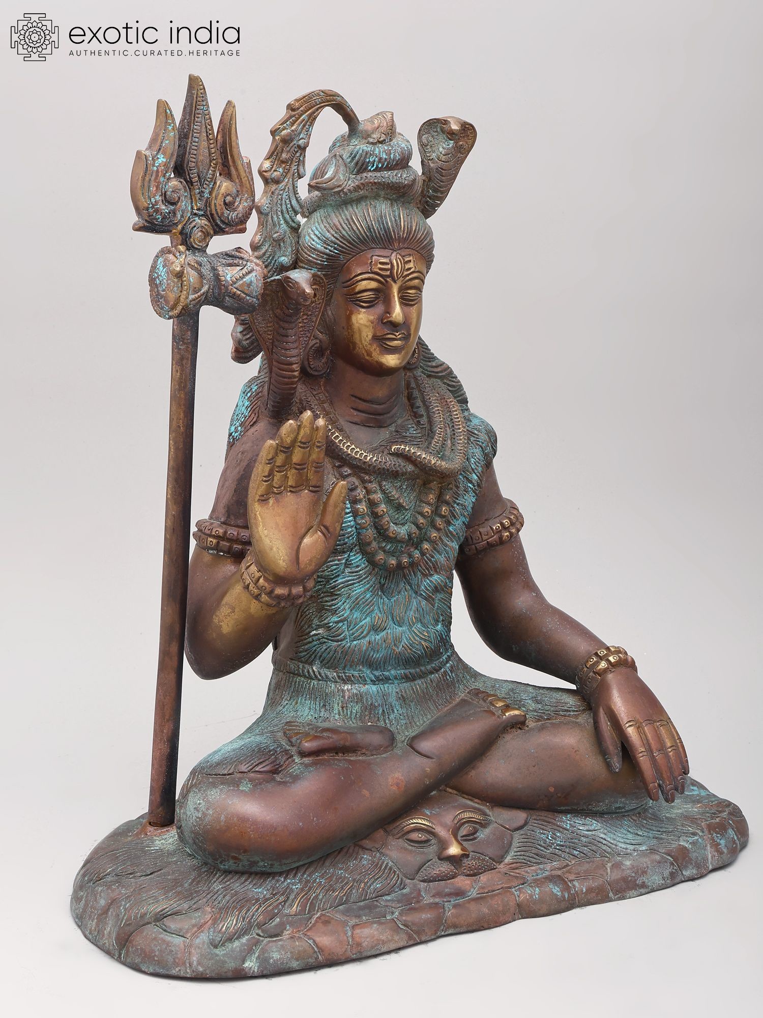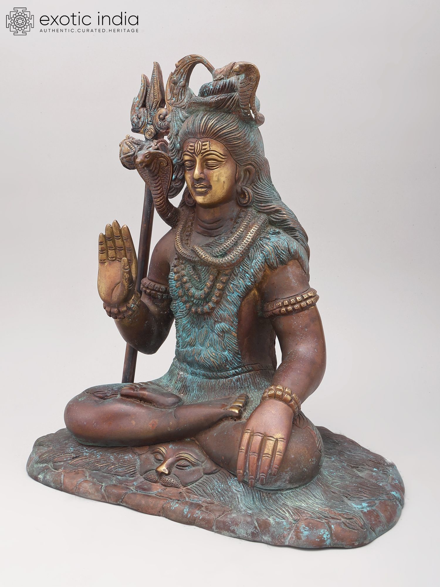 Sitting Lord Shiva Brass Statue with Trishul and Damaru