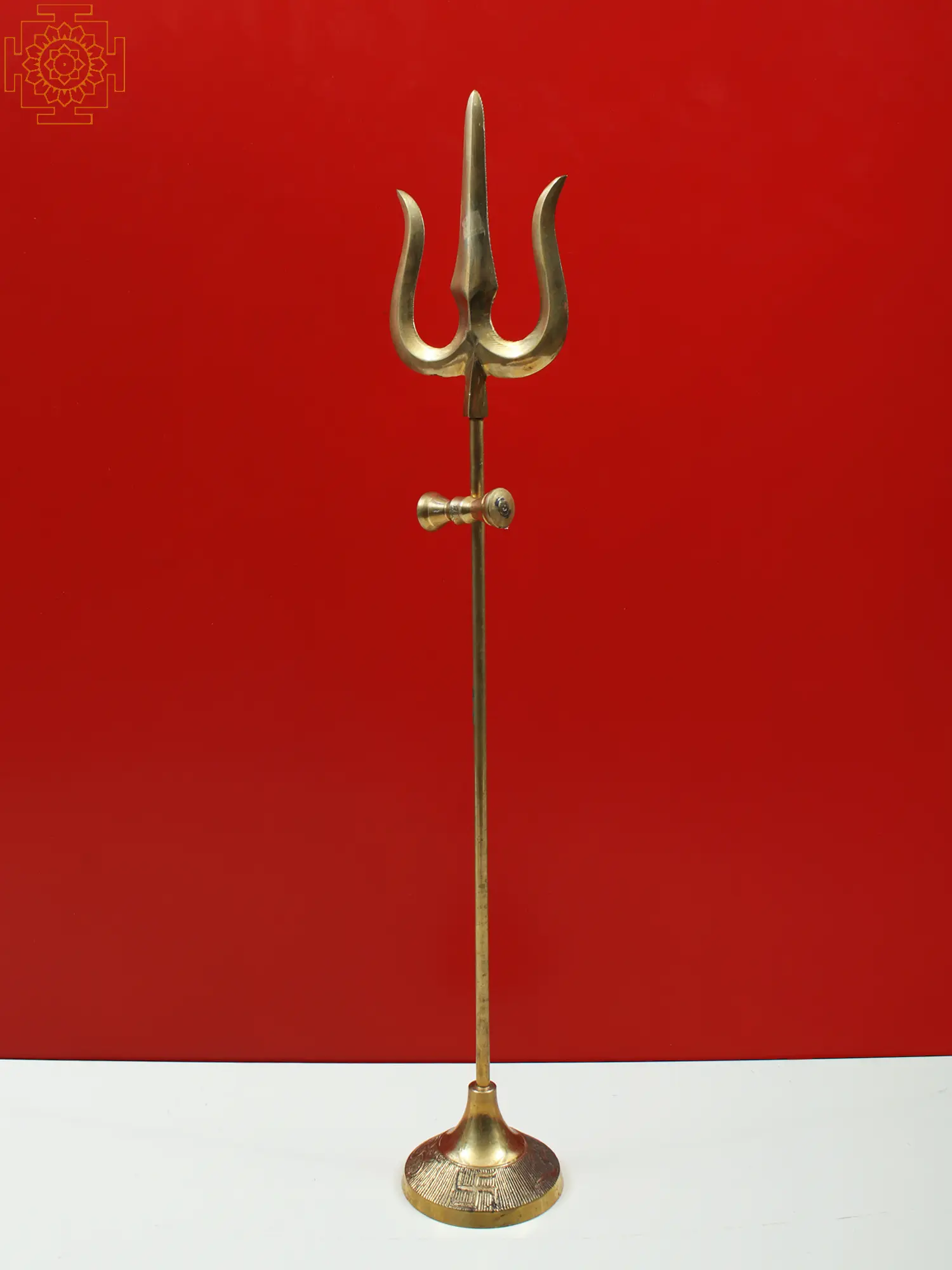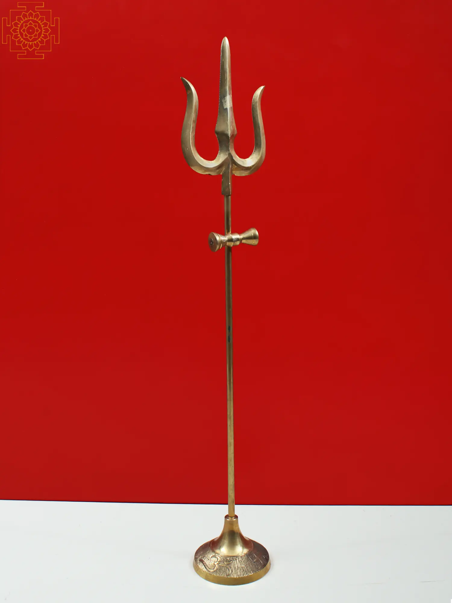 Lord Shiva, the Destroyer in the Holy Trinity, wields the Trishul as a symbol of control over the three aspects of existence – creation, preservation, and destruction. The Trishul also represents the unity of the three gunas (qualities) that underlie the universe: Sattva (truth and purity), Rajas (passion and activity), and Tamas (ignorance and inertia). This brass Trishul serves as a constant reminder of the interconnectedness of life's cycles – birth, life, and death. It's a symbol of Lord Shiva's role in the cosmic dance of creation and dissolution, reinforcing the concept of "Samsara" in Hinduism. Having the Lord Shiva's Trishul in your space not only adds an exquisite touch but also invites the energy of transformation and spiritual awakening.