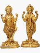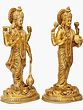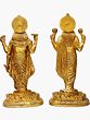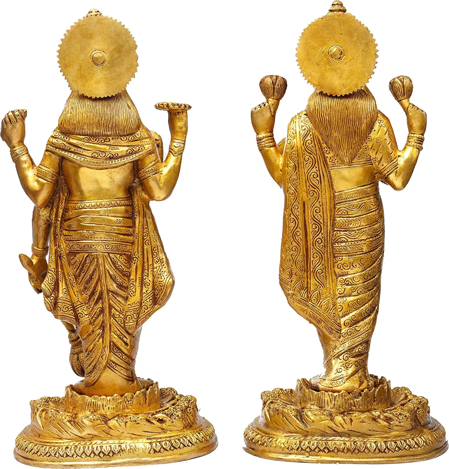 Embrace the auspicious presence of the divine couple, Lord Vishnu and Goddess Lakshmi, with this exquisitely crafted brass statue. This magnificent piece captures the essence of their eternal bond, symbolizing prosperity, protection, and spiritual well-being. The rich, golden hue of the brass radiates warmth and divinity, making it a captivating centerpiece for any sacred space or home altar.