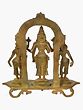Crafted from durable brass, this statue embodies the rich artistic traditions of India. The patina achieved over time adds a unique character and depth to the metal, hinting at its age and the devotion it has inspired. The arched prabhamandala, or aureole, behind the deities serves to further elevate their divine status, symbolizing their celestial presence and the encompassing cosmic energy they represent. This piece is not merely an object of art but a conduit for spiritual connection, suitable for placement in a home altar, temple, or as a distinguished piece of cultural decor. It serves as a constant reminder of the divine forces that govern the universe and the virtues of compassion, righteousness, and prosperity. Each element of the sculpture, from the elaborate headdresses to the gentle postures of the goddesses, is imbued with symbolic meaning, making it a powerful representation of Hindu philosophy and aesthetics.