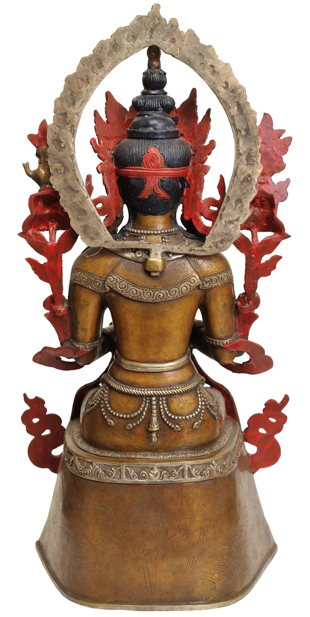 27" Large Four-Armed Avalokiteshvara Brass Sculpture | Tibetan Buddhist Deity Idol
