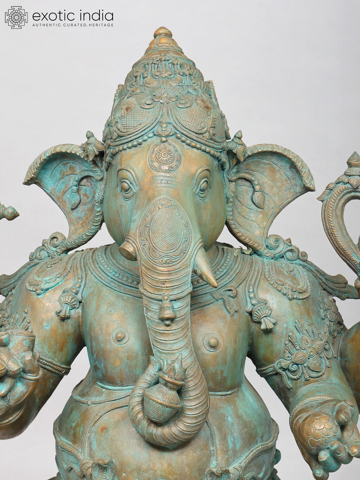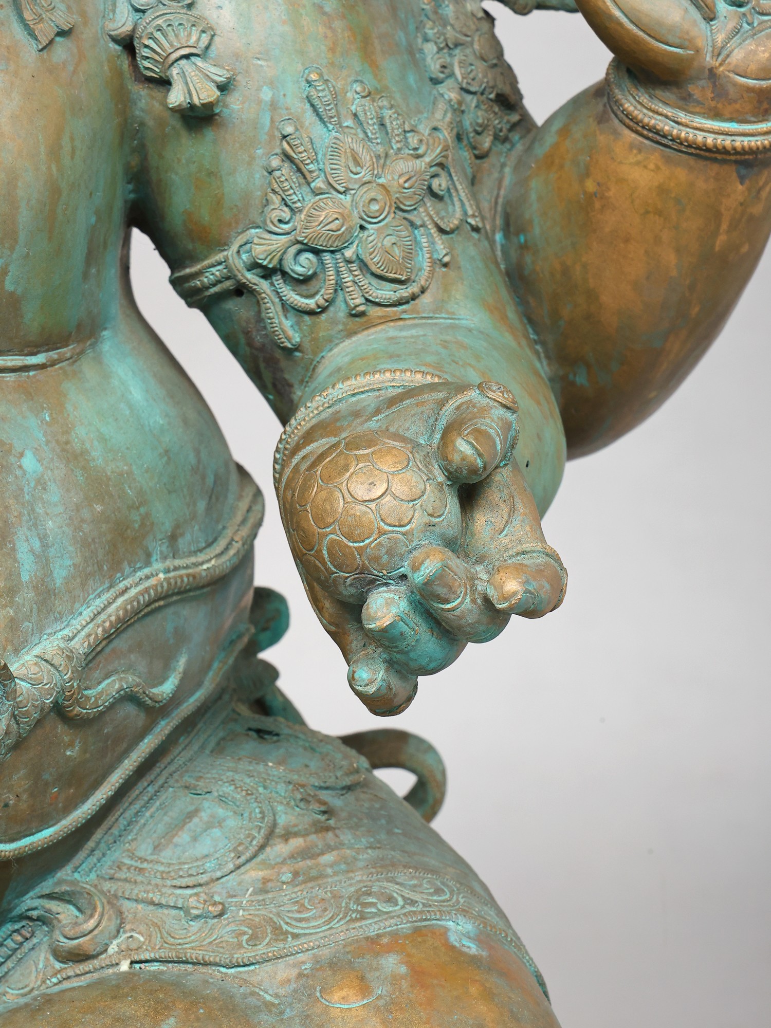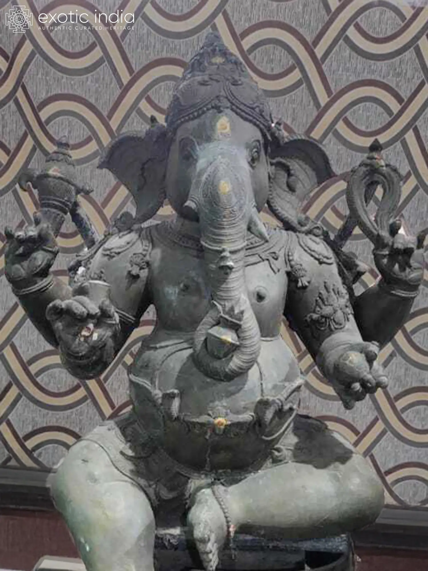 Crafted in India, this bronze sculpture is a product of centuries-old metallurgical traditions. The artisans have employed time-honored techniques to create a piece that is not only aesthetically captivating but also spiritually resonant. The rich, dark tones of the bronze are highlighted by subtle variations in texture and shading, imbuing the deity with a lifelike quality. The sheer scale of this sculpture makes it a truly remarkable piece, suitable for grand halls, temple spaces, or as a commanding presence in a home seeking an aura of divine grace and artistic excellence. Owning this sculpture is an invitation to connect with the profound spiritual heritage of India and to welcome the blessings of wisdom and prosperity into your life.