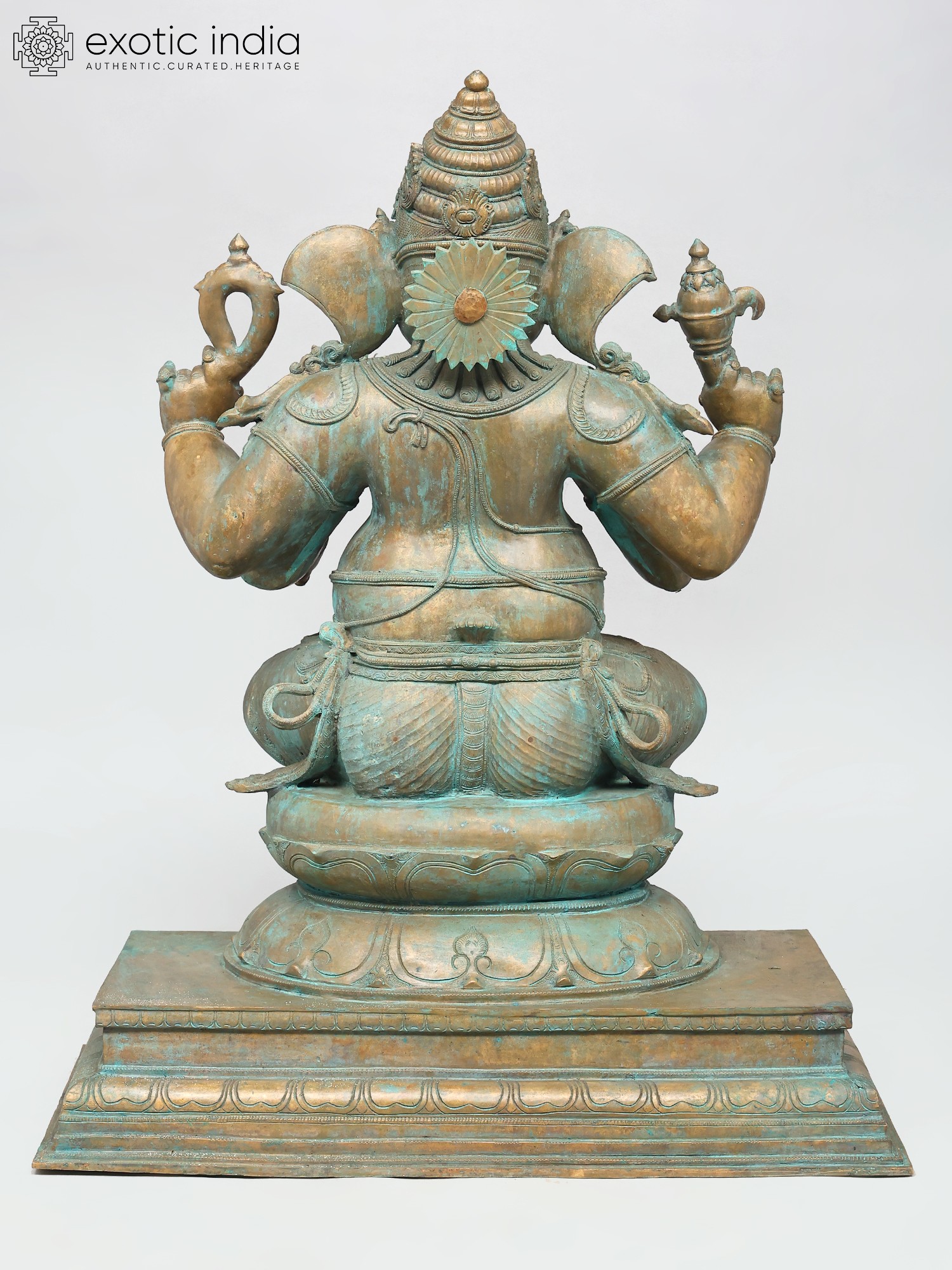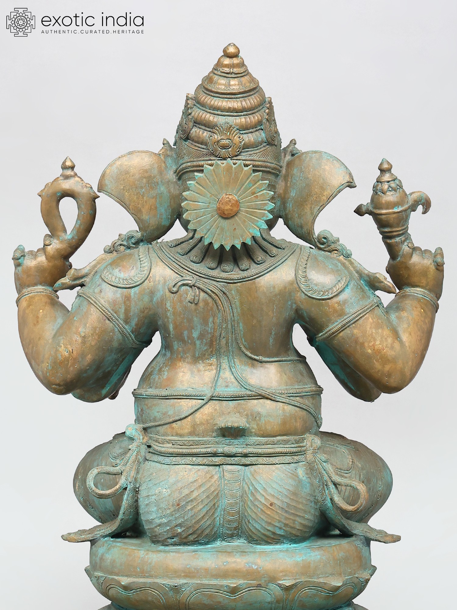 Majestic Bronze Sculpture of Lord Ganesha on Lotus, 36" Height