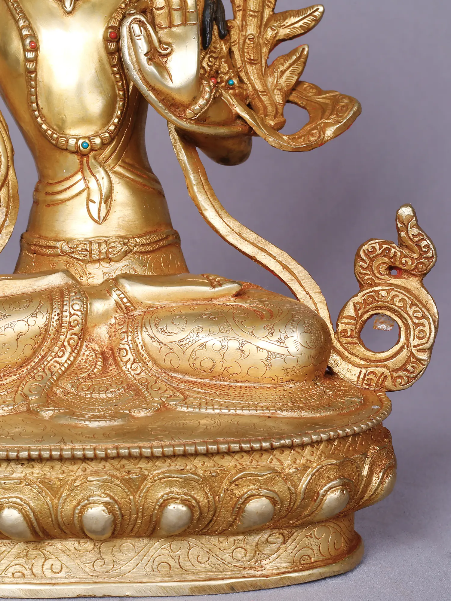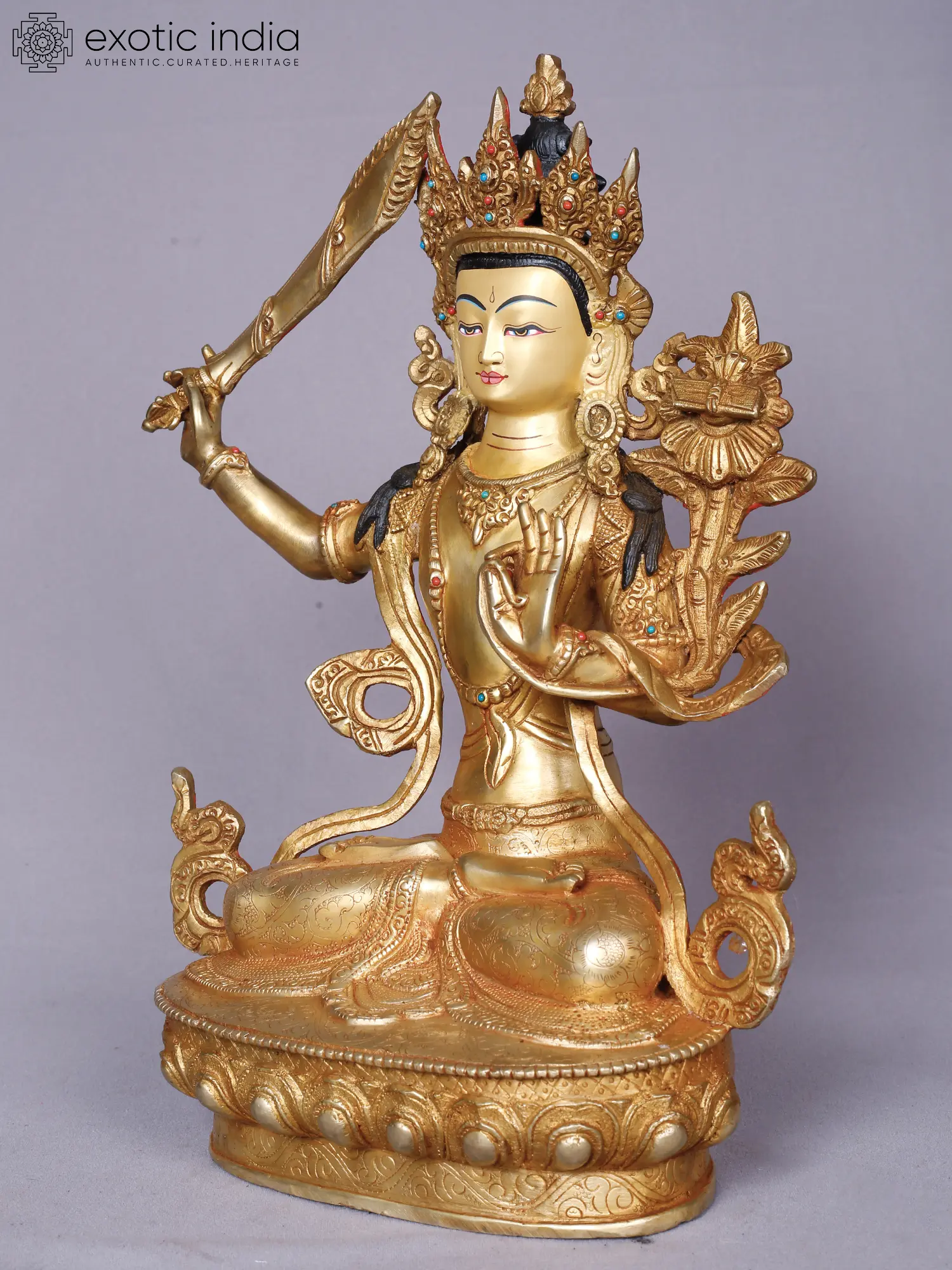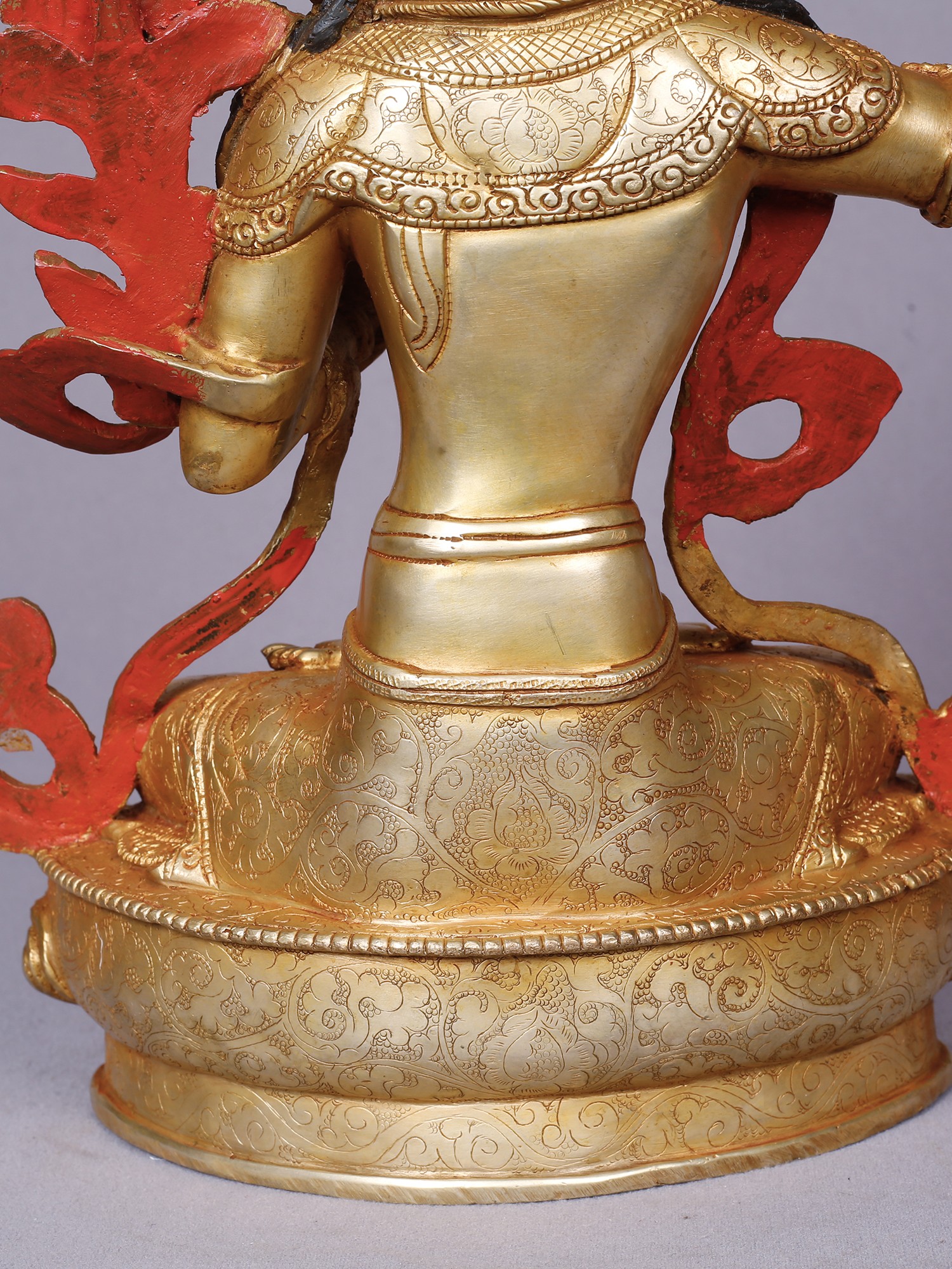 13" Copper Manjushri Idol | Copper Statue Gilded with Gold