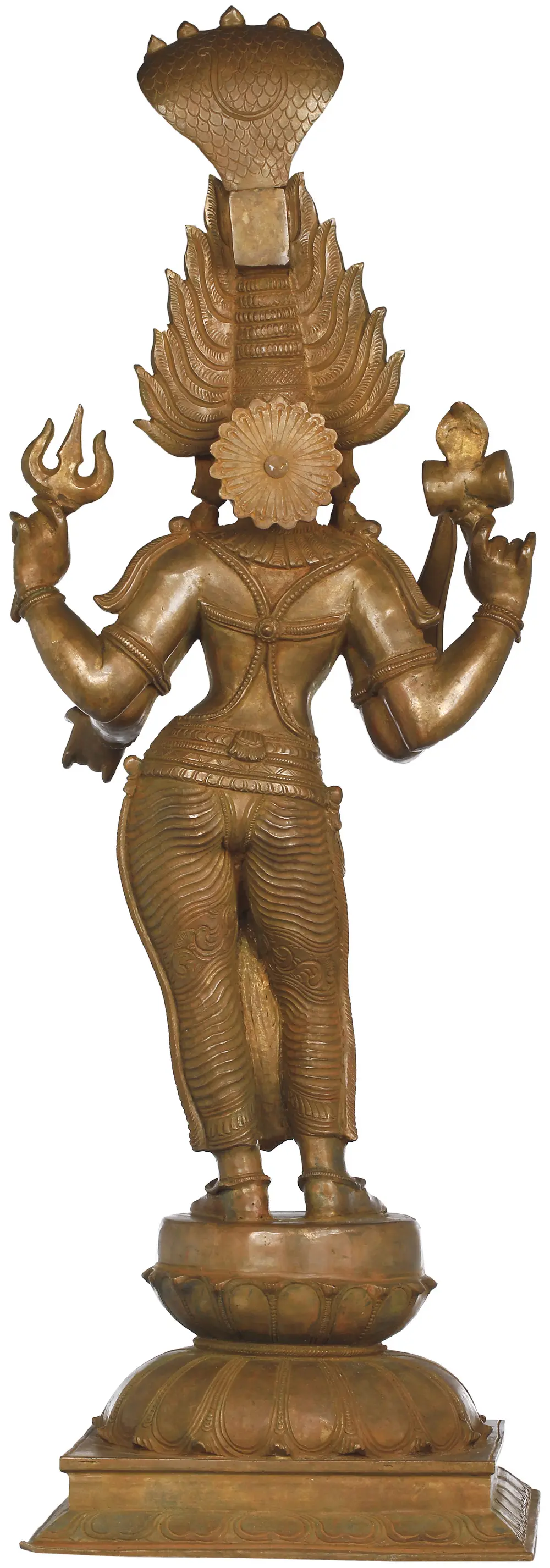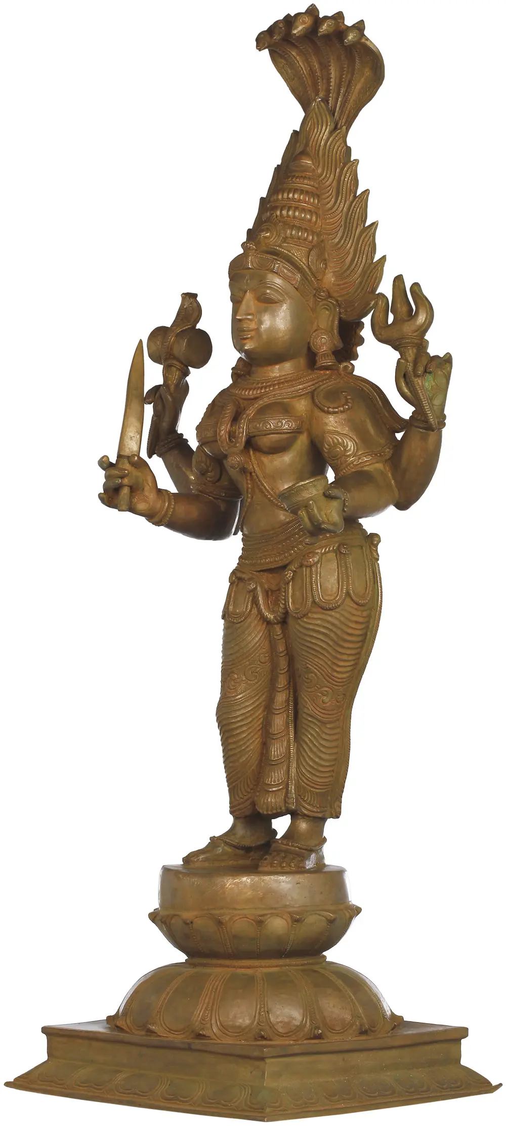 This magnificent Panchaloha bronze statue exalts her divine feminity by giving her the most supple physique, which is enhanced by the bodily markers of female fecundity.