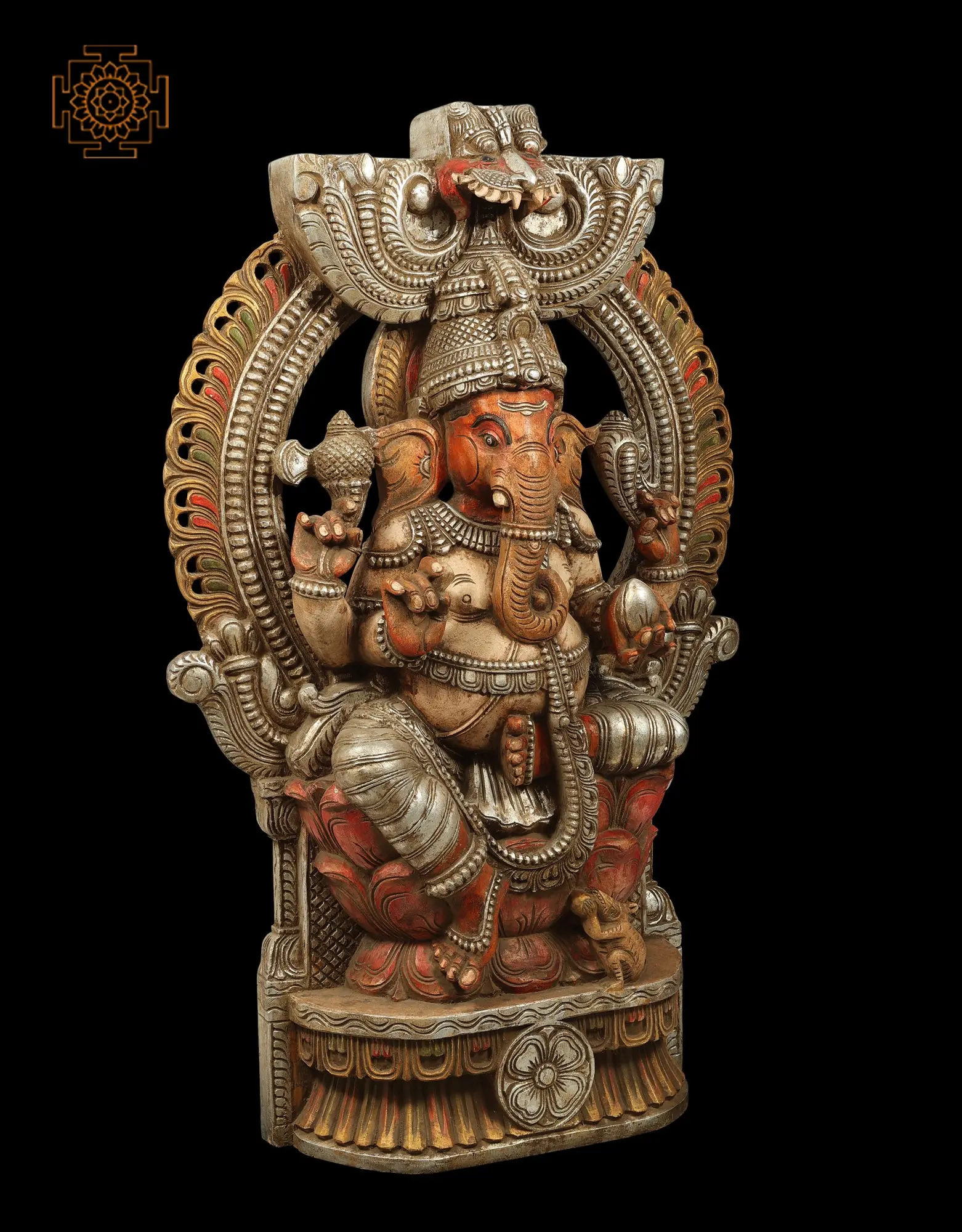 Invite the divine presence of Lord Ganesha, the remover of obstacles and the bestower of good fortune, into your sacred space with this magnificent wooden carving. This imposing statue captures the elephant-headed deity in a posture of regal authority, seated upon an intricately designed throne. The sheer scale and detailed craftsmanship of this piece are sure to become the focal point of any room, radiating an aura of peace, prosperity, and divine blessings. Ganesha, revered as the god of beginnings, wisdom, intellect, and prosperity, plays a pivotal role in Hindu mythology. He is invoked at the start of any new venture, from academic pursuits to business undertakings and personal journeys. His image often depicts his elephant head, symbolizing wisdom and strength, his single tusk representing the ability to overcome dualities, and his large belly signifying his capacity to digest and absorb all experiences. This sculpture masterfully brings these attributes to life, showcasing the divine being in all his glory.