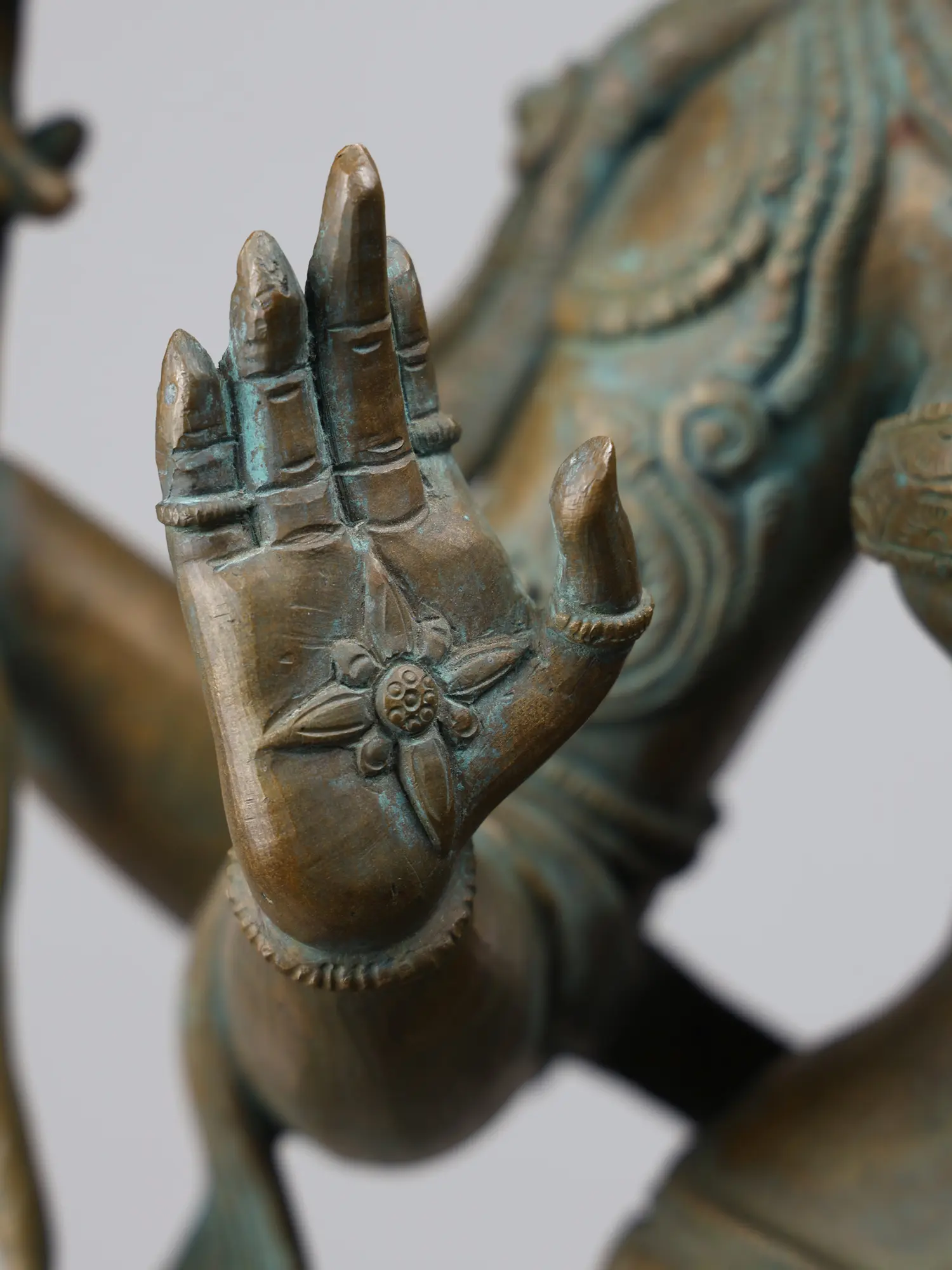 This superb feminine figure represents Goddess Lakshmi, who with a richly proportioned body, stands here with a swinging right hip. Dignified and graceful, this fine sculpture represents a high point in the annals of South Indian bronze casting, and very successfully captures the traditional Indian aesthetic of an ideal woman.