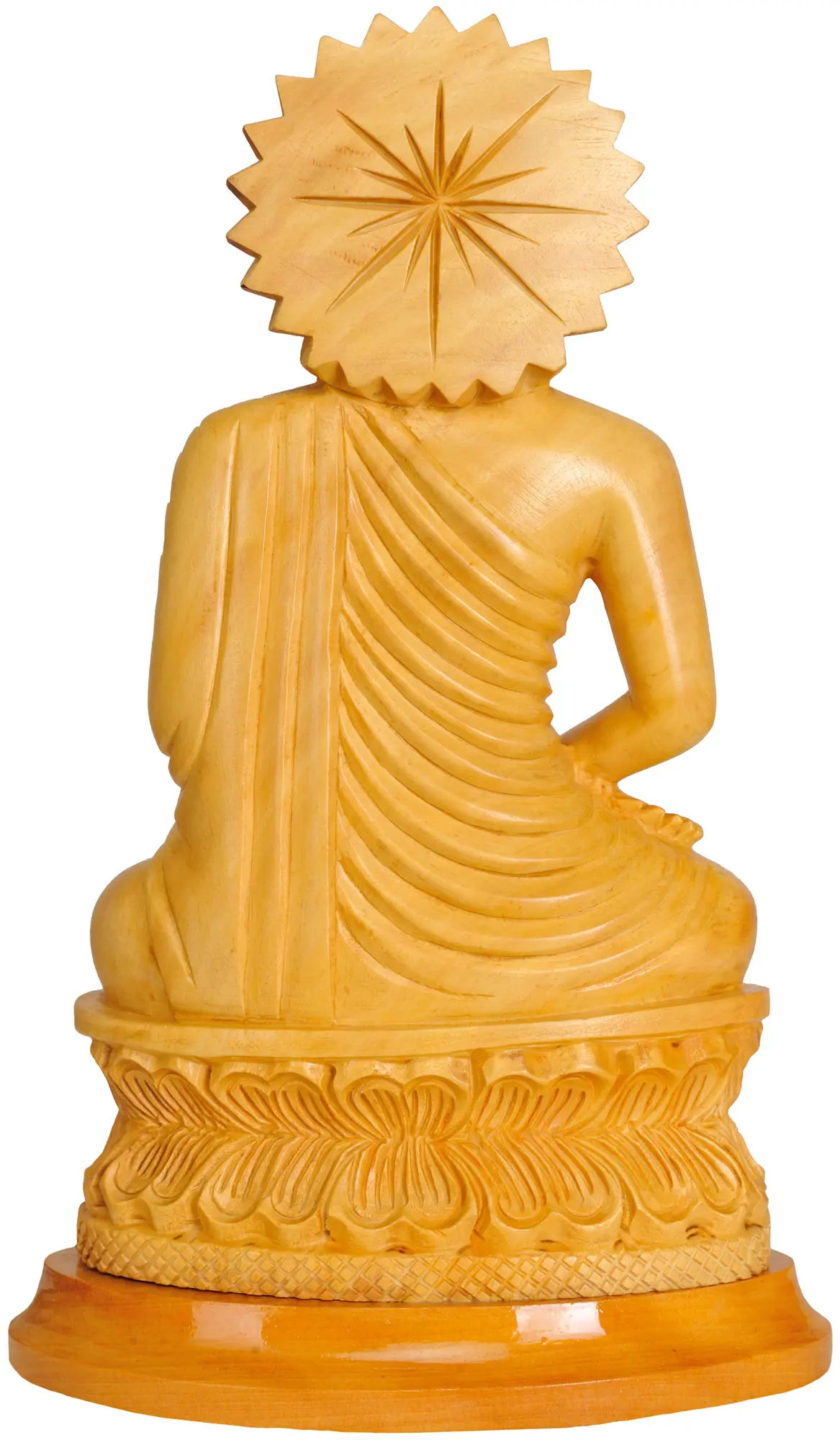 The Vishwakarma family of Varanasi are custodians of an artistic heritage that has flourished for generations. Their dedication to preserving traditional carving techniques ensures that each piece is not merely an object but a testament to skill, devotion, and a deep understanding of spiritual iconography. The intricate details, from the flowing lines of the Buddha's robes to the delicate lotus petals adorning the base, are a testament to their meticulous craftsmanship. The Kaima wood itself, chosen for its fine grain and beautiful finish, lends an organic warmth and timeless quality to the sculpture. The lotus, a potent symbol in many Eastern traditions, represents purity, rebirth, and spiritual awakening, rising untainted from the mud.