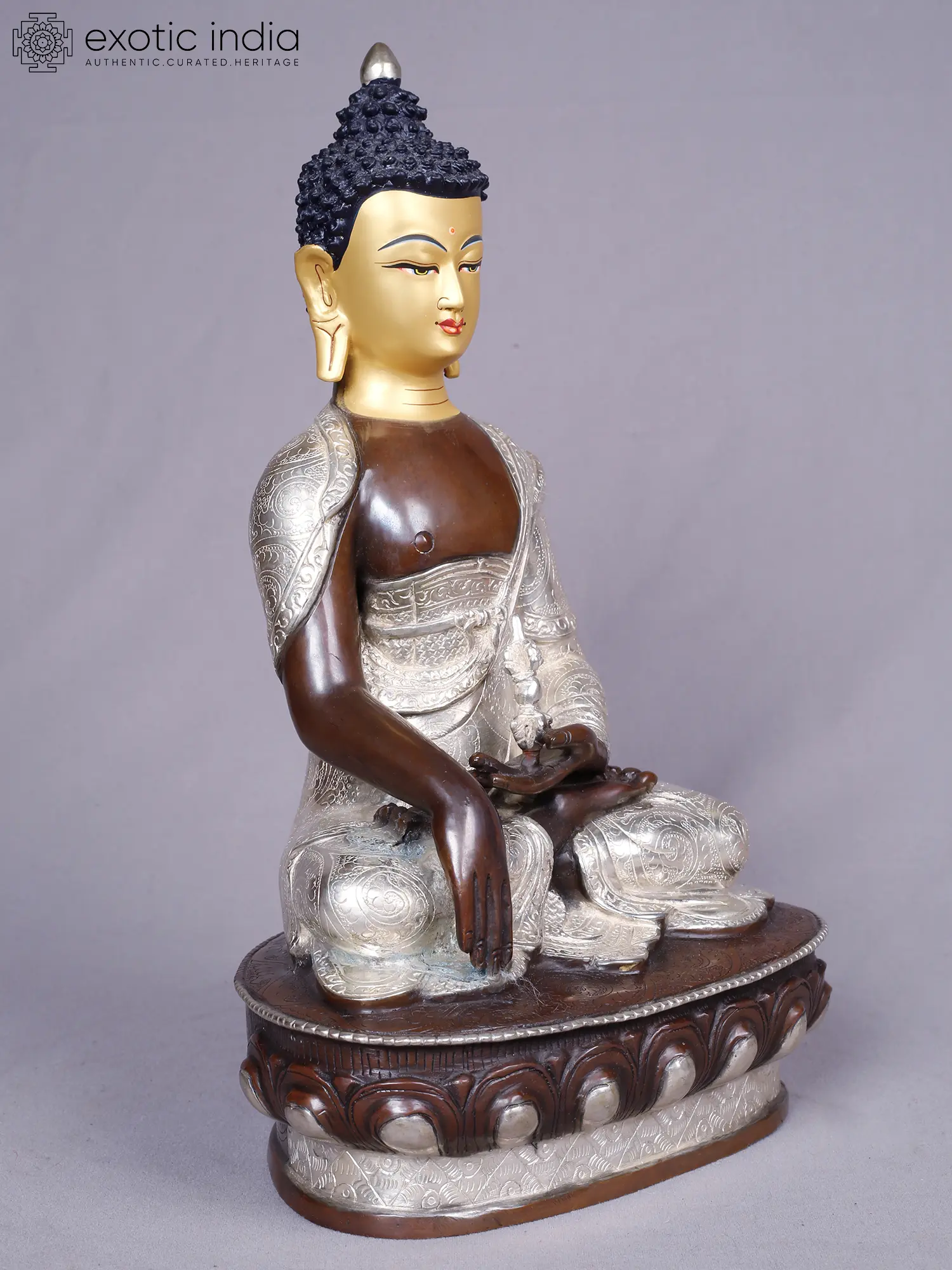 Lord Shakyamuni Buddha Idol | Copper with Gold and Silver Plated | Handmade Exquisite Art