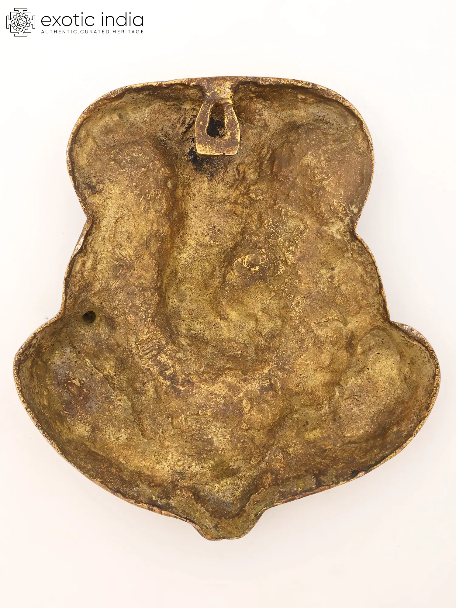 25" Brass Crowned Ganesha Face-Mask Wall-Hanging | Indian Crafted Idol
