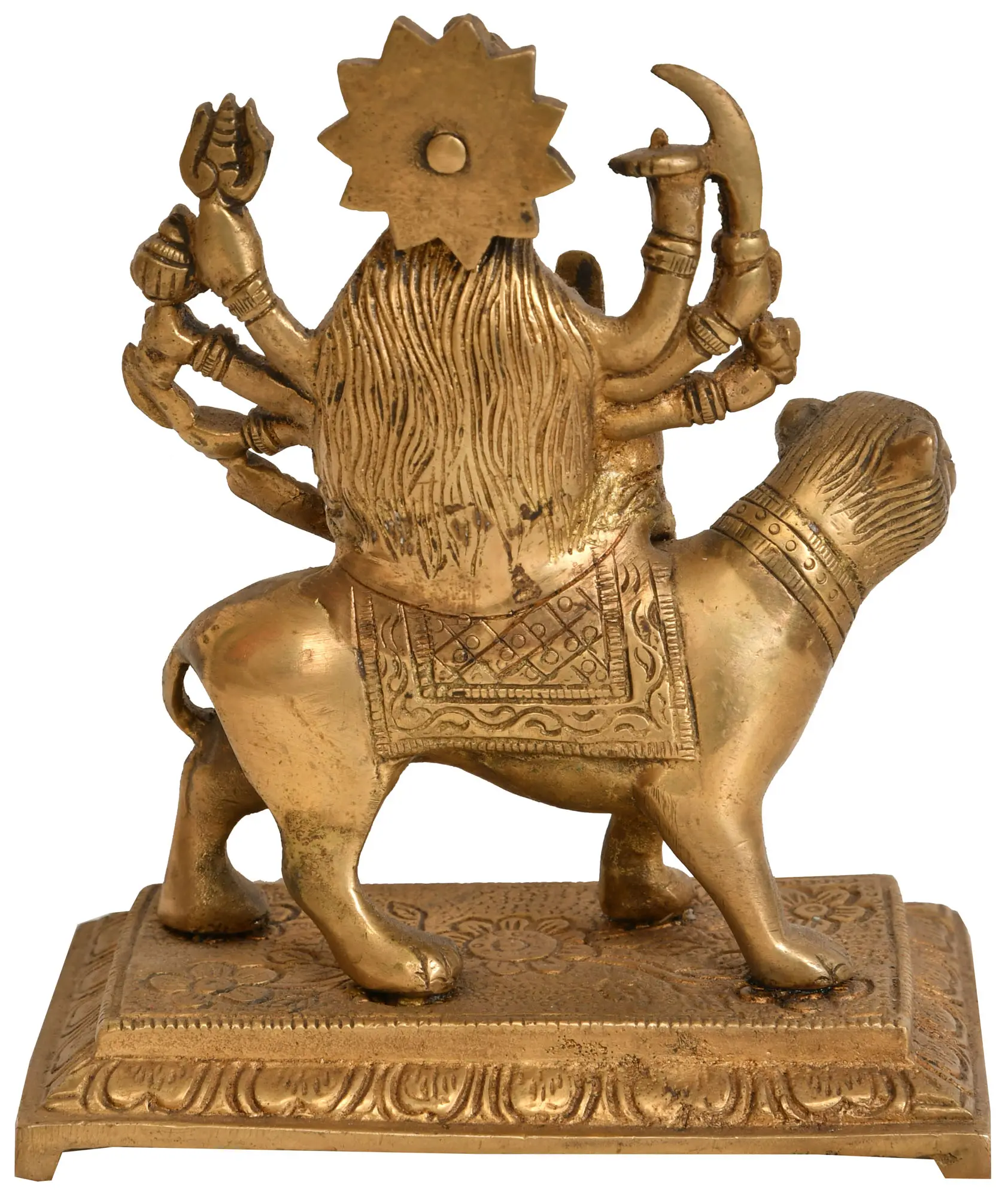 11" Brass Mother Goddess Durga Statue Seated on Her Lion