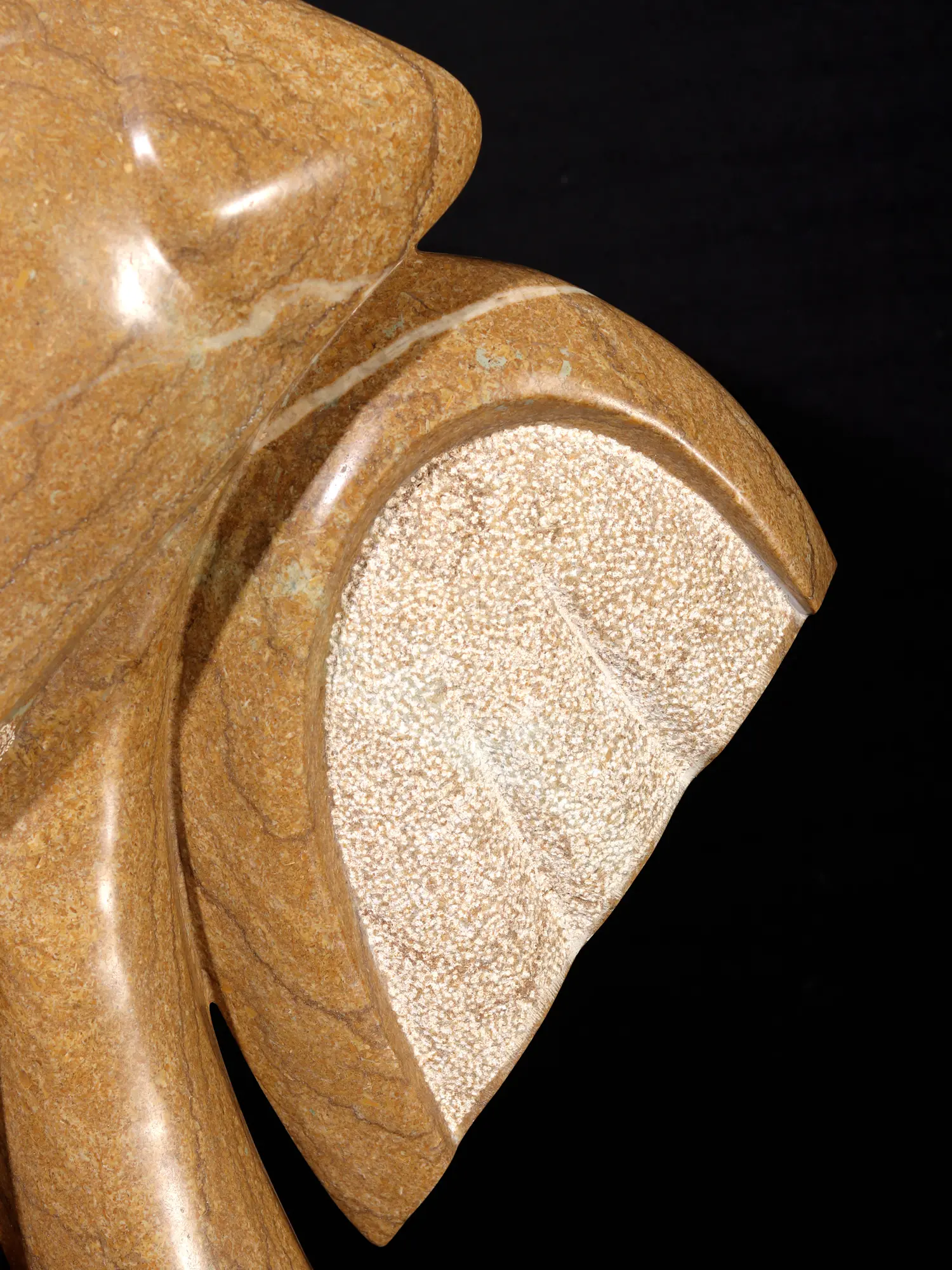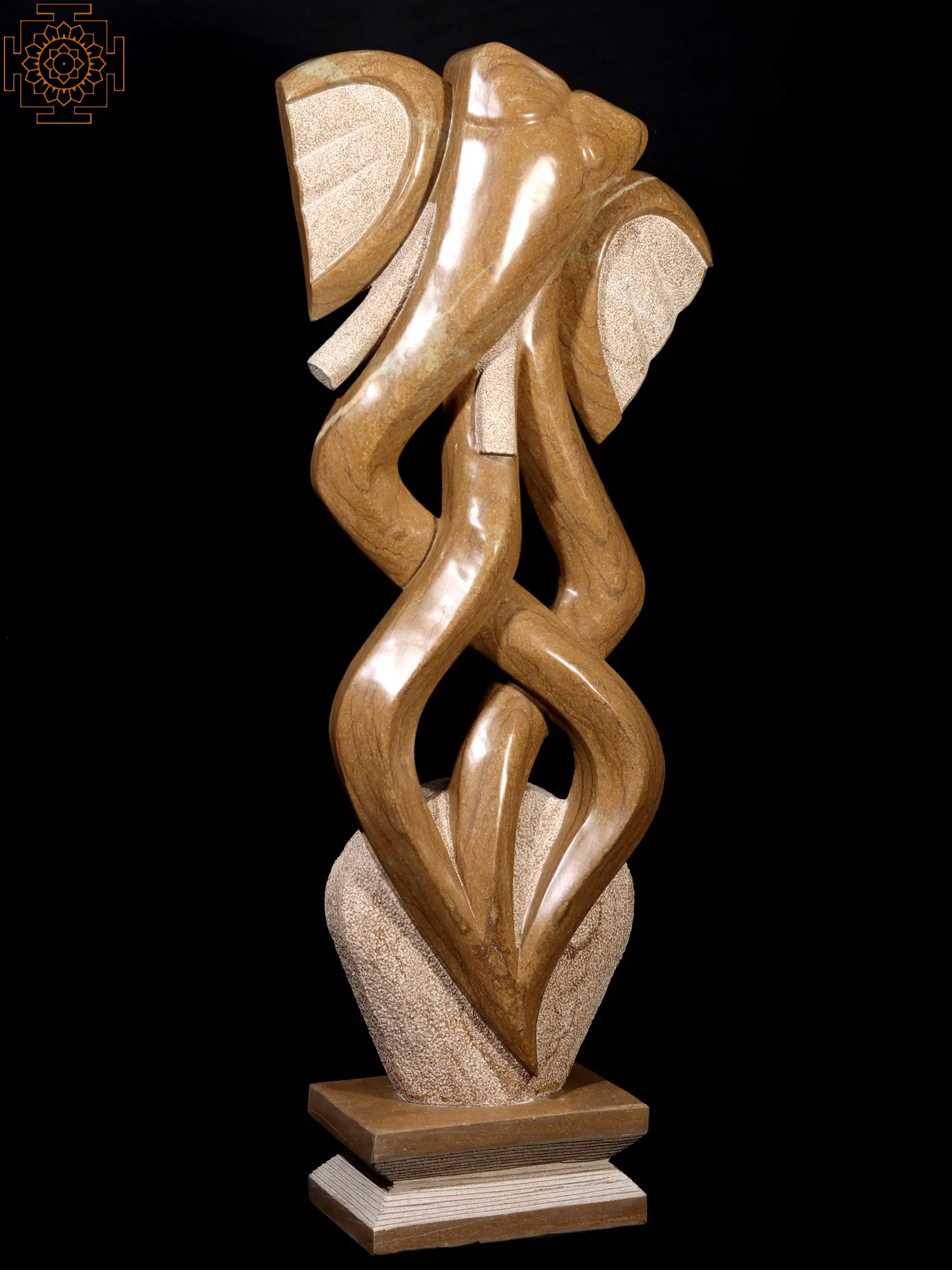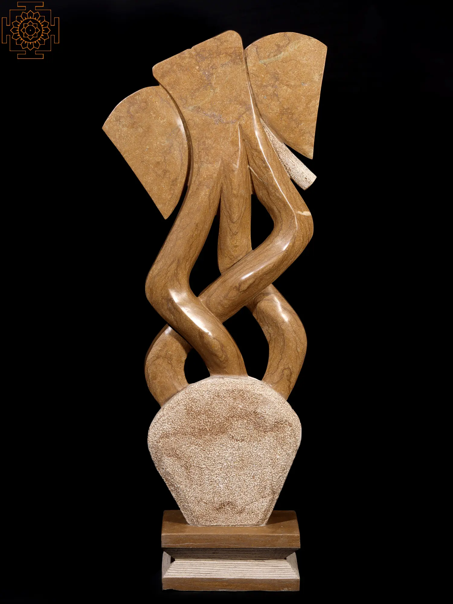 Gracefully merging the sacred with the sculptural, this abstract Ganesha sculpture is a stunning ode to the remover of obstacles in a modern artistic idiom. Carved from Bhuj marble, the piece flows with an almost liquid elegance- its intertwining, wave-like curves suggesting both movement- Ganesha's presence in the cosmic play and transcendence- of the Lord as Param Brahman, the supreme being, who has no beginning or end.
