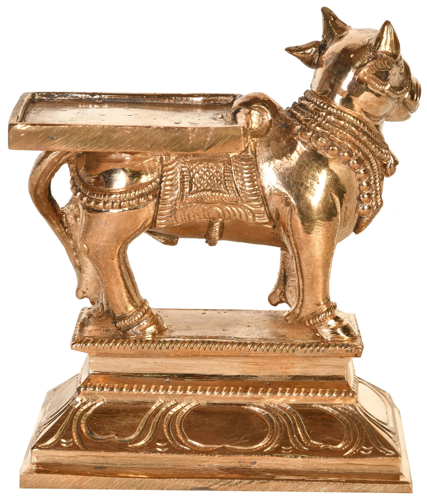 In Hindu mythology, Nandi is not merely an animal but a divine being who achieved immense spiritual stature through his devotion. Stories tell of Nandi's vow to always remain by Lord Shiva's side, a testament to his steadfast commitment. He is also seen as the embodiment of control over the senses and the unwavering pursuit of righteousness. Having a representation of Nandi in your sacred space, especially this functional altar, can serve as a constant reminder of these virtues and encourage a more disciplined and devoted spiritual practice. The rich, warm luster of the bronze enhances the divine aura of the piece, making it a captivating addition to any altar or puja room, a beautiful bridge between the earthly and the divine.