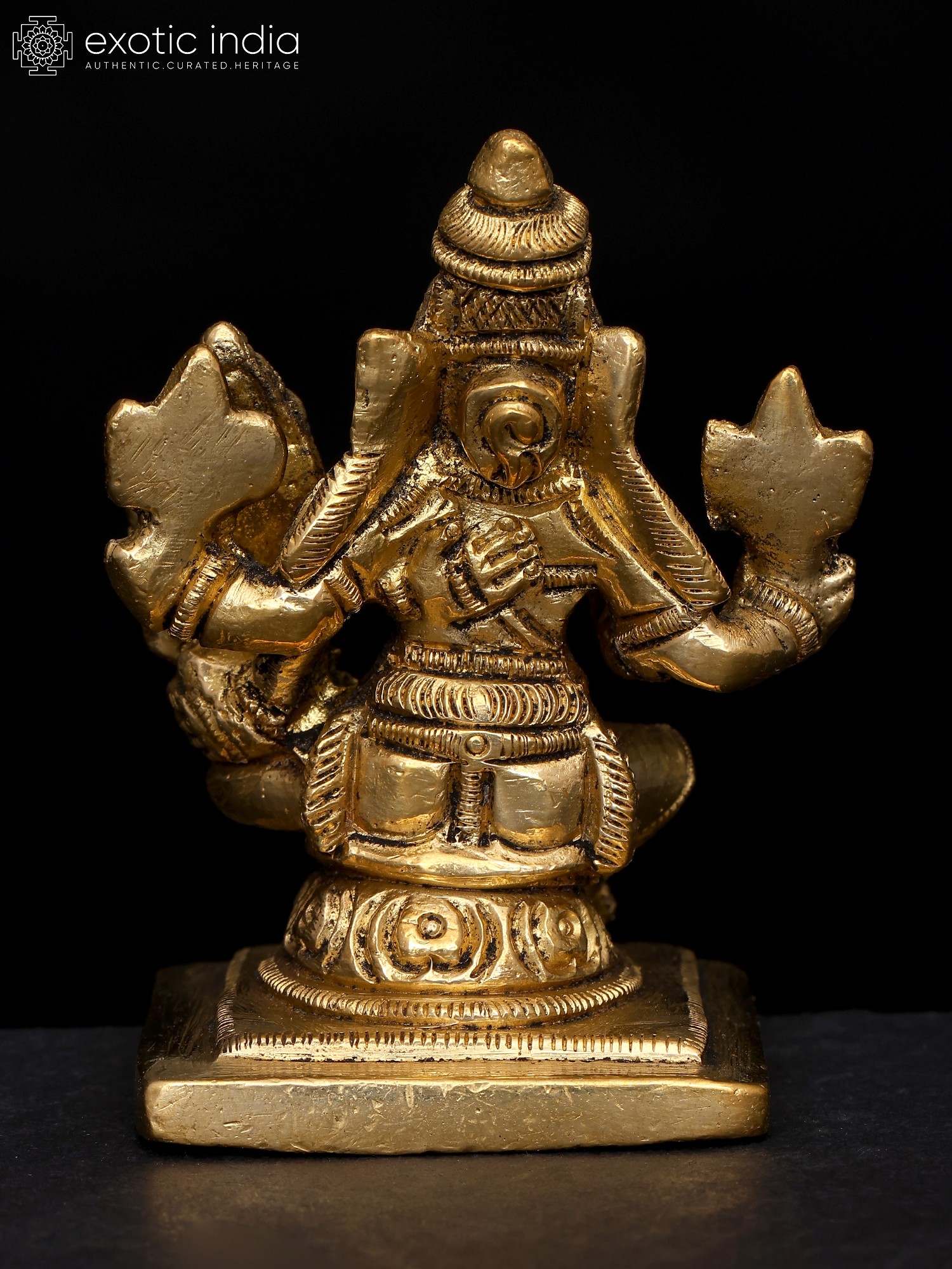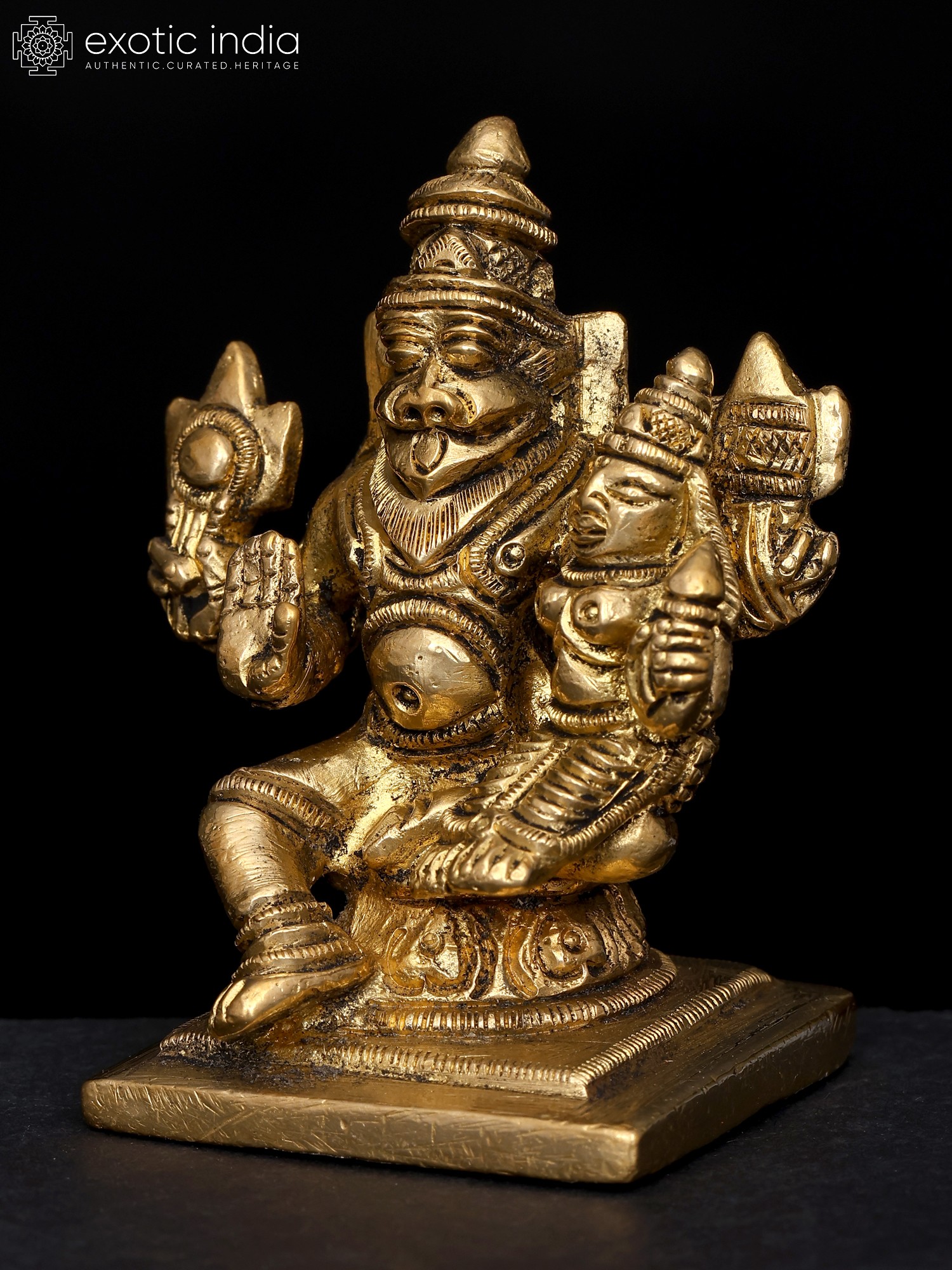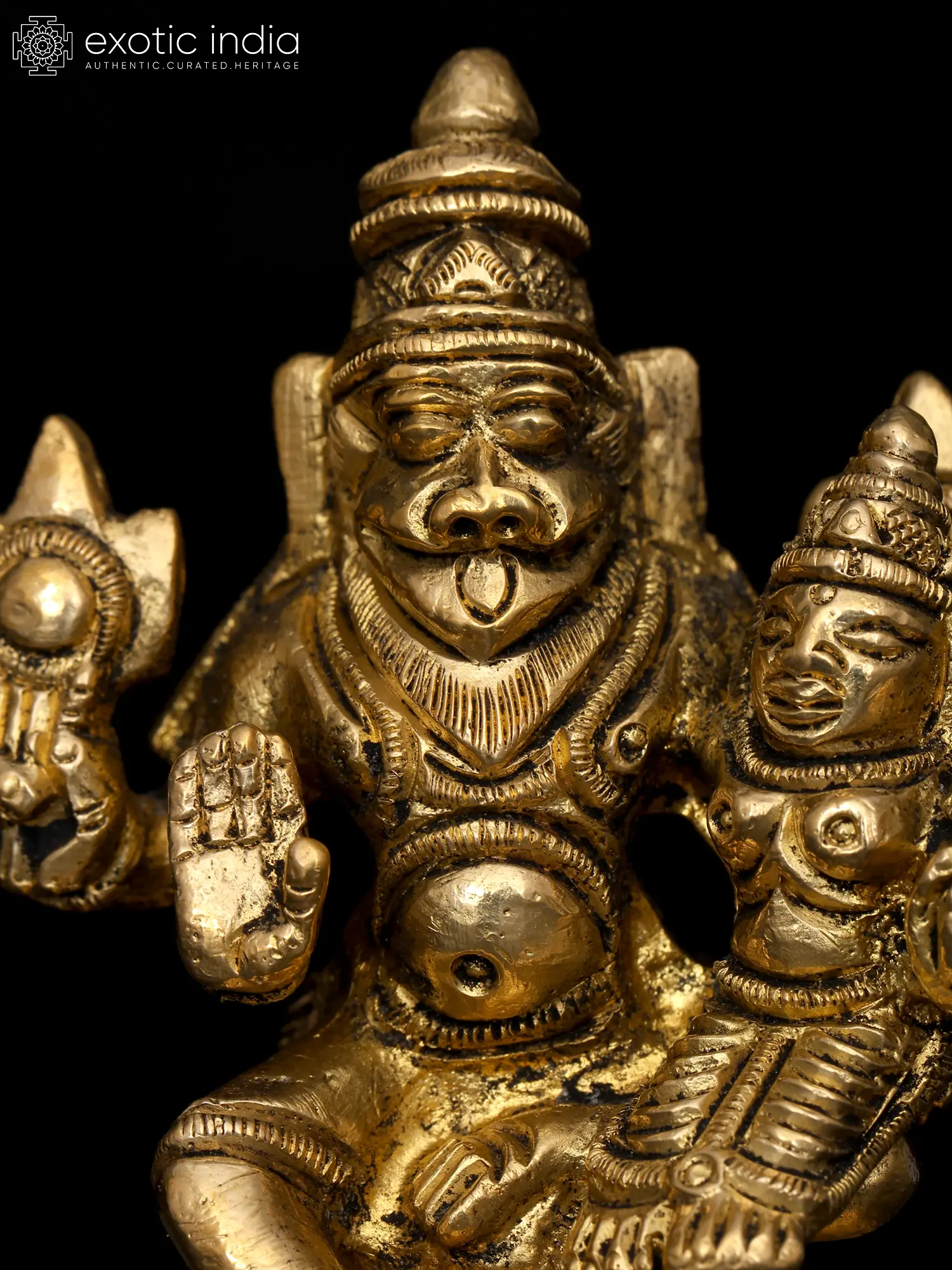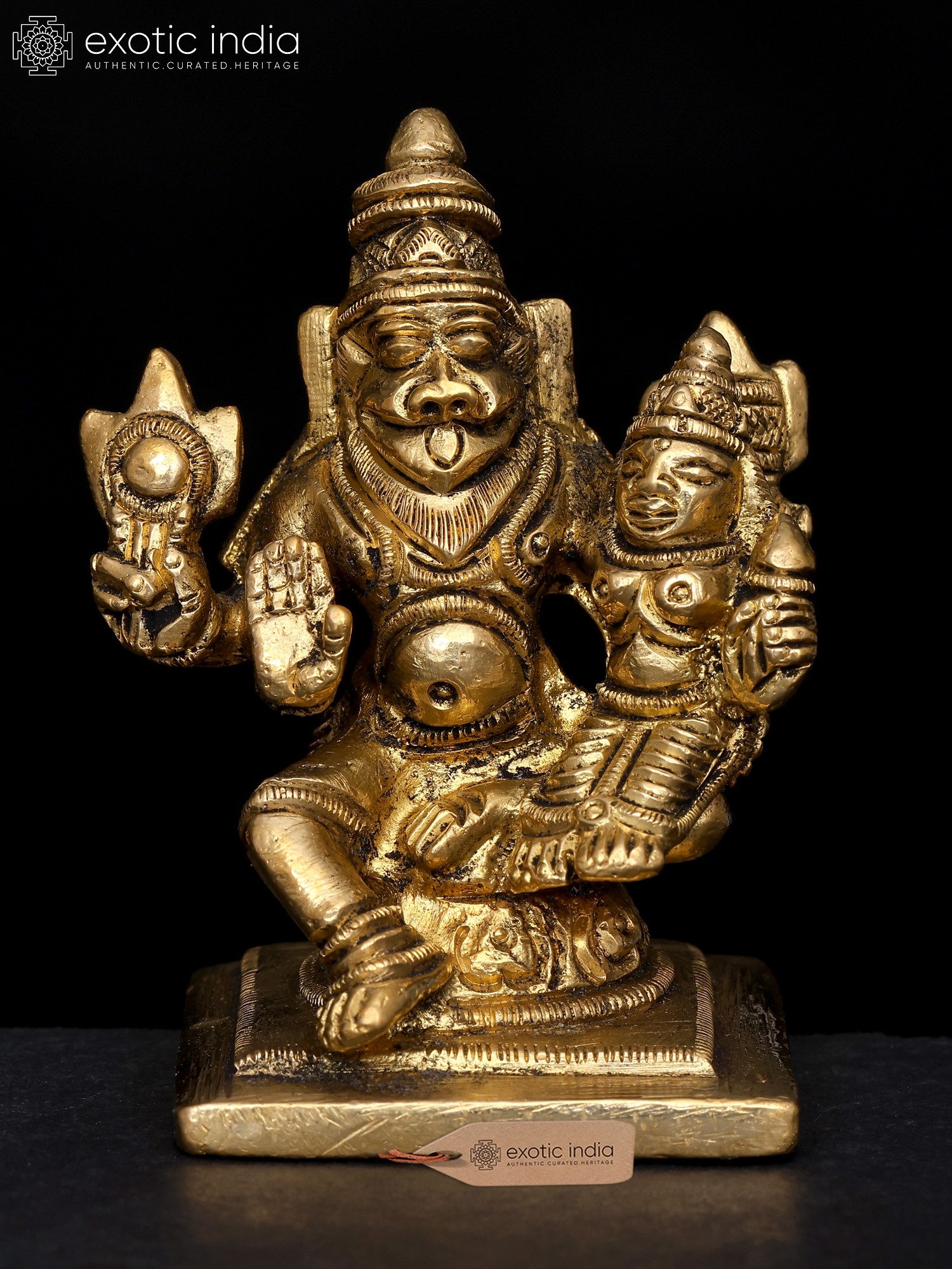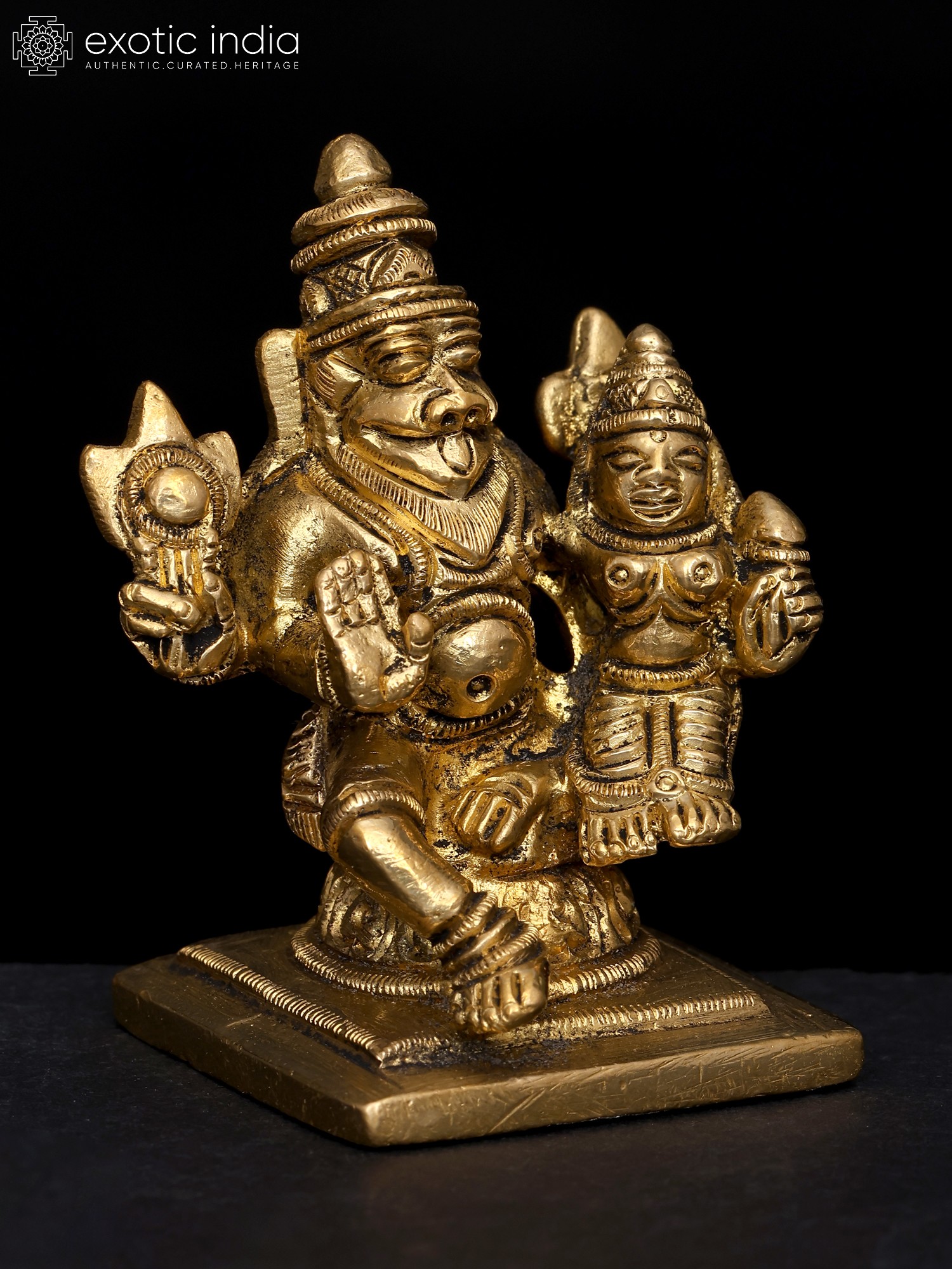 4" Small Superfine Sitting Lord Narasimha with Devi Laksmi | Brass Statue