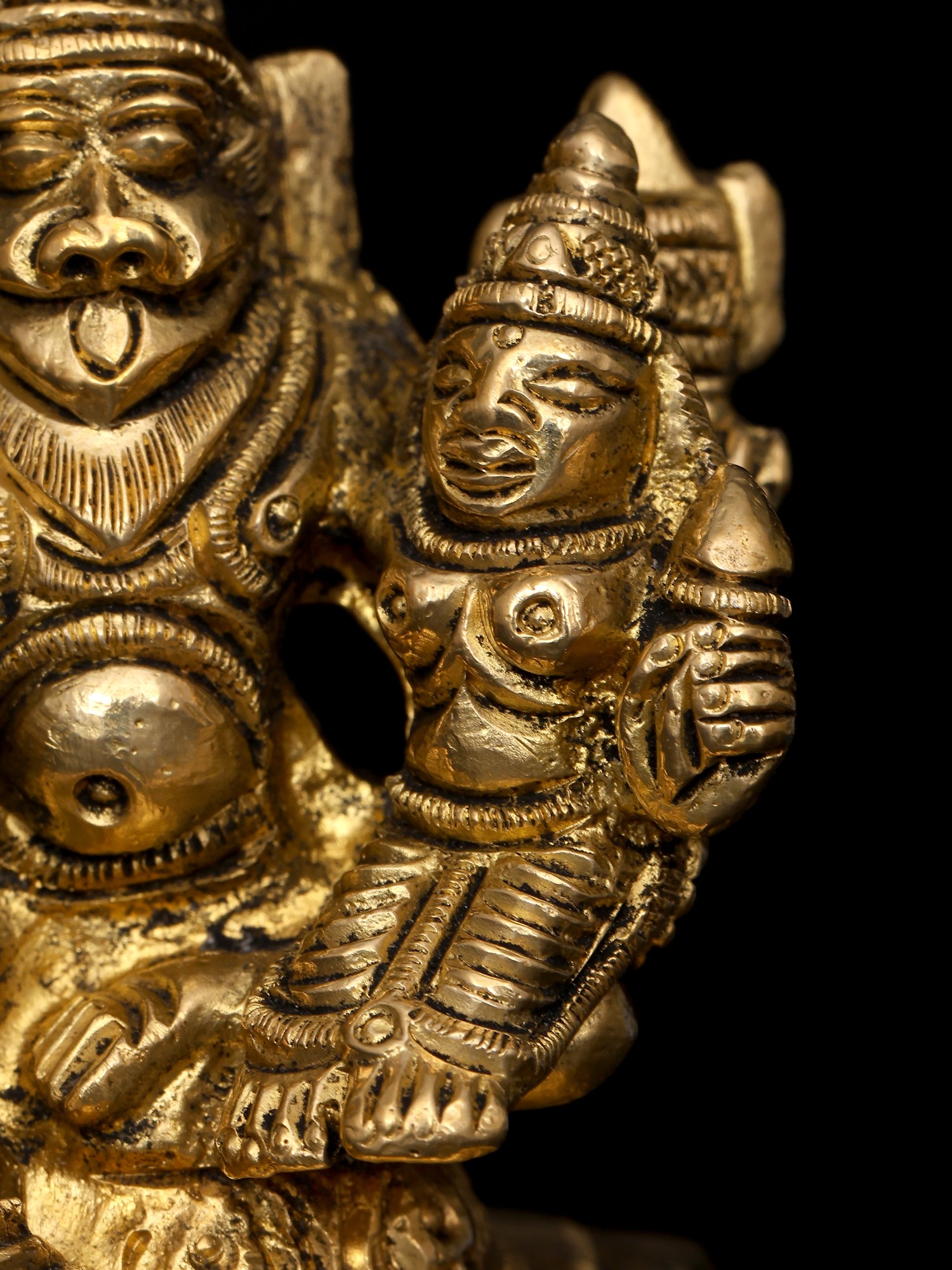 4" Small Superfine Sitting Lord Narasimha with Devi Lakshmi Brass Statue