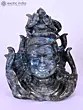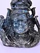 Standing at an imposing height of eleven inches, this sculpted representation is designed to command attention and inspire awe. The rich, complex veining of the stone captures the ethereal blue and grey hues, reminiscent of twilight skies or deep cosmic nebulae. Its approximately 9-inch width and 4.5-inch depth ensure a substantial and commanding presence, perfect for creating a dedicated space for spiritual reflection.