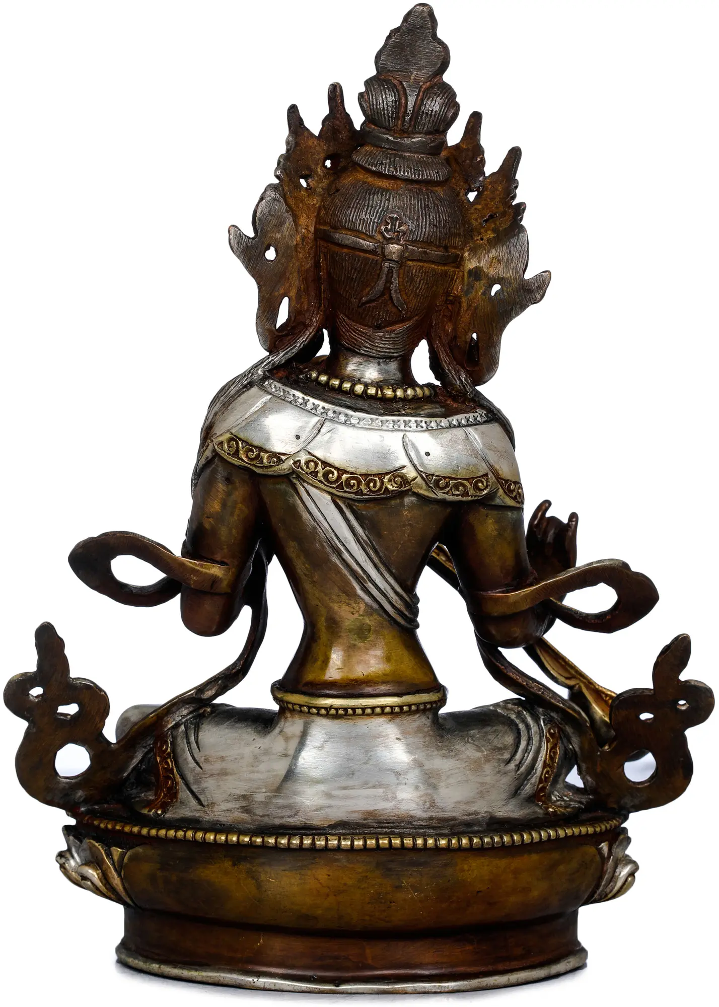 Nepalese statues and sculptures have a high copper content and therefore develop a slightly reddish patina on the surface as they age. However, the most unique feature of Nepalese copper statues is their decorative detailing. The pieces are heavily gilded and sometimes inlaid with semi-precious stones. This embellishment protects them from getting tarnished. The traditional lost-wax method for casting Nepalese copper statues remains the most practiced technique in Nepal for many centuries. This process involves many steps and requires skilled artists.