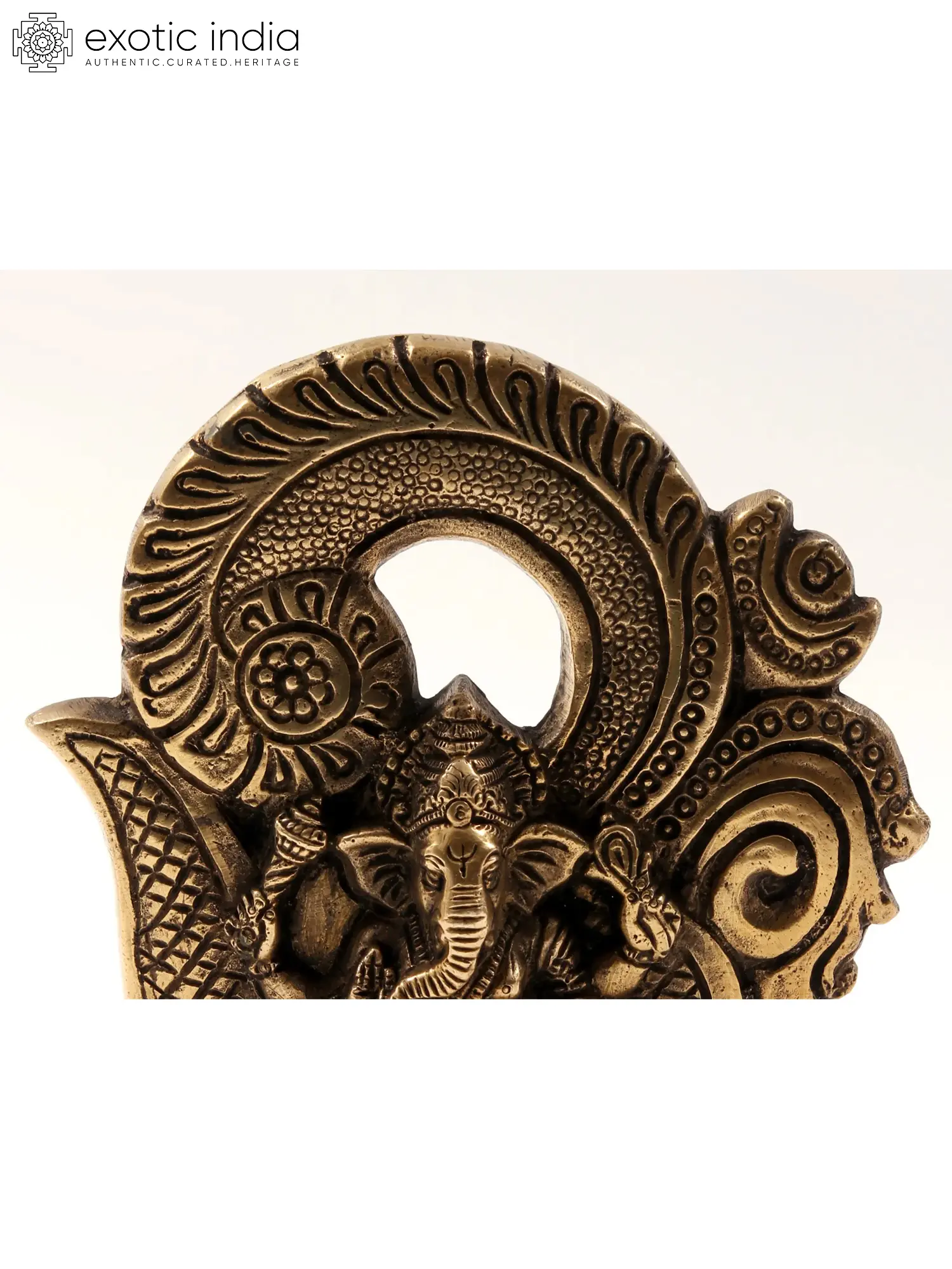 Upon the OM (AUM) Ganesha Wall Hanging Plate, Lord Ganesha's presence is both a symbol and sanctuary. The sacred syllable AUM represents the cosmic sound, while Ganesha embodies the remover of obstacles. As this brass plate graces a space, it resonates with the cosmic vibration, inviting harmony and auspicious beginnings. Ganesha's trunk signifies adaptability, his elephant head wisdom, and his broken tusk self-sacrifice for knowledge. In this art piece, a divine dance unfolds, an invitation to embrace life's challenges, transforming them into stepping stones toward enlightenment. Within its radiance, we're reminded that every obstacle can become a path to growth.