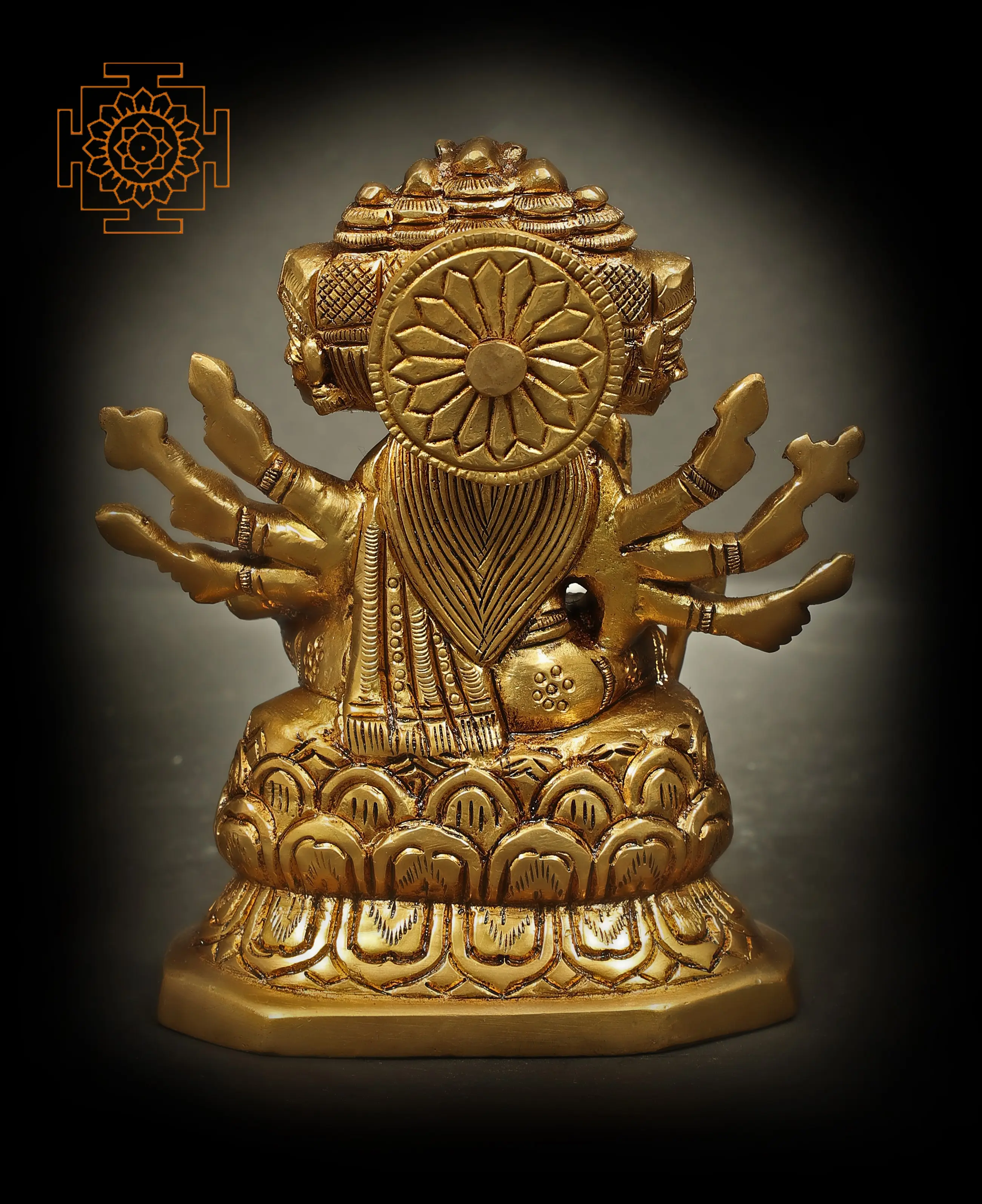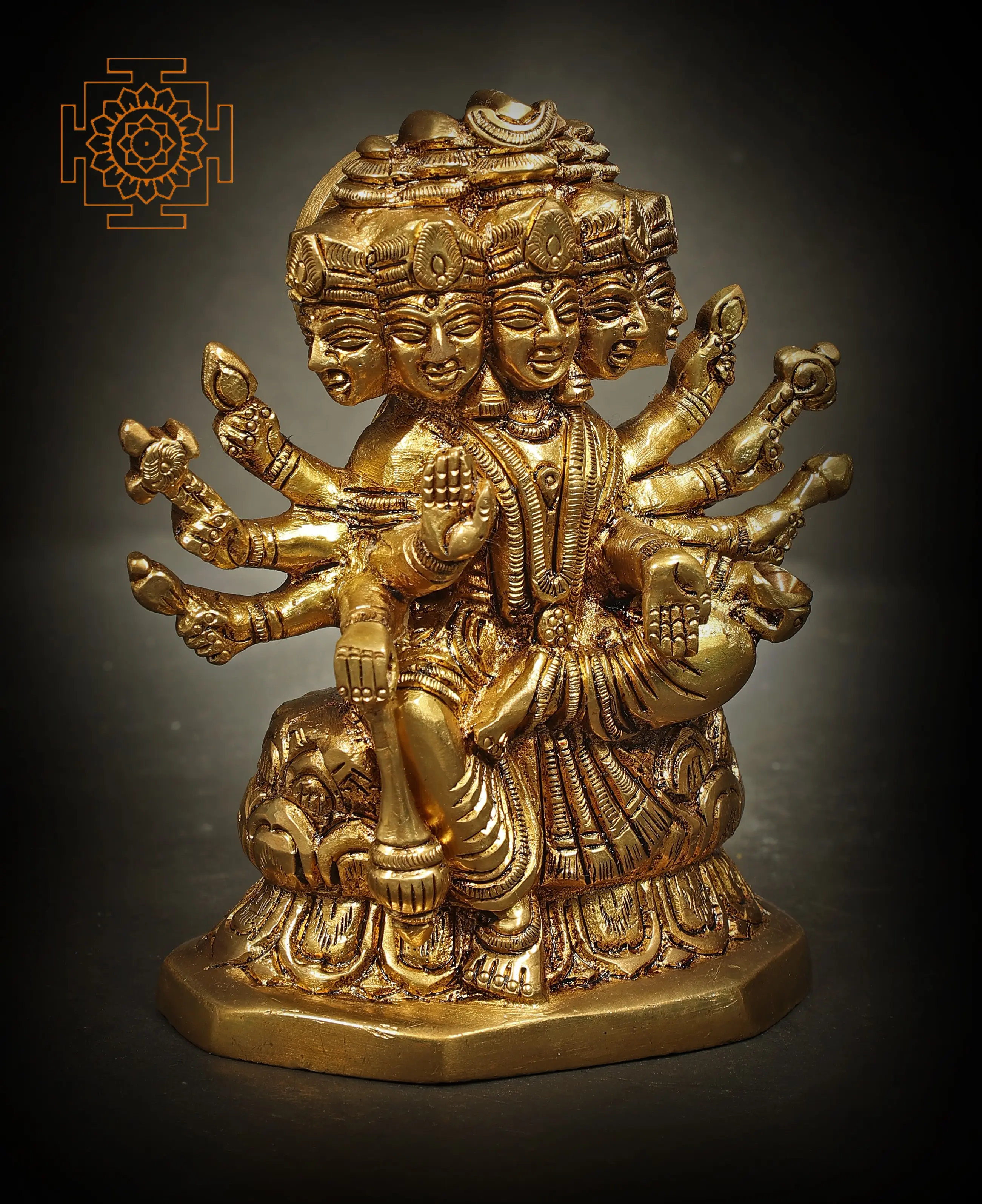 Panchmukhi Lord Vishnu, the preserver and sustainer of Universe, exudes serenity in “Lalitasana”. His five faces represent distinct facets of existence, embodying the quintessence of creation, preservation, and destruction. With gracious hands, He extends blessings to all. His front hands, in “Abhaya Mudra”, grant fearlessness, assuring protection from life’s uncertainties. In “Varada Mudra”, He bestows boundless boons and grace, showering devotees with divine favours. Crafted in brass with love, this artwork invites reverence and devotion, beckoning seekers to embrace His omnipresent benevolence.