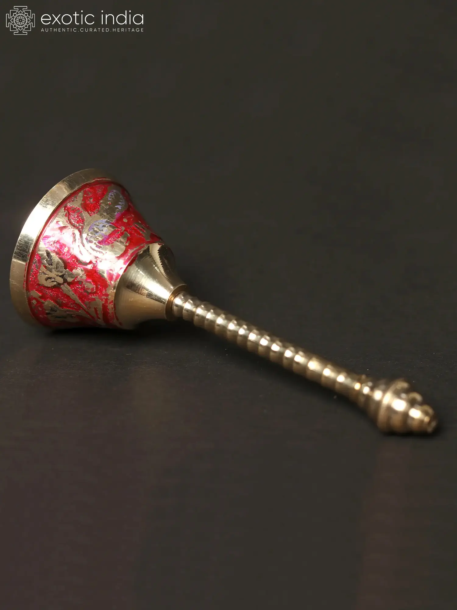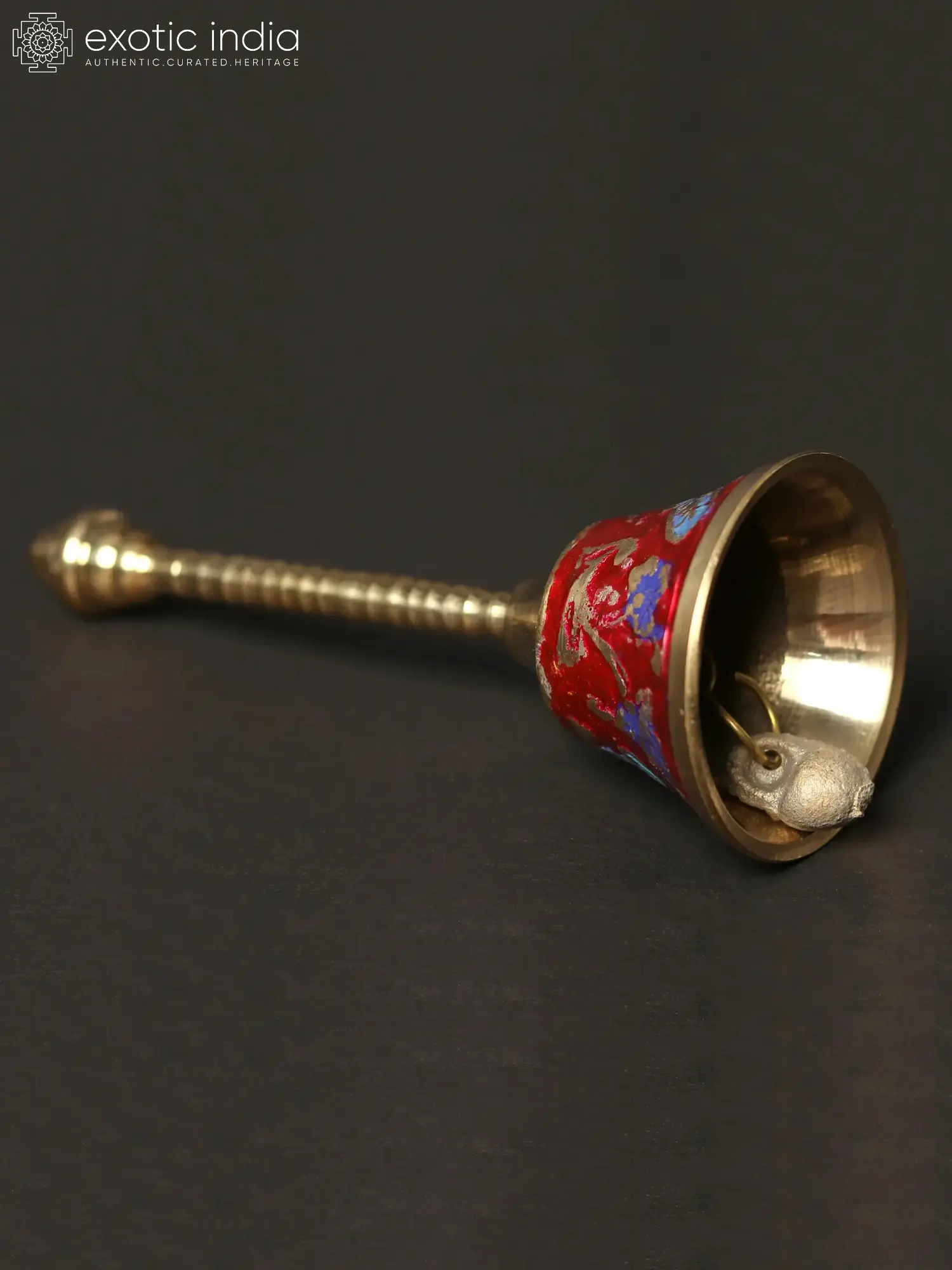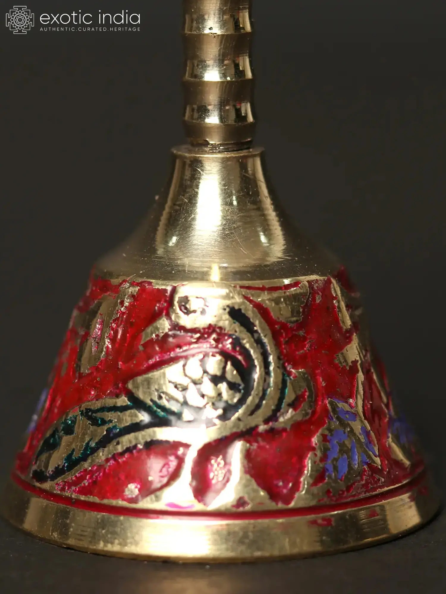 Peacocks have always been a symbol of grandeur. They are regarded as auspicious, and many art forms use their image to increase their beauty. This brass bell with peacocks in meenakari is a beautiful amalgamation of ceremonial use and a sense of beauty. It will not only help remove negative energy through the vibration of the bell but will also enrich the space with beauty.