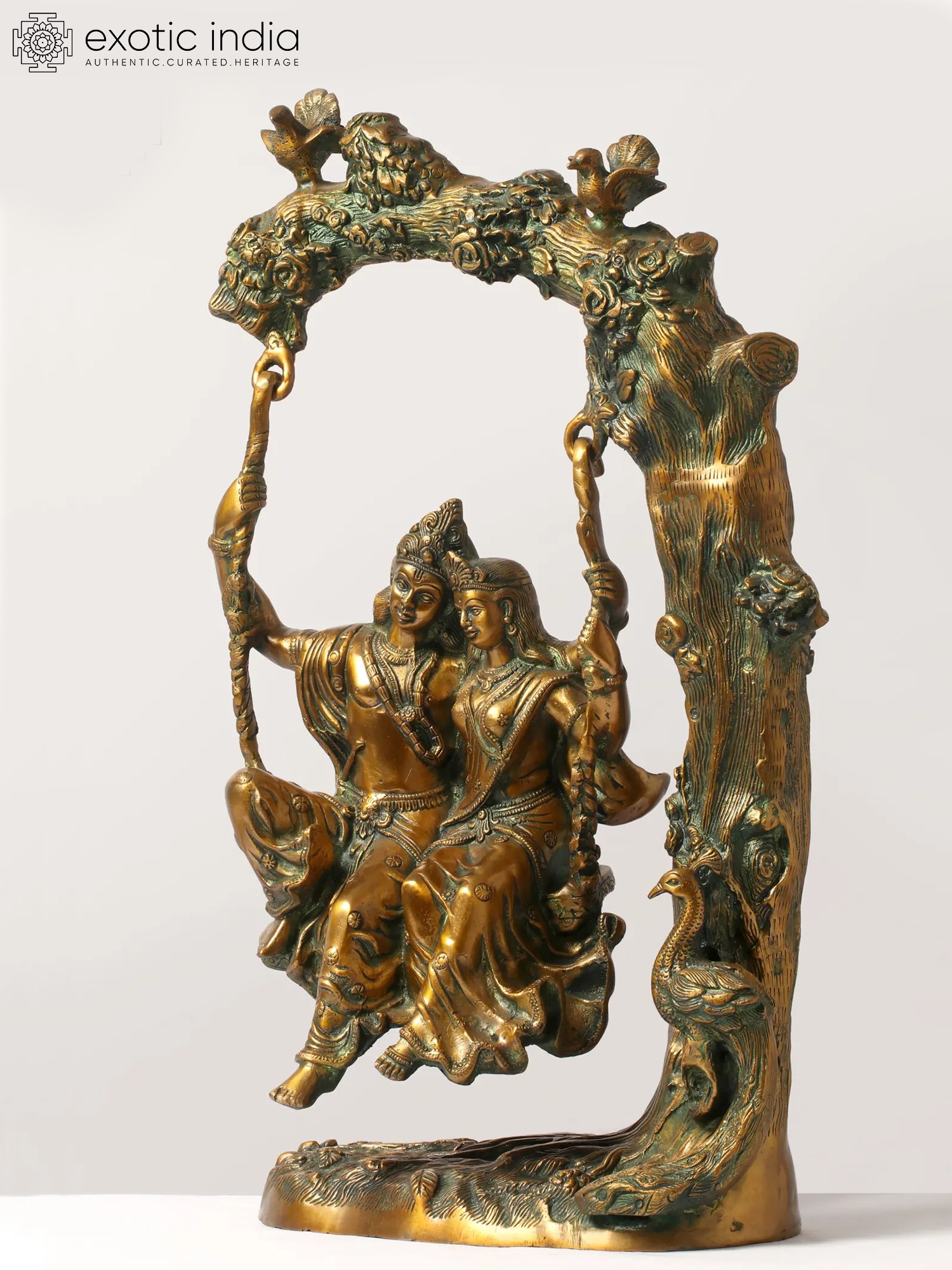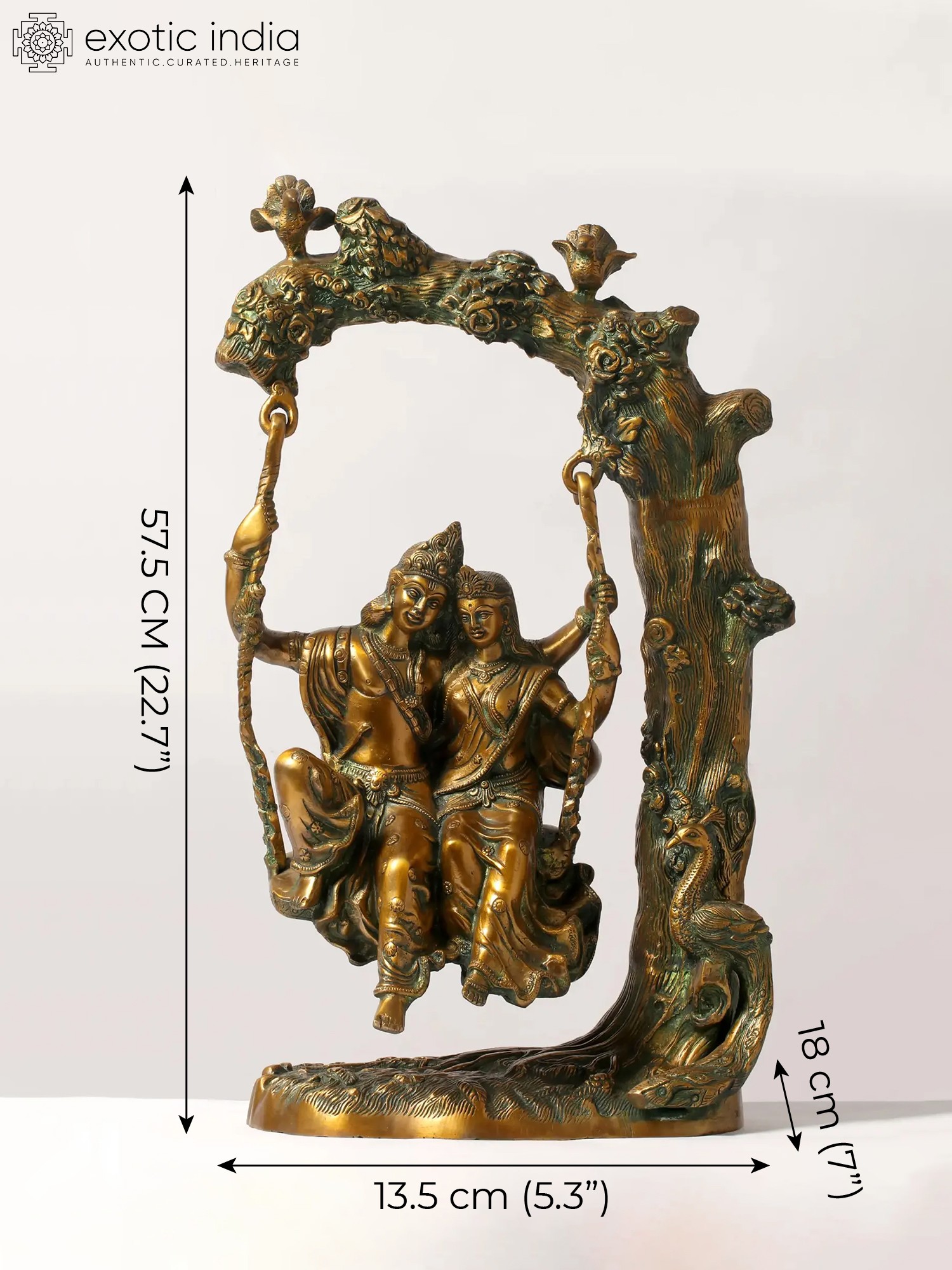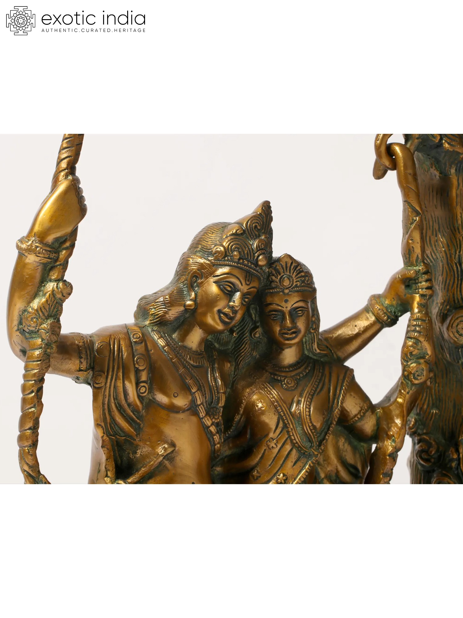 Transport yourself to the realm of divine love and eternal romance with our enchanting brass sculpture of Radha-Krishna. This handcrafted masterpiece captures the essence of love, devotion, and the amorous bliss that transcends earthly boundaries. As you explore the sculpture, you'll be drawn into the intricacies of Radha and Krishna's expressions, the graceful swing, and the symbolism of their eternal bond. This artwork is more than just a piece of art; it's a symbol of divine love and the profound philosophy of union with the divine. Display it in your space as a reminder of the eternal love story that transcends time and encourages a deeper connection with the divine.