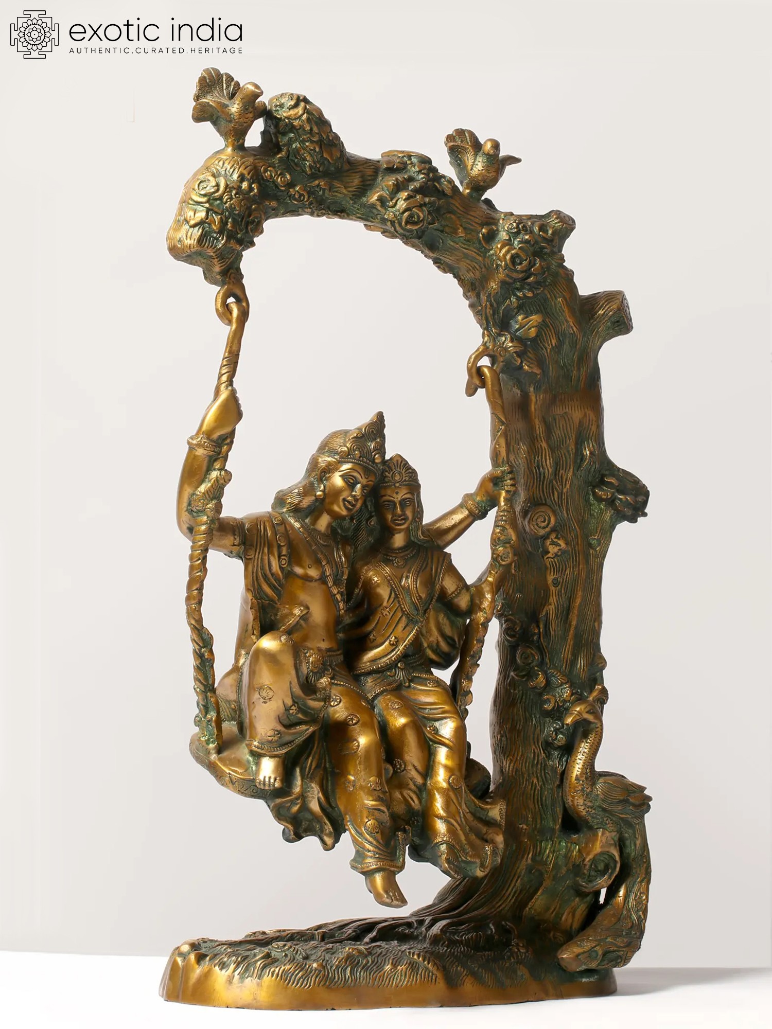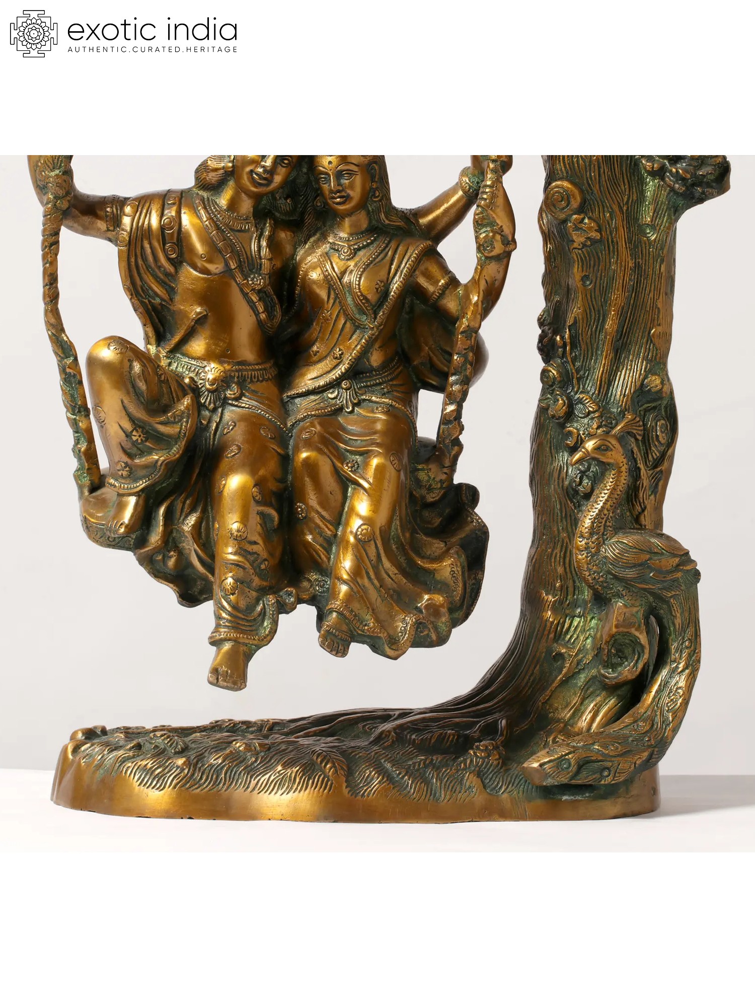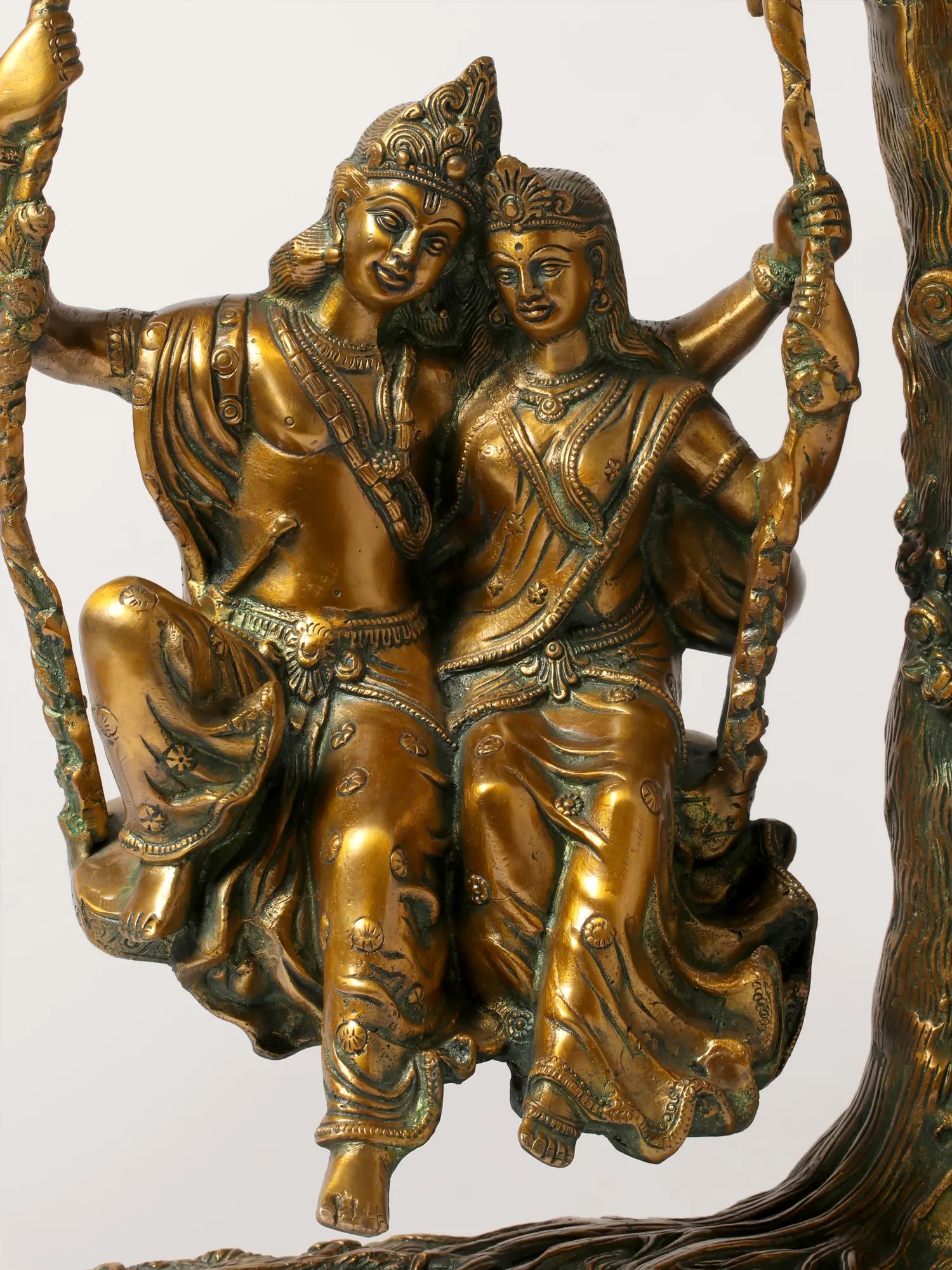 Transport yourself to the realm of divine love and eternal romance with our enchanting brass sculpture of Radha-Krishna. This handcrafted masterpiece captures the essence of love, devotion, and the amorous bliss that transcends earthly boundaries. As you explore the sculpture, you'll be drawn into the intricacies of Radha and Krishna's expressions, the graceful swing, and the symbolism of their eternal bond. This artwork is more than just a piece of art; it's a symbol of divine love and the profound philosophy of union with the divine. Display it in your space as a reminder of the eternal love story that transcends time and encourages a deeper connection with the divine.