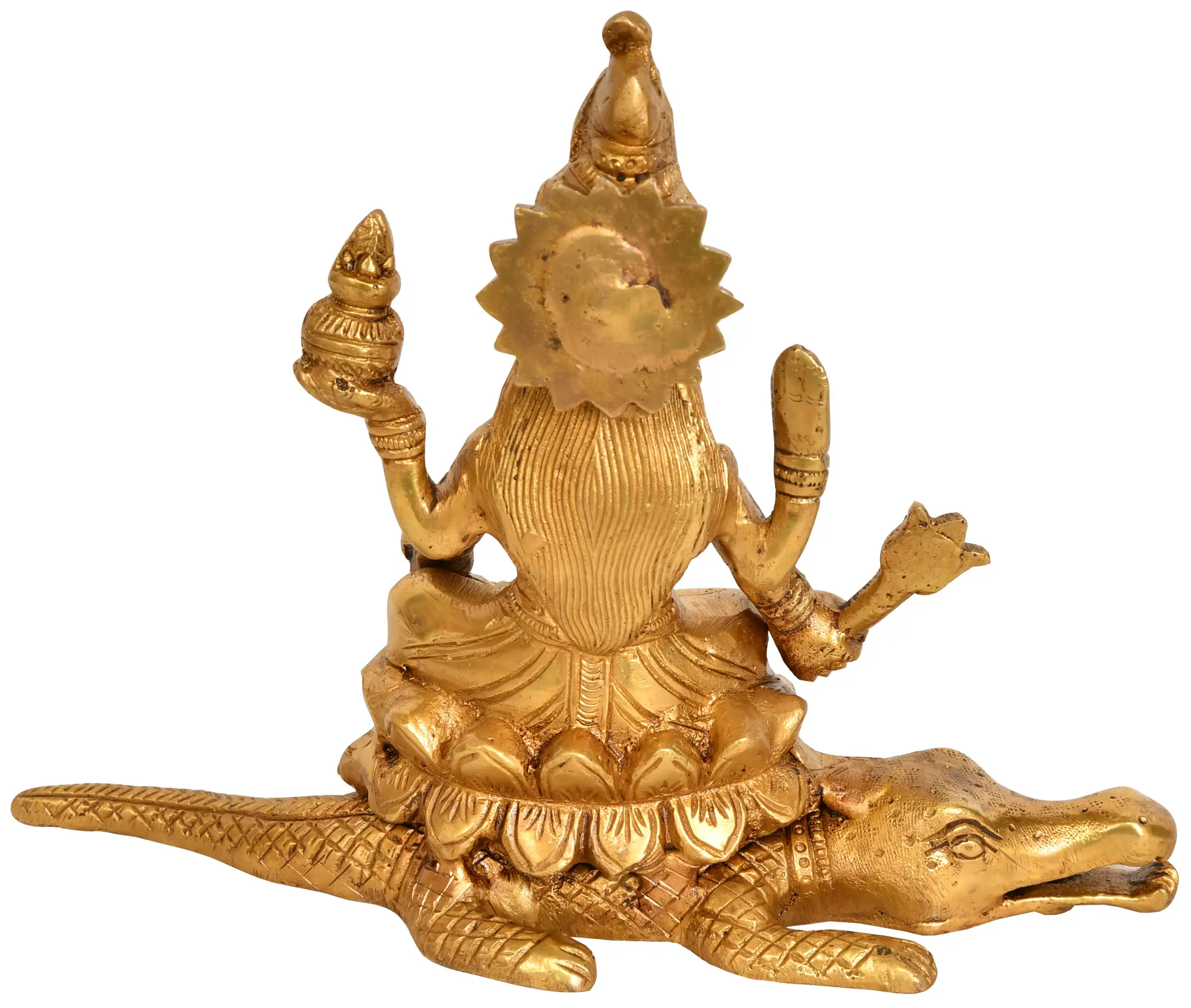 12" Goddess Ganga Seated on Crocodile | Brass Statue