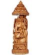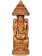 Lord Ganesha is depicted holding the ankusa in his upper right hand, while his tusk is seen blowing the conch shell, which is held by his lower left hand. He is seen wearing Naga, the snake, as his belt, which are sacred symbols of Ganesha's father, Lord Shiva. The chamara depicted is said to whisk away the worries and misleading thoughts. The svastika depicted symbolizes auspiciousness while the modakapatra, bowl of sweets, symbolizes what Ganesha loves most, moksha, liberation, the sweetest of all things sweet.