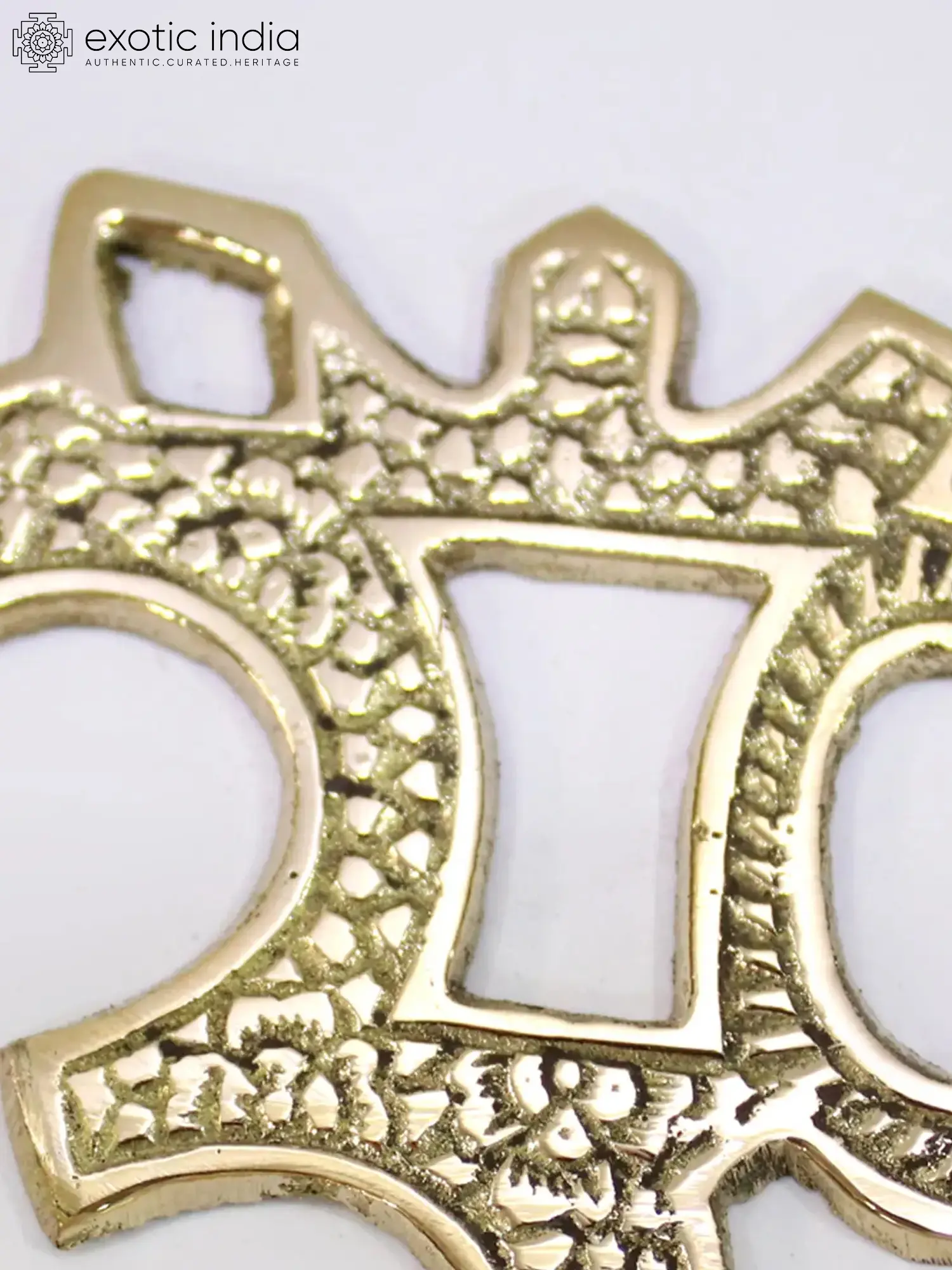 The sacred word Om, representing the Supreme Power in Indian scriptures, is the primal sound from which all other sounds and creation emanate. A person who realizes is said to unite with the Absolute. This brass wall hanging in the sacred image of Om is an homage to the infinite knowledge inside this symbol. Placing an Om sign on a wall is considered sacred in many Hindu households, and this wall hanging proves that heavenly intent. A meditator can obtain extreme tranquillity and motivation for gaining global wisdom. By hanging this wall
