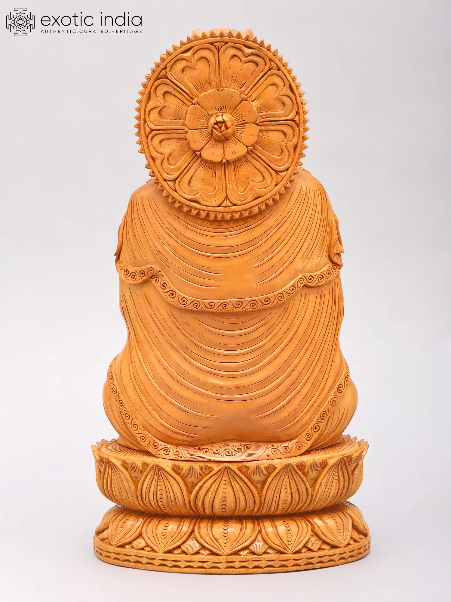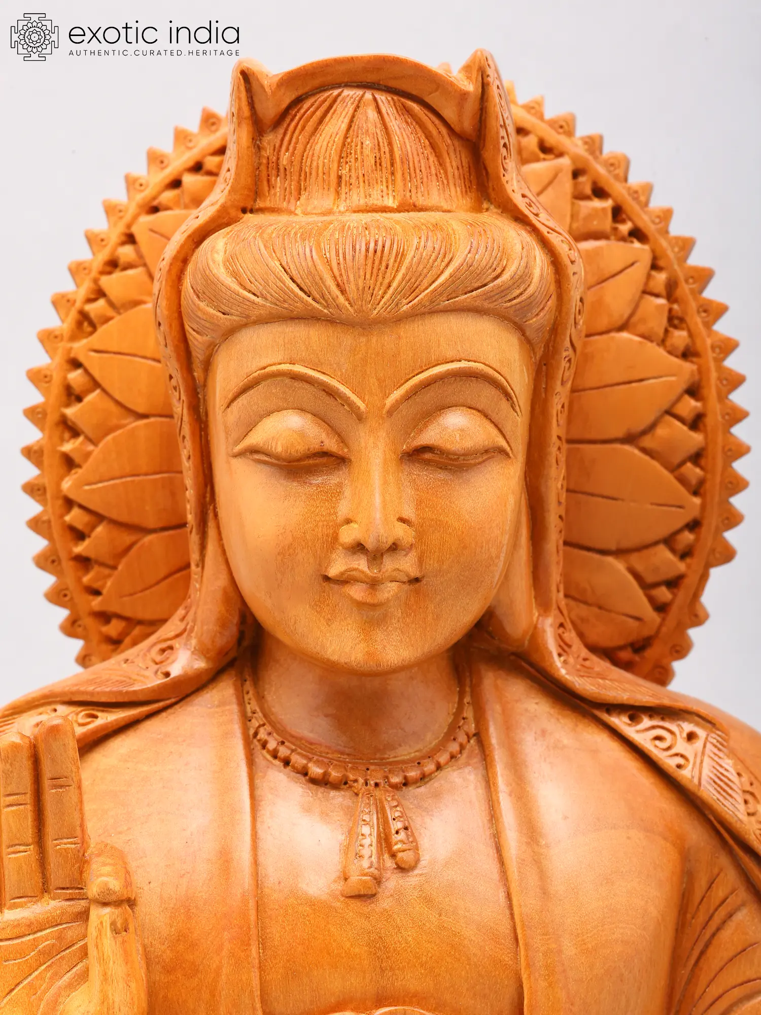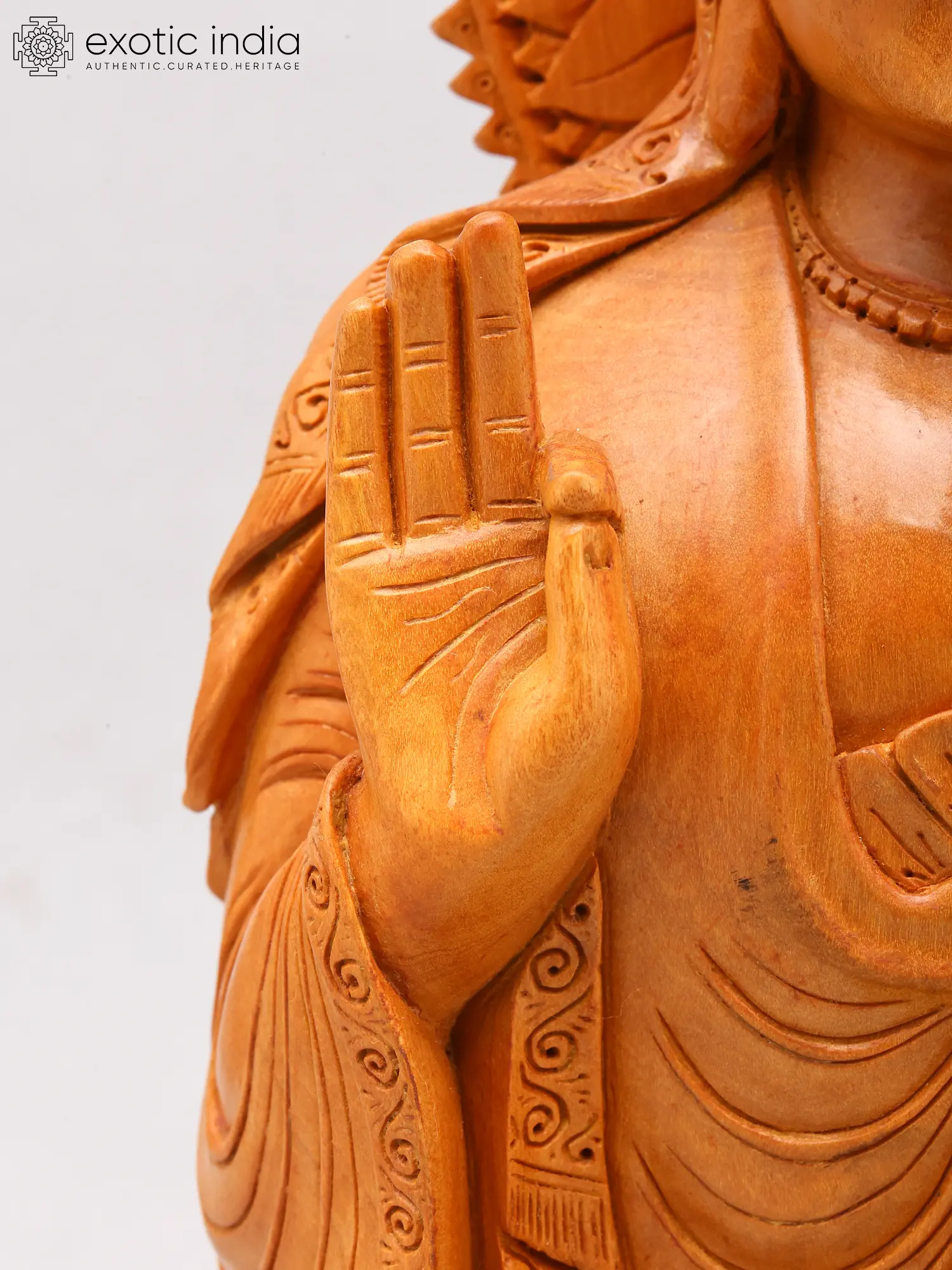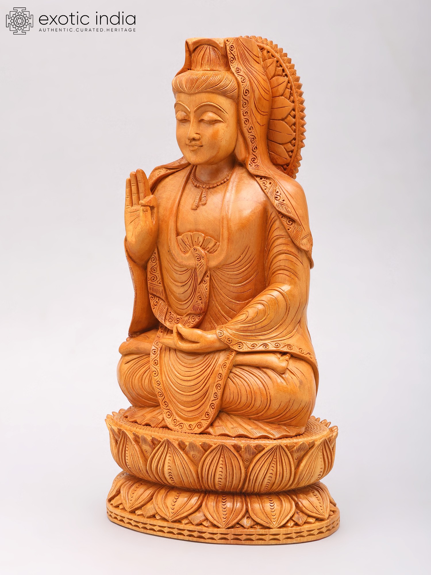 Crafted from premium wood with detailed hand-carving showcasing flowing robes and symbolic gestures.