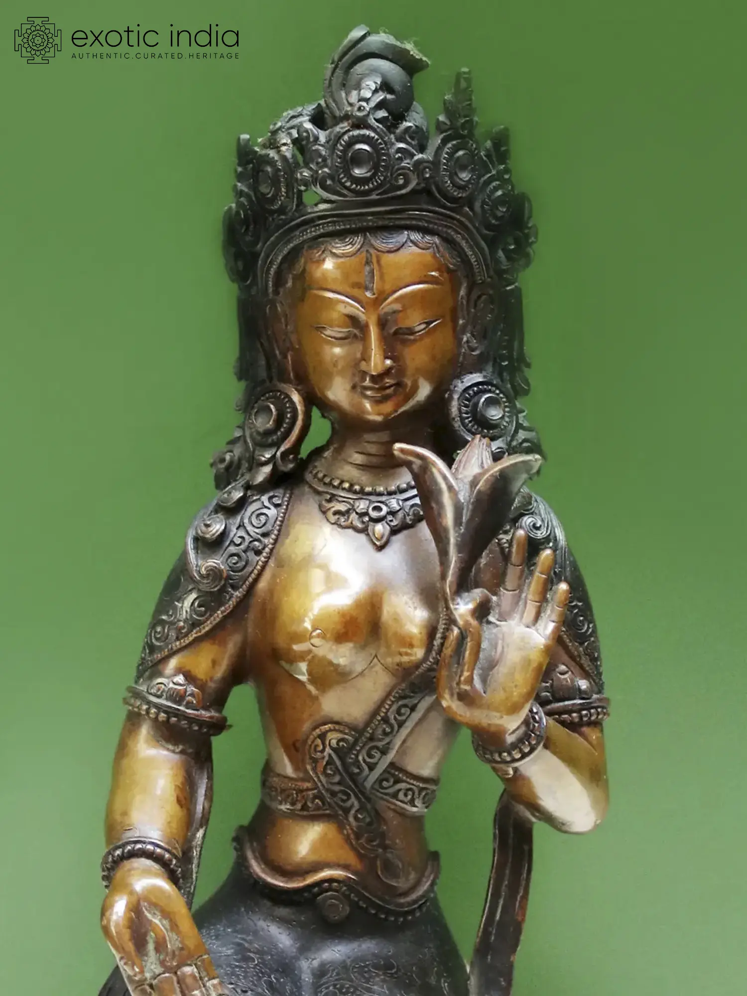 Hailed for her tranquil demeanor and restorative properties, White Tara is a renowned figure in Tibetan Buddhism, representing compassion and enlightenment. She represents pure goodness and the brightness of awakened awareness when she is dressed in all-white. As a result of receiving the aura, White Tara turns into a moon goddess. Not only is the moon lovely, but it also radiates gentle light upon the earth and is pleasant to look at. White Tara's magical ability to magnify things is strengthened by the full moon, allowing them to reach their maximum potential. According to certain readings, she represents tranquility and a growth in boundless happiness. Devotion to her leads to the completion of a perfect circle—the moon of our lives, good traits, and wisdom.