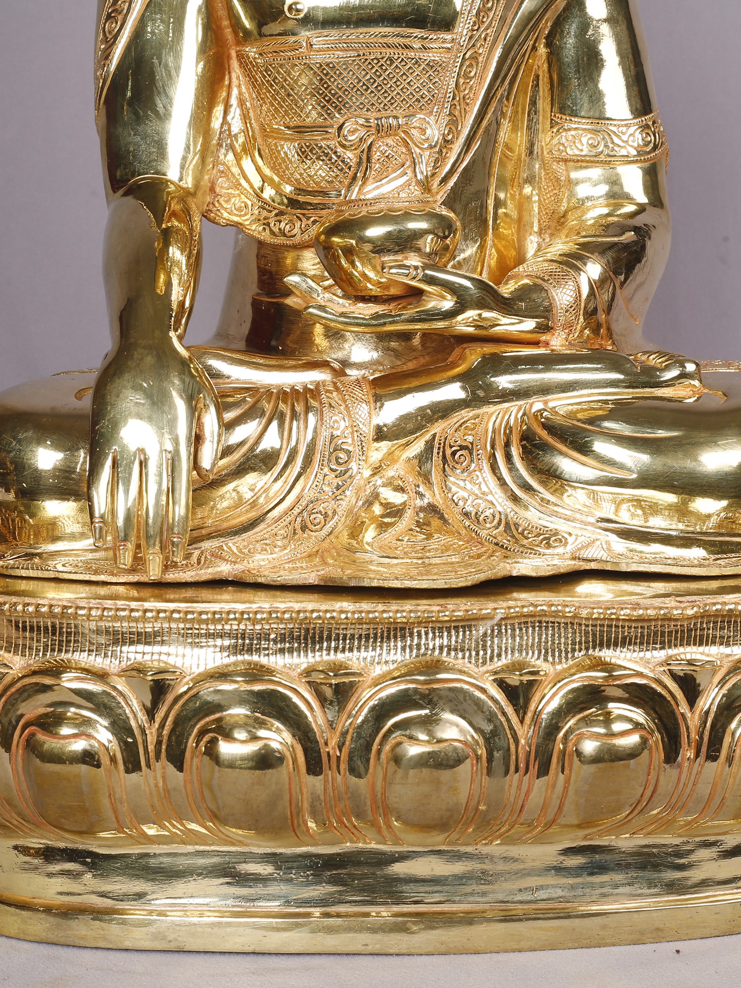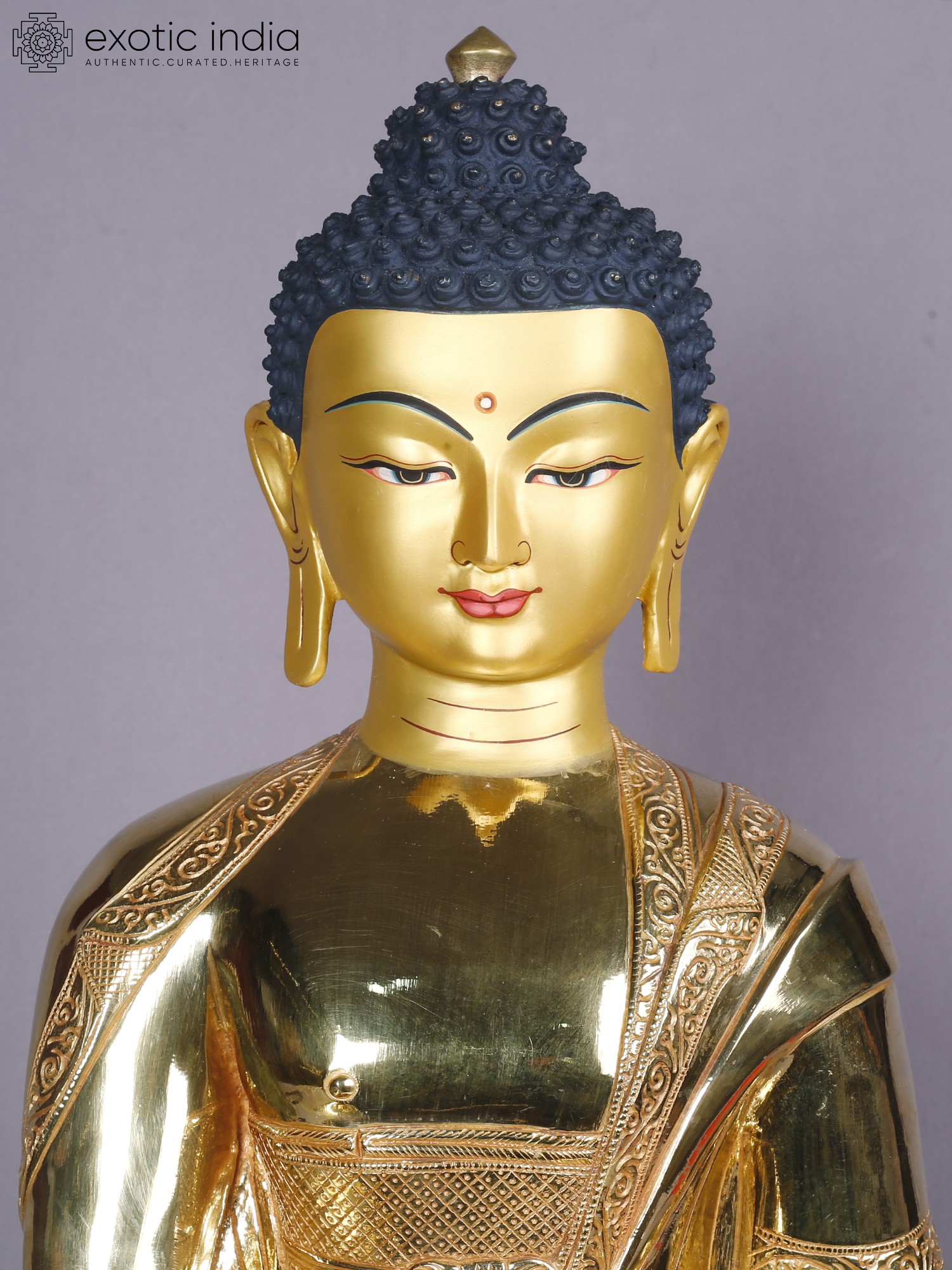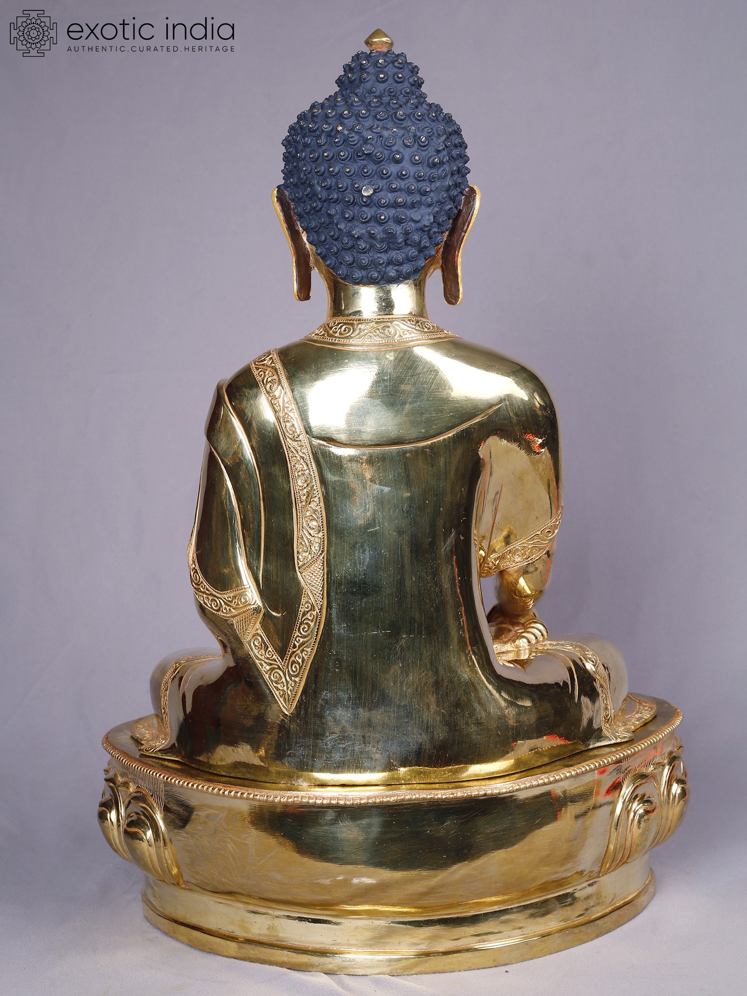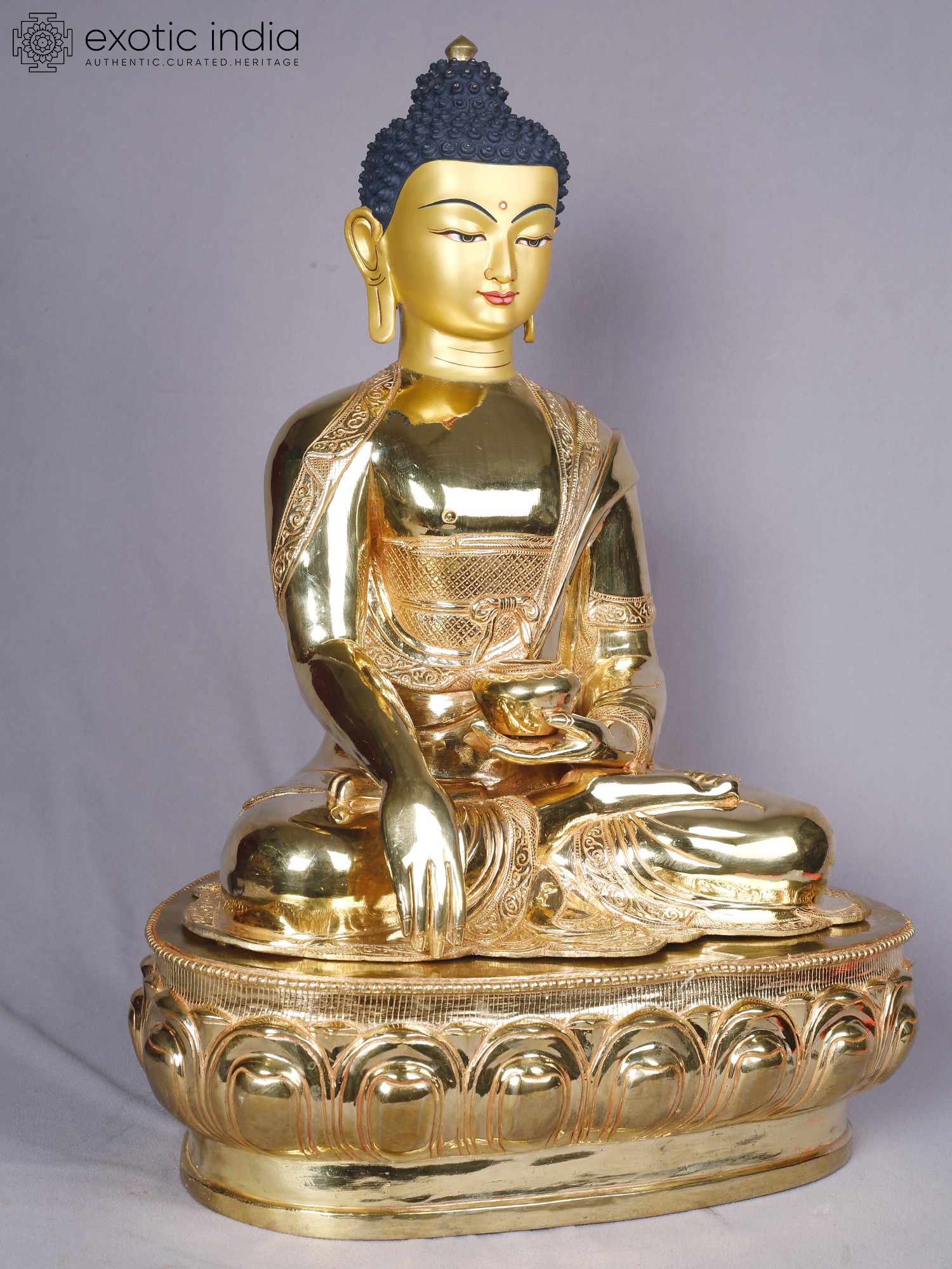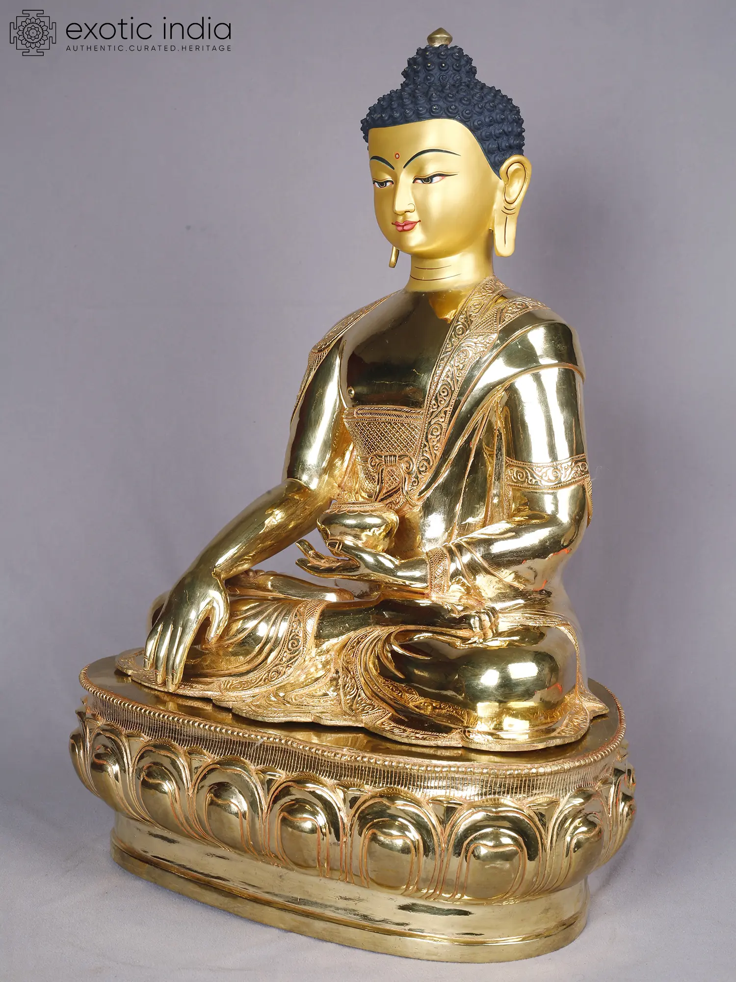 14" Shakyamuni Buddha Idol From Nepal | Copper Statue with Gold Finish