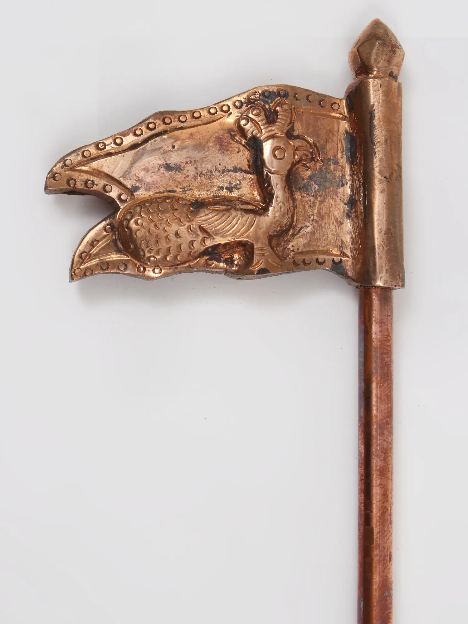 Lord Murugan's copper Seval Kodi Flag signifies the triumph of good over evil. The roots of the flag may be traced back to Lord Murugan's victory against Soorapadman, a demon who, together with his brothers Simhamukha and Tarakasura, captured the three worlds. When Soorapadman faced Lord Murugan in battle, he saw he couldn't win, so he transformed into a mango tree. Lord Murugan sawed the tree in half, knowing the demon's ambitions. The two fragmented halves reunited instantaneously into a robust rooster and a peacock. Lord Muruga afterward selected the peacock as his chariot and the rooster as his flag.