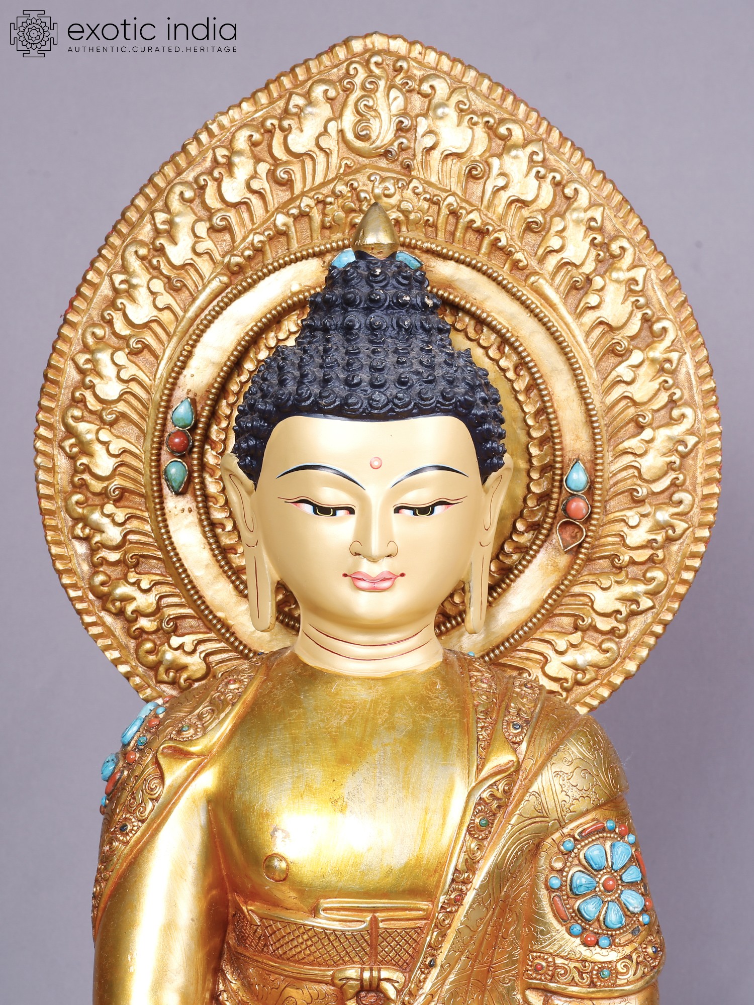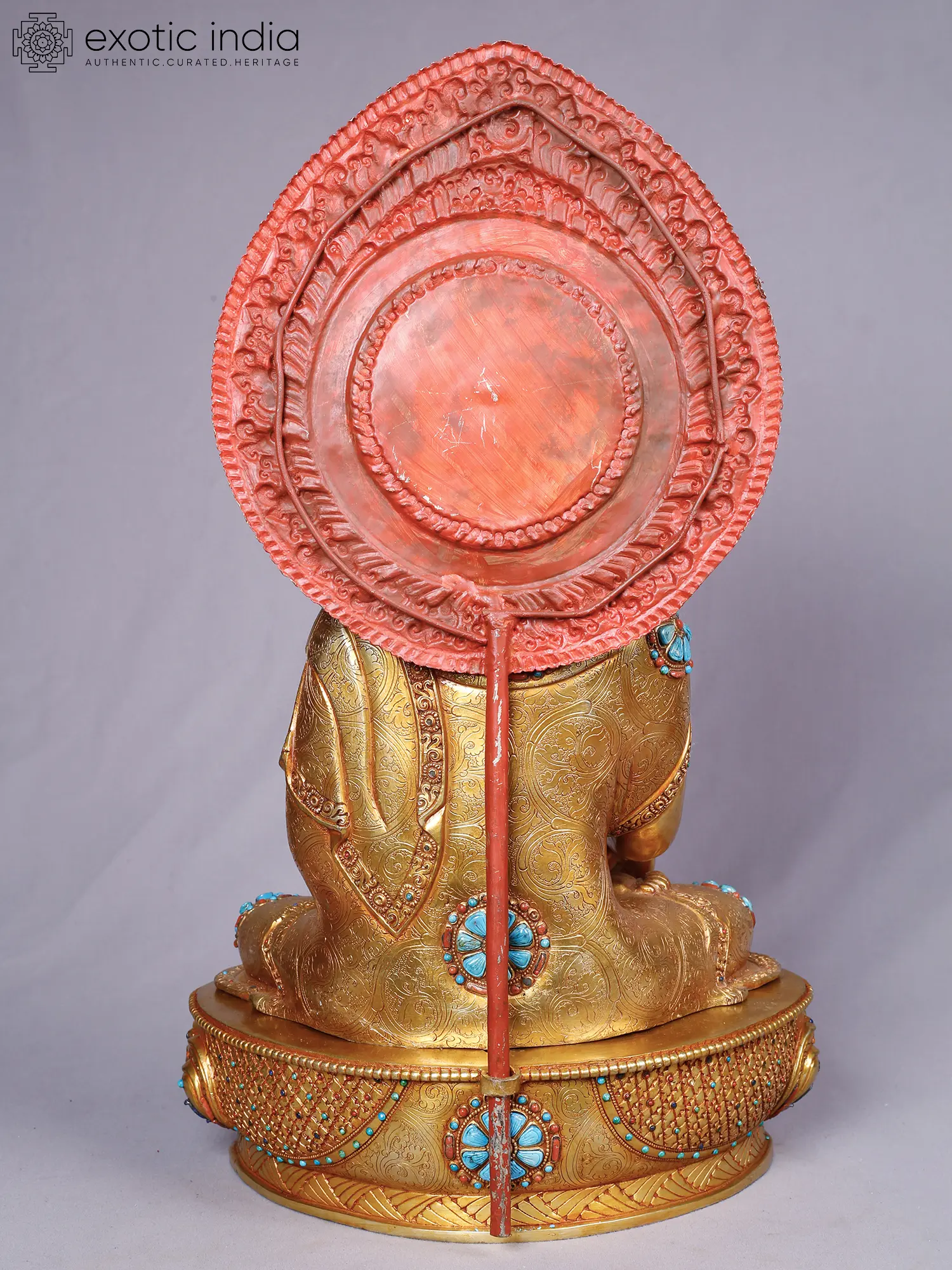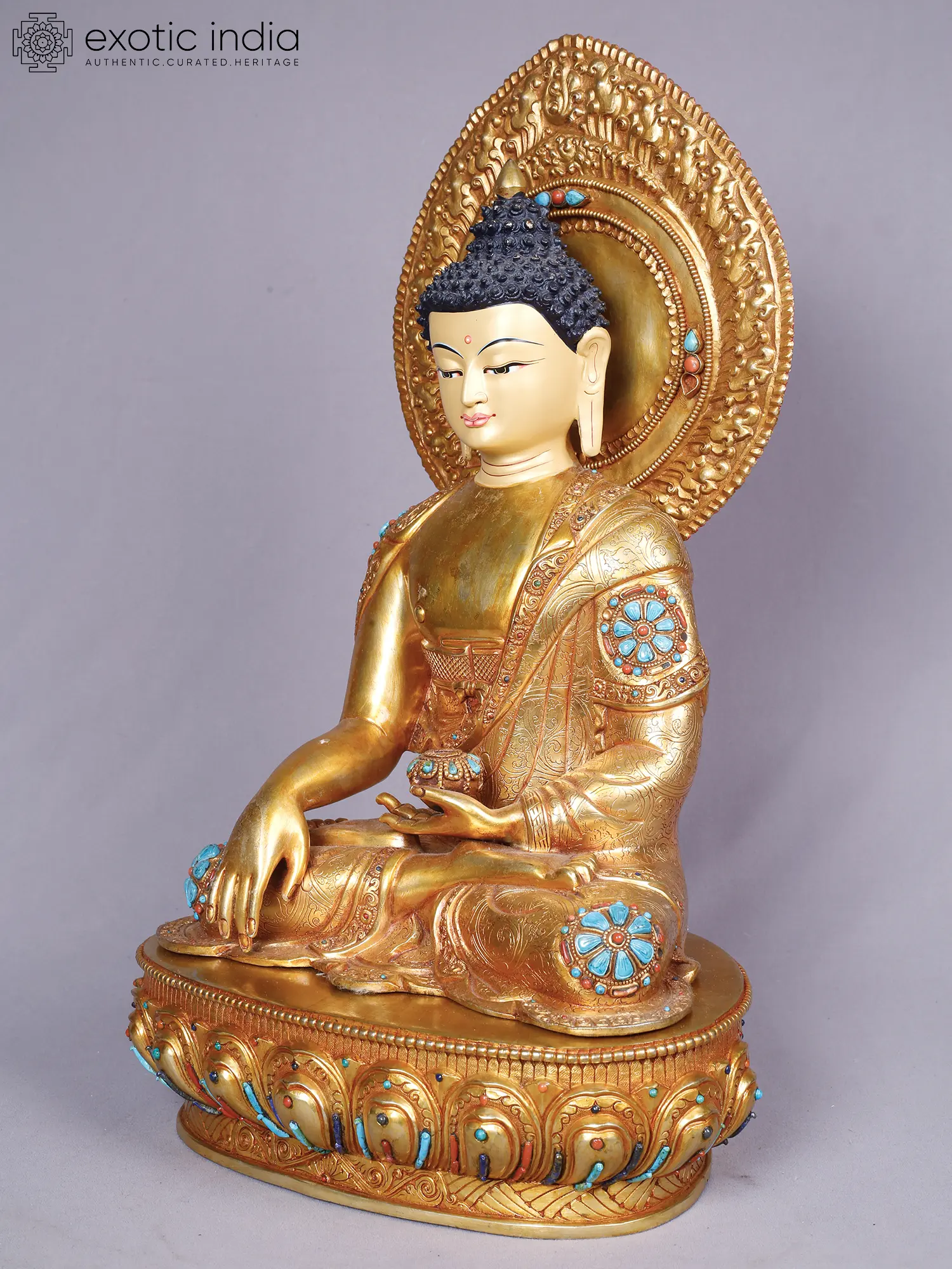 14" Shakyamuni Buddha Idol From Nepal | Copper Statue with Gold Finish
