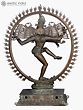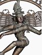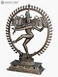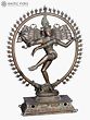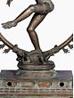 The ring or circle of fire that frames the dancing Shiva’s aura represents time and space- its ends sprout from the mouths of Makara (celestial creatures who symbolize divinity and royalty) and its external part is lined with flaming motifs. A miniature Kirtimukha (face of glory) hangs from the center of the bronze ring, ending just above Shiva’s elaborate Jatamukuta (crown of matted hair).