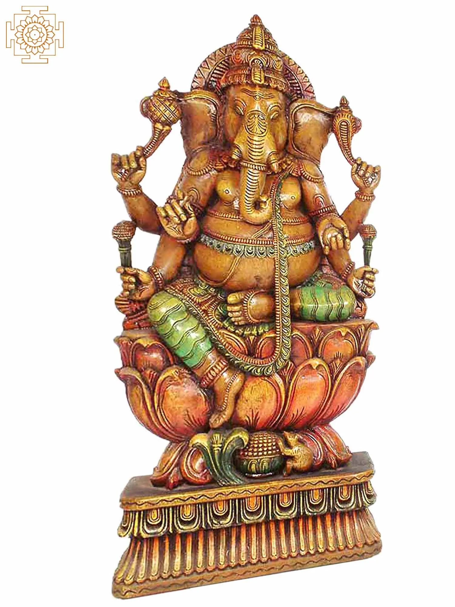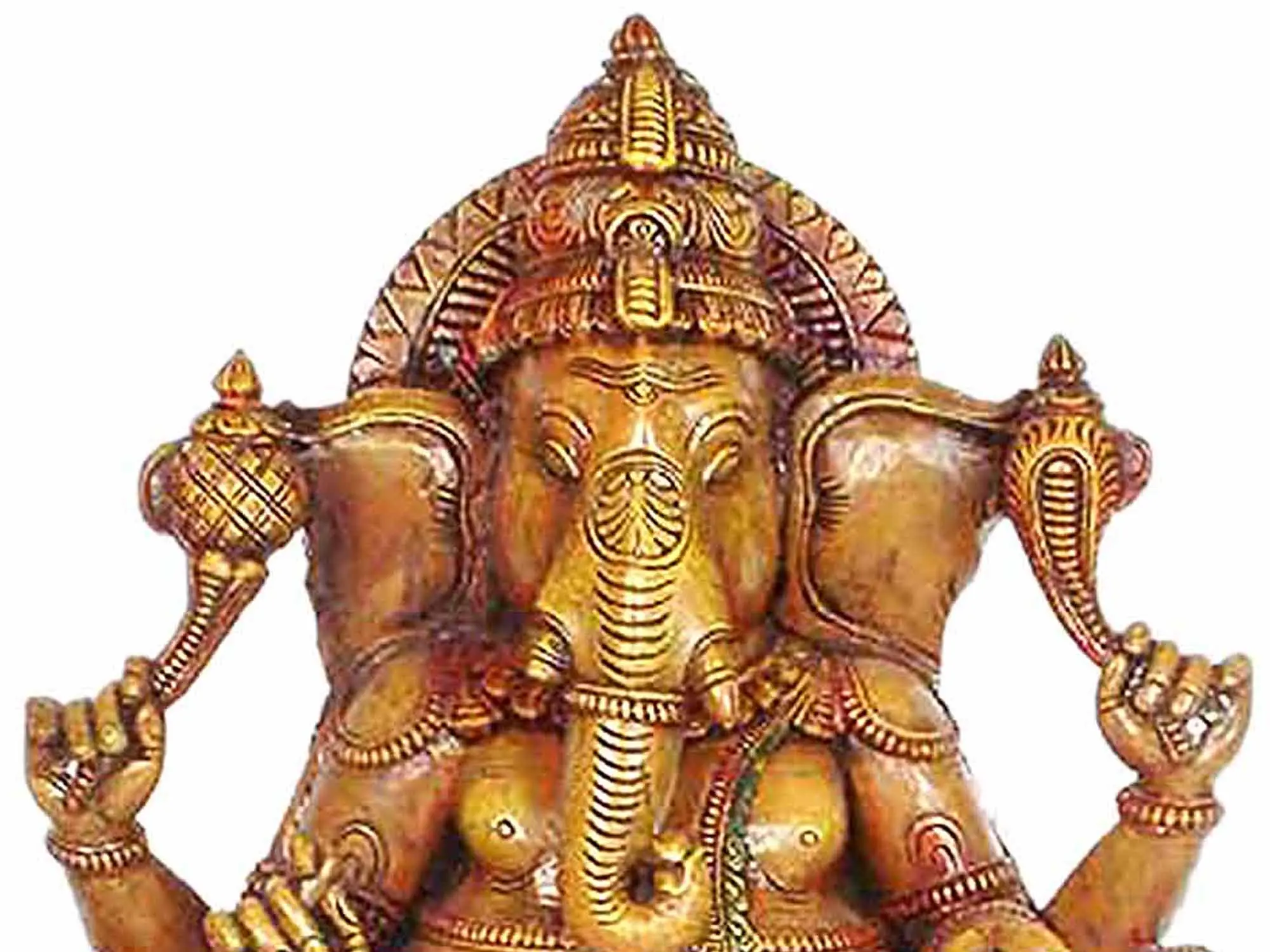 The number of arms a deity possesses often signifies their power and abilities. This magnificent representation of Ganesha features six arms, each holding symbolic objects. While the specific objects can vary across different depictions, generally the multiple arms represent Ganesha's ability to simultaneously perform many actions and oversee multiple domains. He can simultaneously bestow blessings, remove obstacles, grant protection, and guide devotees on their spiritual path. The six arms suggest a heightened ability to fulfill the needs and desires of his devotees.