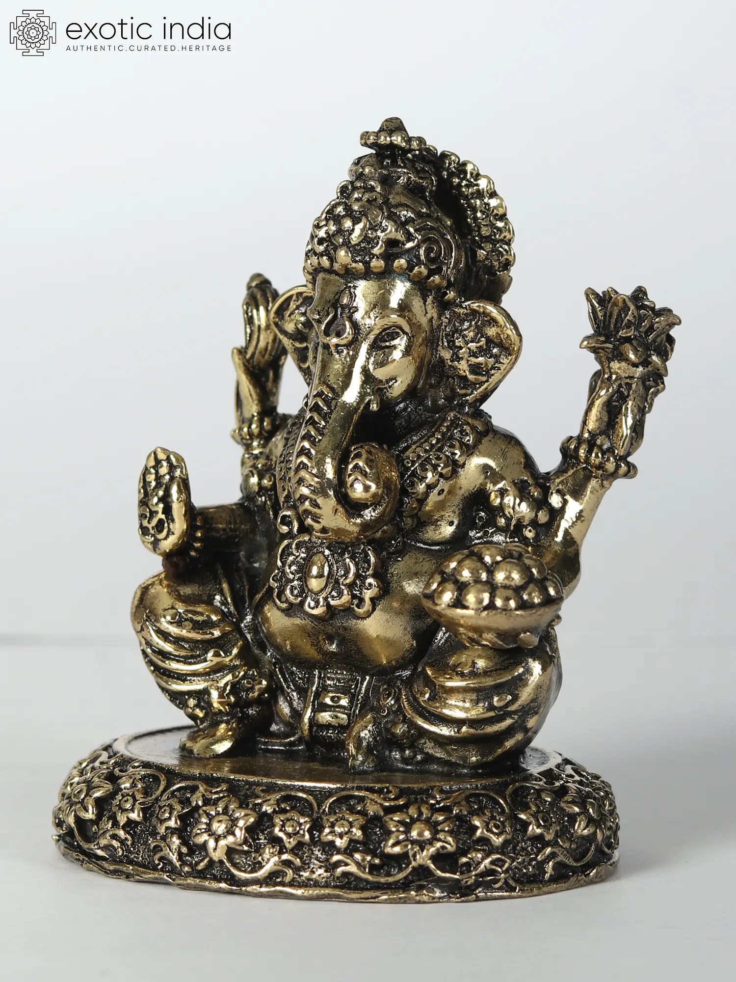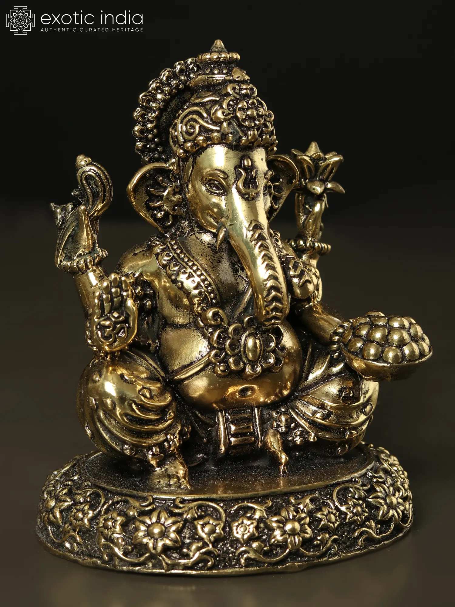 Seated on an opulent pedestal, Lord Ganesha, also known as Avaneesh, embodies divine grace. His benevolent gaze, hand poised in the reassuring “Abhaya Mudra”, exudes a tranquil aura. In his hands, the “Pasha (Noose)” signifies control over desires, while the Lotus symbolises purity and prosperity. The divine dichotomy unfolds as his left hand cradles a bowl of Modakas, sweet offerings, a testament to abundant blessings. Worshipping this form grants solace and guidance, dispelling obstacles with the noose, and nurturing spiritual growth. Lord Ganesha’s cosmic dance intertwines discipline and sweetness, teaching that embracing life’s challenges with grace leads to the ultimate reward—a harmonious existence.