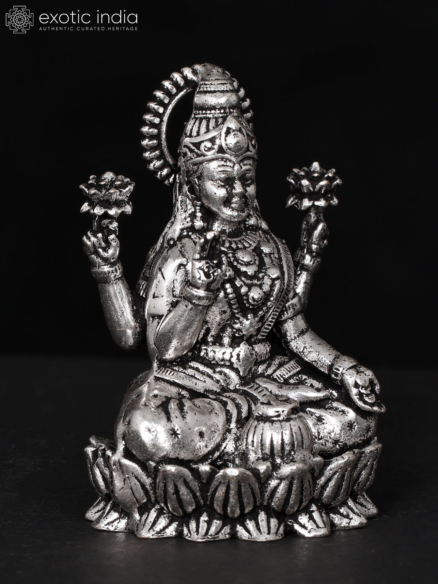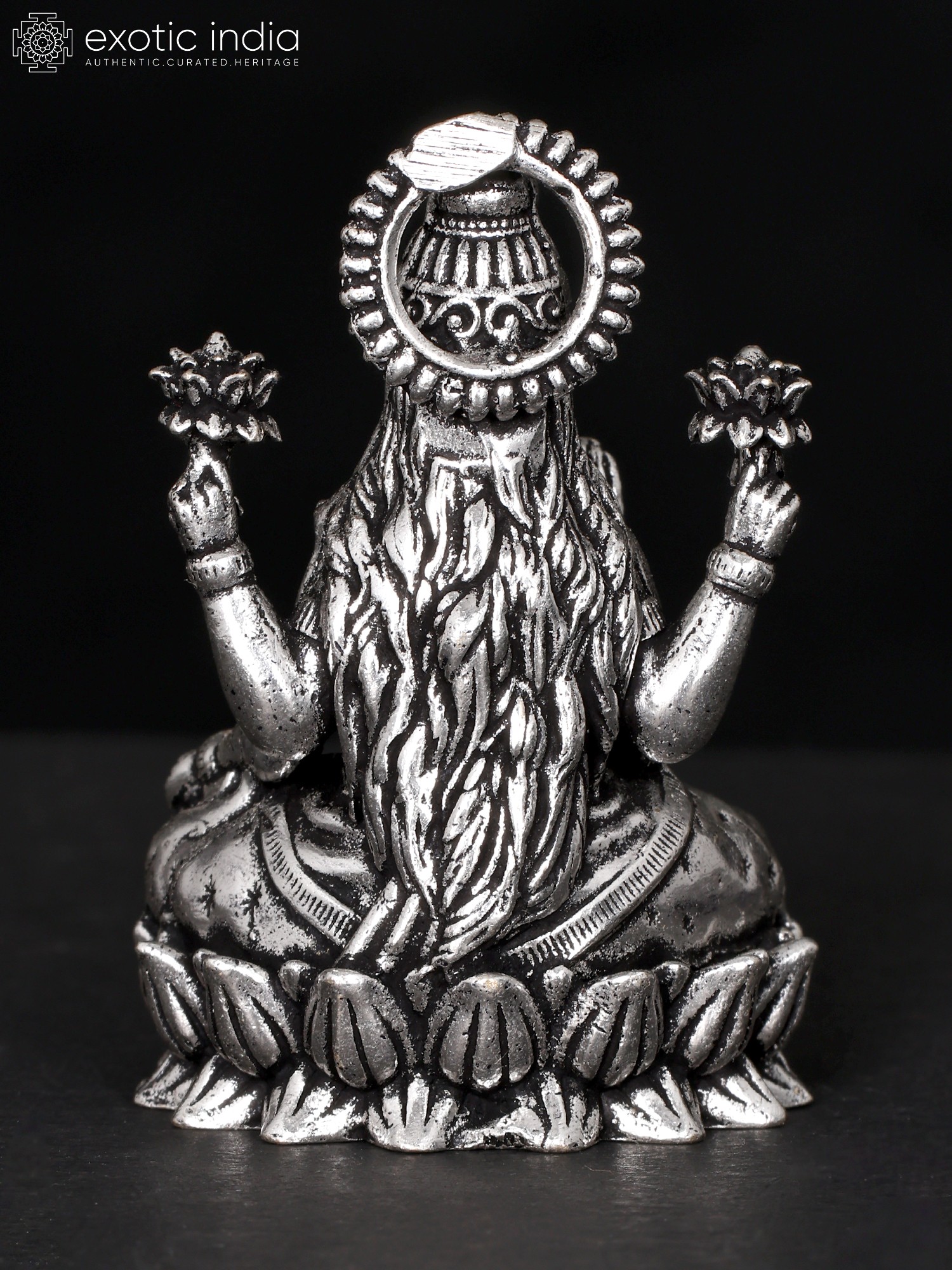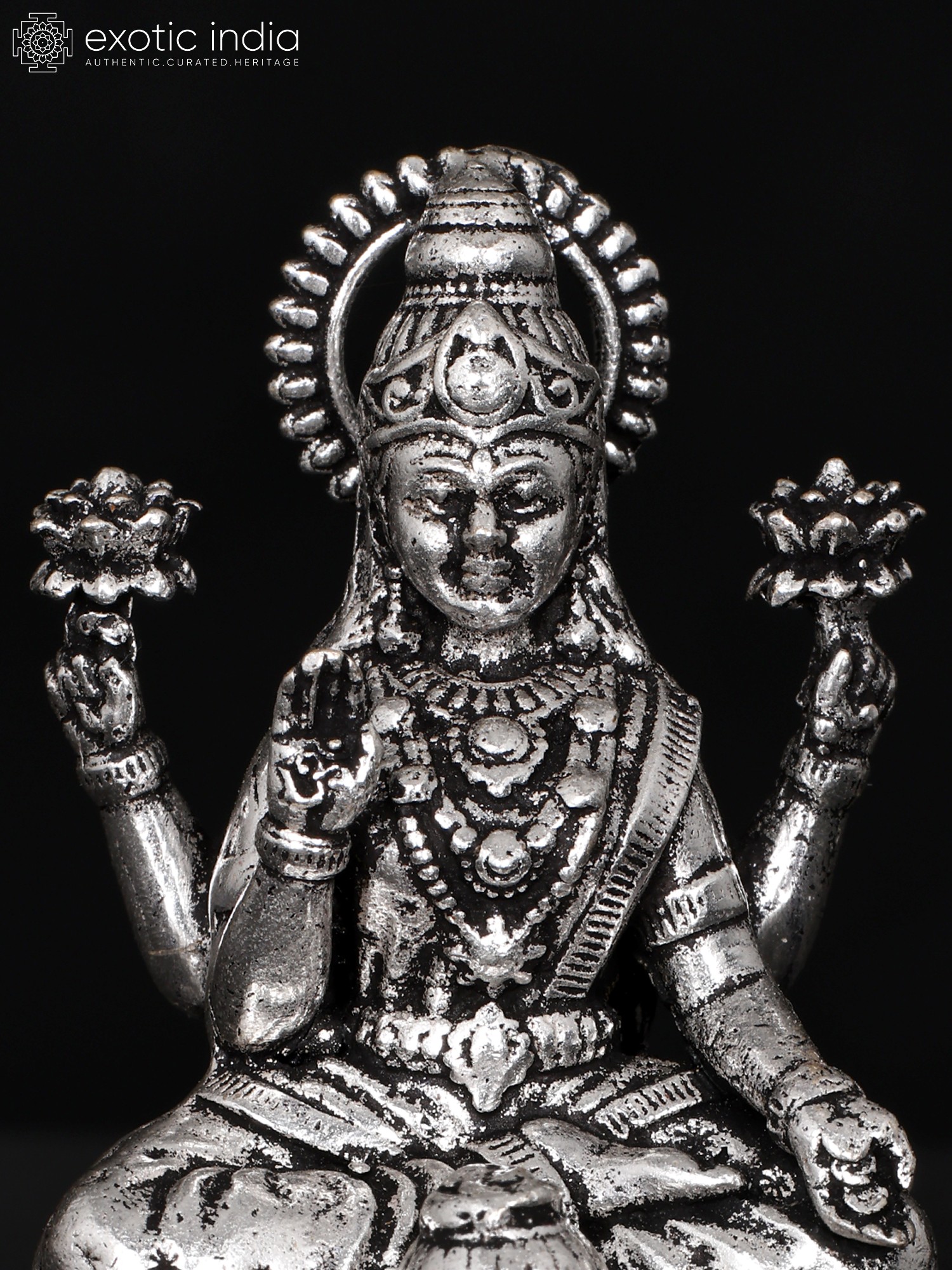 Goddess Lakshmi, a divine vision in Padmasana, radiates grace and opulence. Her upper hands cradle the lotus, symbolising purity, and transcendence, while her right hand is poised in Abhaya Mudra, signifying fearlessness and courage. Her left hand is in Varada Mudra imparts blessings. Draped in regal attire, she embodies beauty and prosperity. At her feet lies a pot of wealth, promising abundance to those who seek her blessings. This brass statue, a masterpiece of artistry, signifies the embodiment of wealth, both material and spiritual. It invites us to embrace her presence and invokes the blessings of prosperity and grace into our lives. Goddess Lakshmi, the eternal symbol of abundance, illuminates our souls.