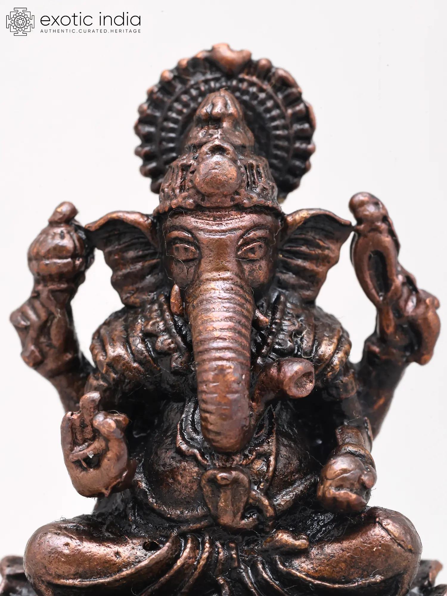 3" Small Ashtabhuja Lord Ganesha with Five Heads Seated on Kirtimukha Throne | Copper Statue | Made in India