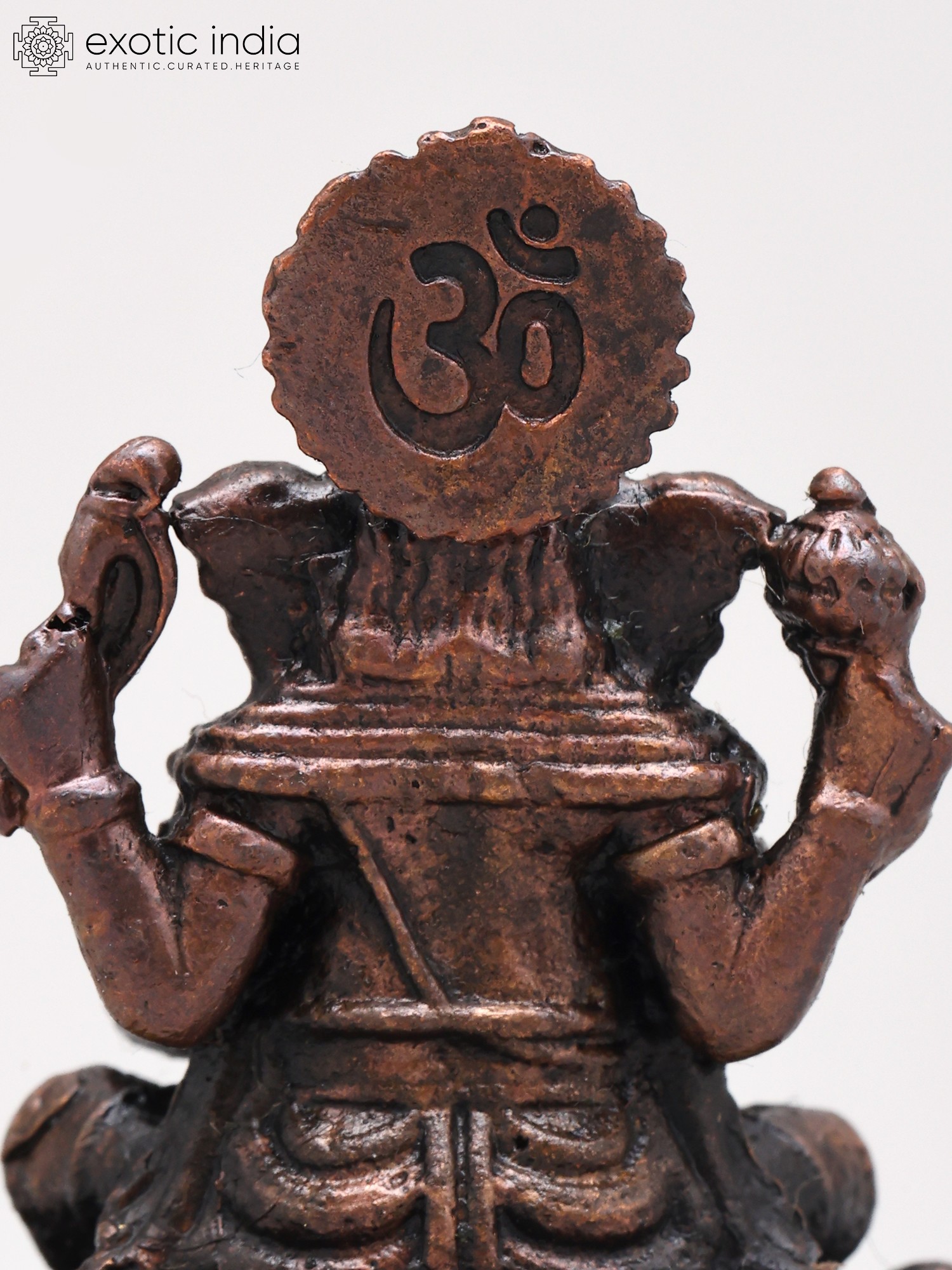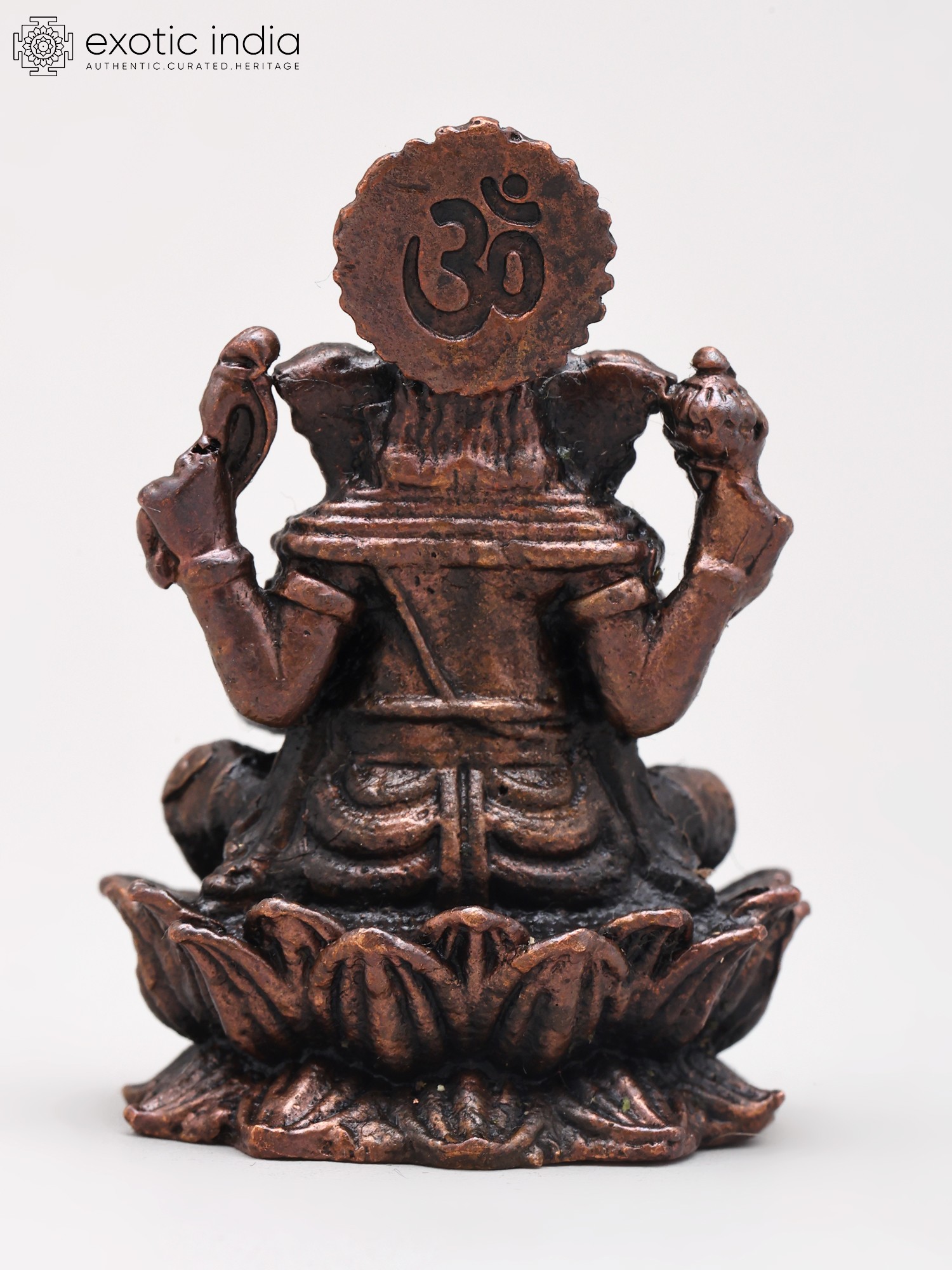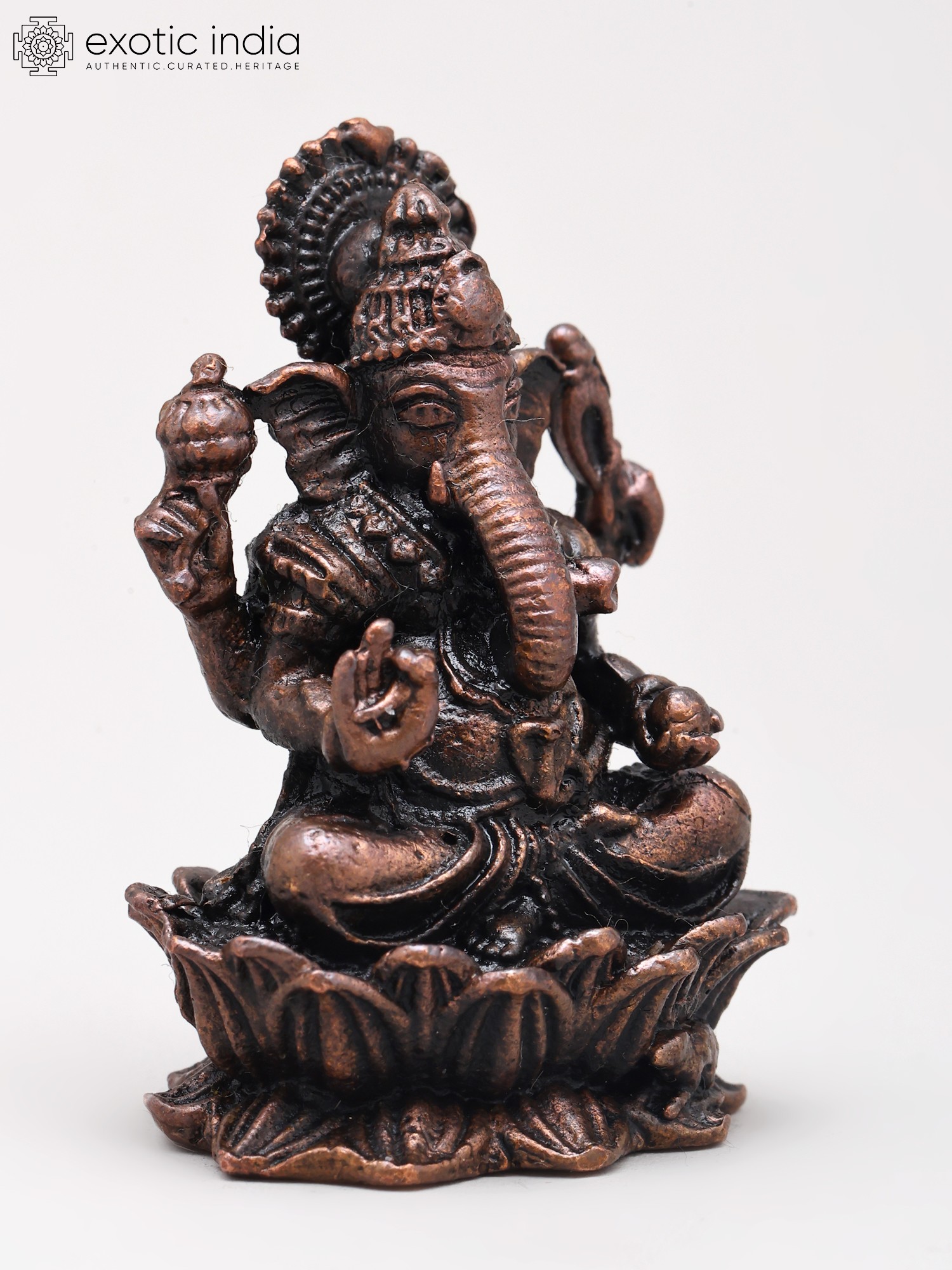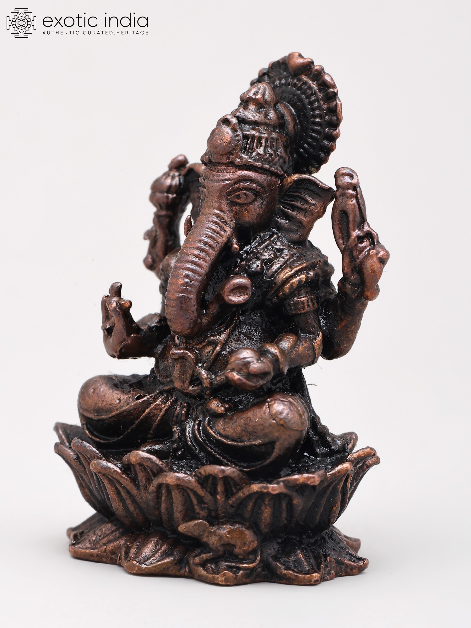 2" Small Lord Ganapati Seated on Lotus with Mushak Vahana | Copper Statue | Made in India