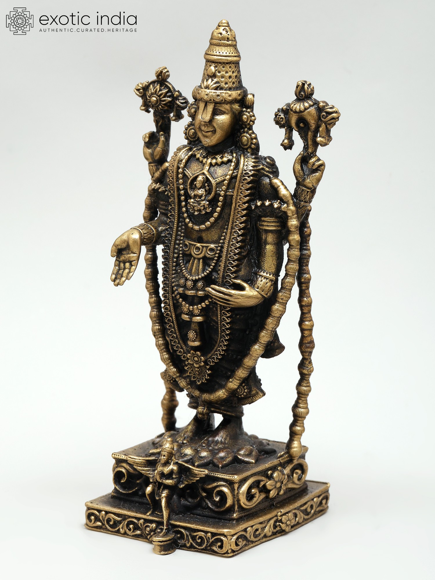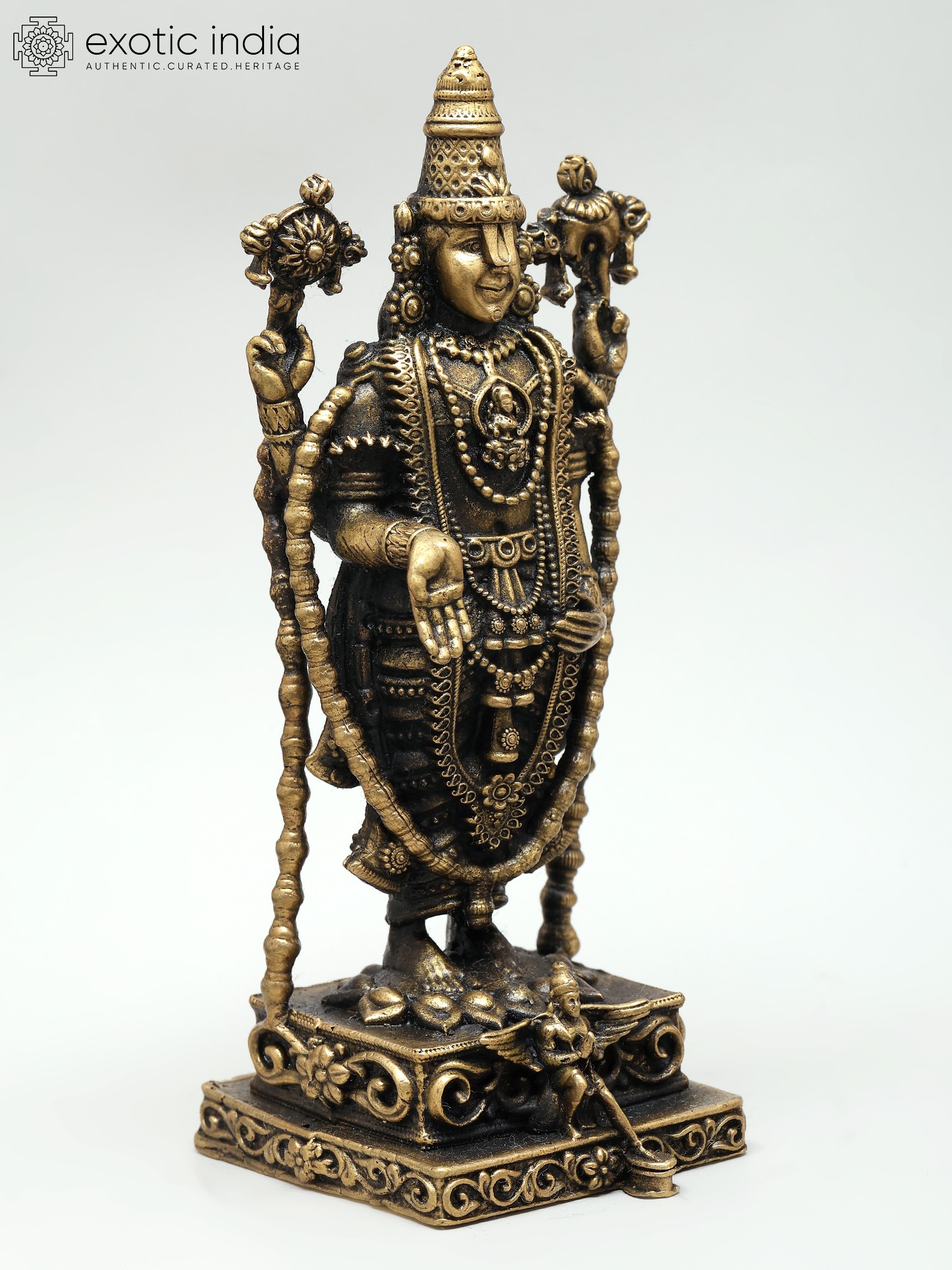 Superfine Lord Tirupati Balaji Idol with Garuda at Bottom | Venkateshvara Brass Statue (Multiple Sizes)